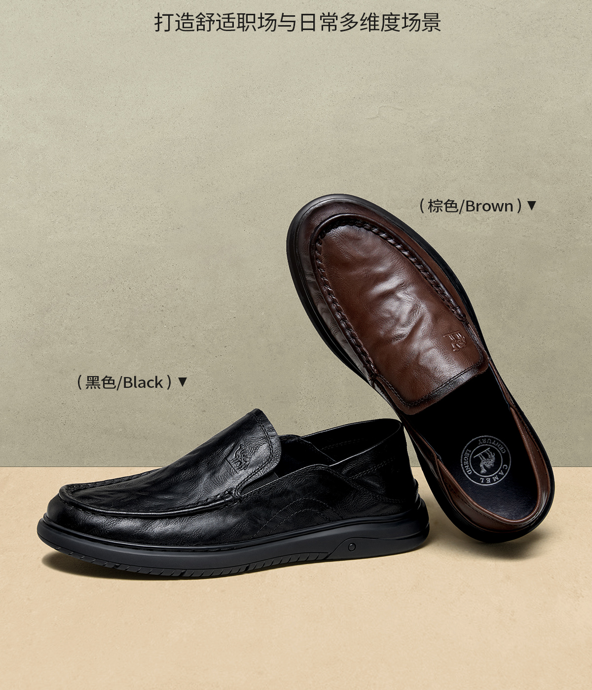 Camel Men's Shoes 2025 Autumn New Business Soft-Soled Comfortable Commuting Genuine Leather Wedding Banquet Men's Leather Shoes for Middle-Aged Dads