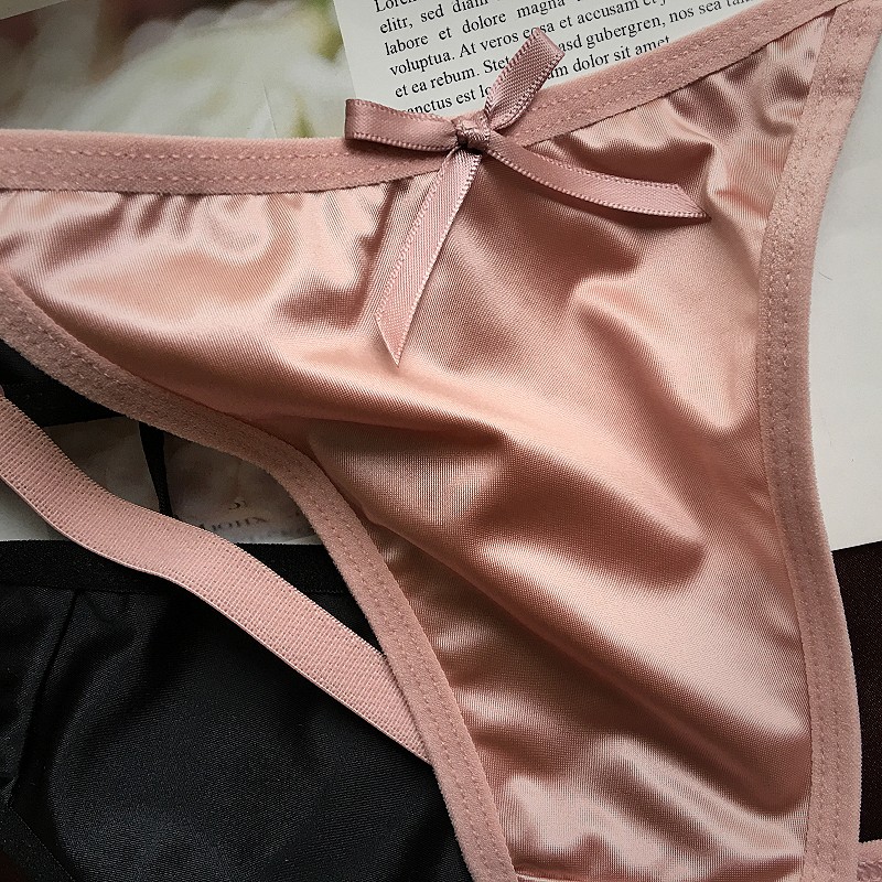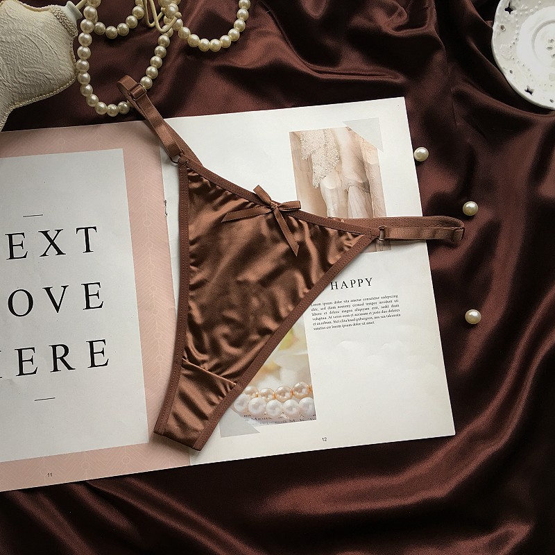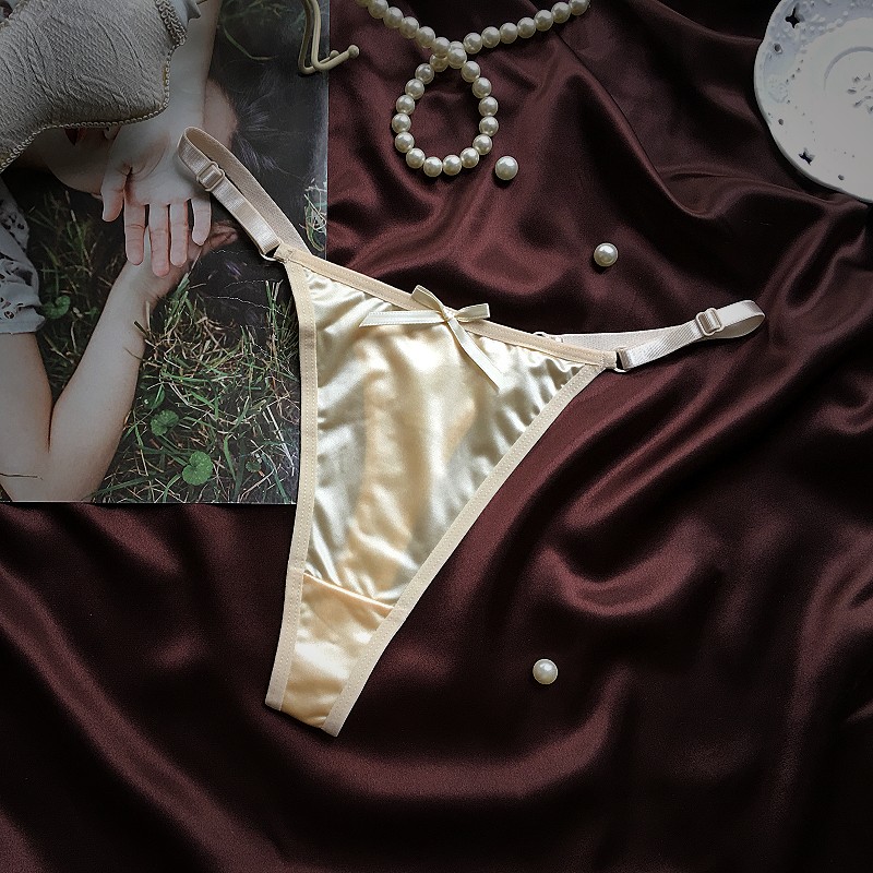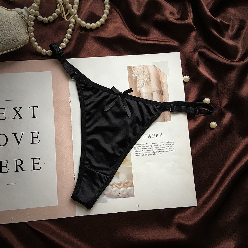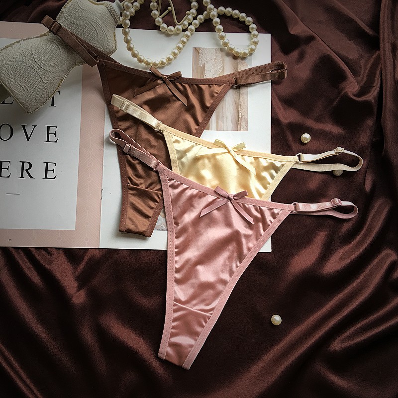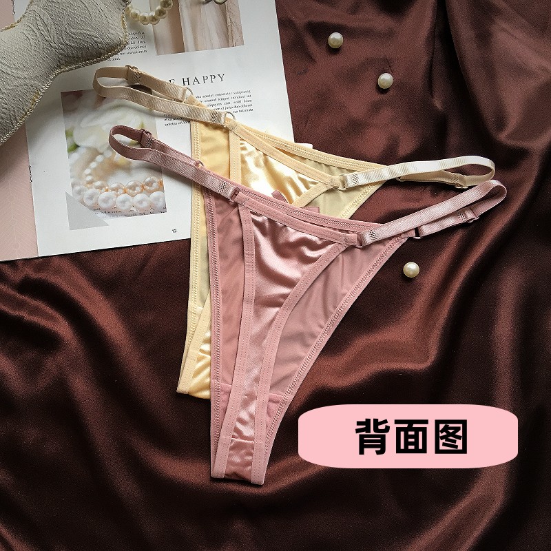 European and American Style Sexy Silky Satin Adjustable Thong T-Back Low-Rise Panties Women's Bikini Solid Color