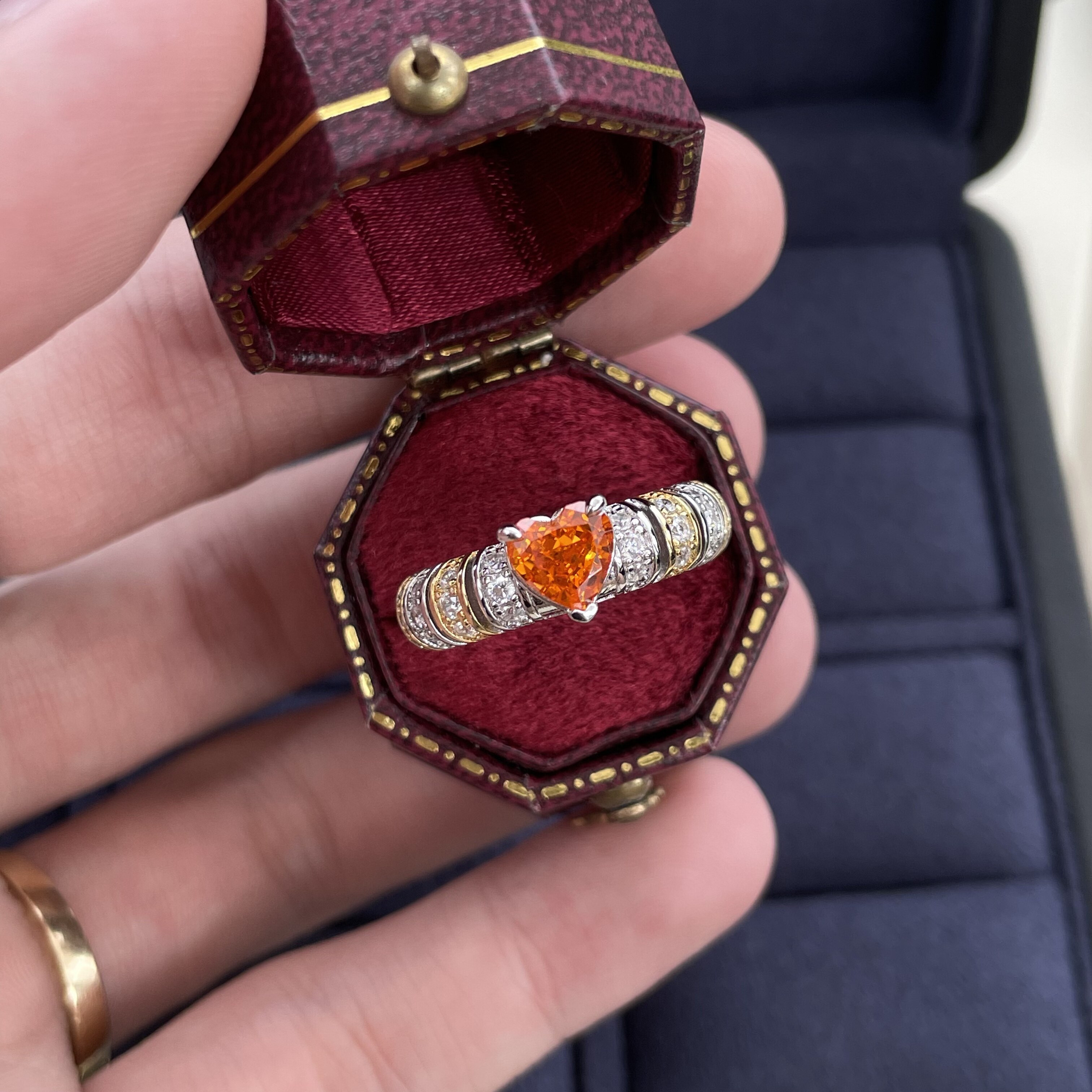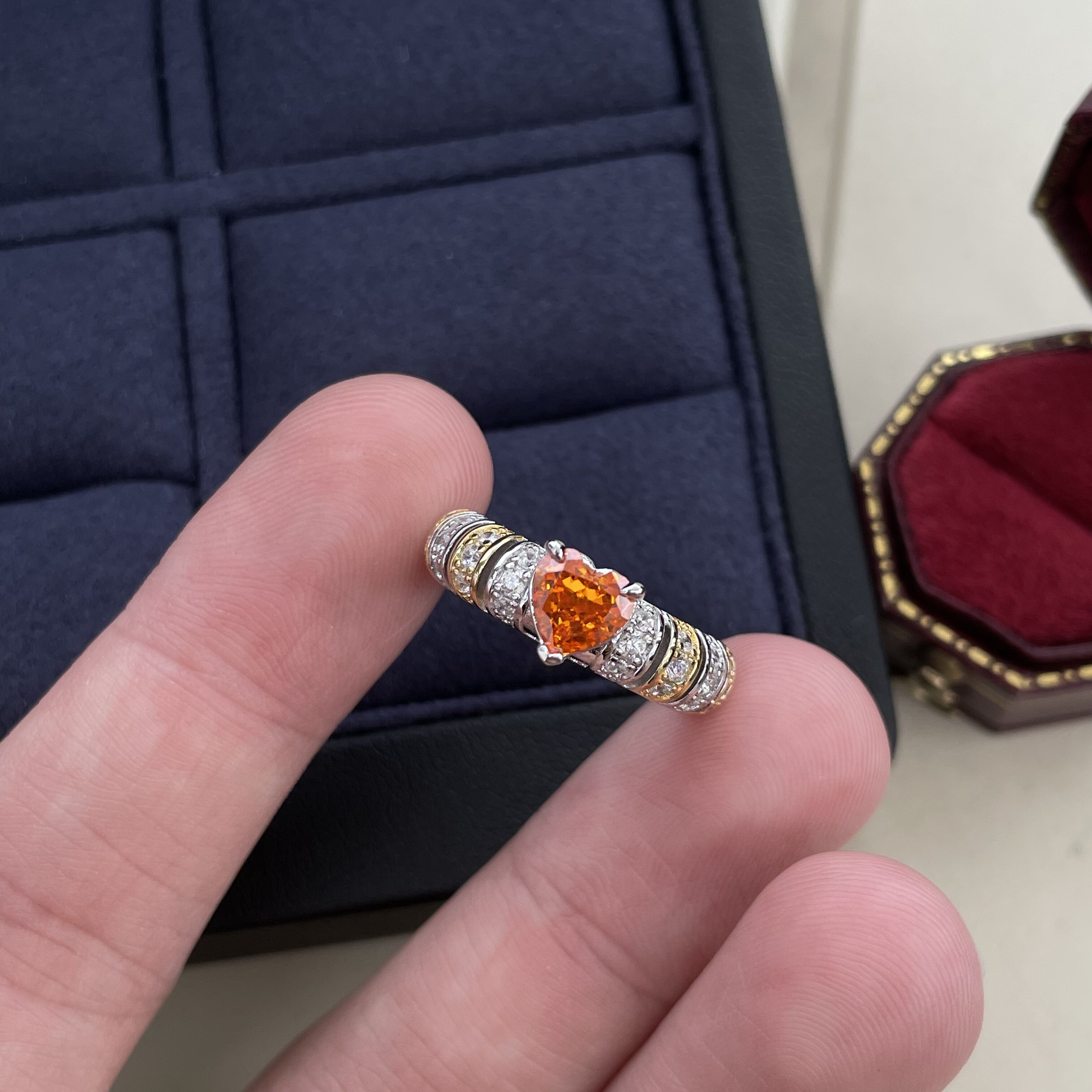 1.8Ct Heart-Shaped Feldspar S925 Sterling Silver Ring 6*7 Ice Flower Cut Artificial Gemstone High-End Design Jewelry