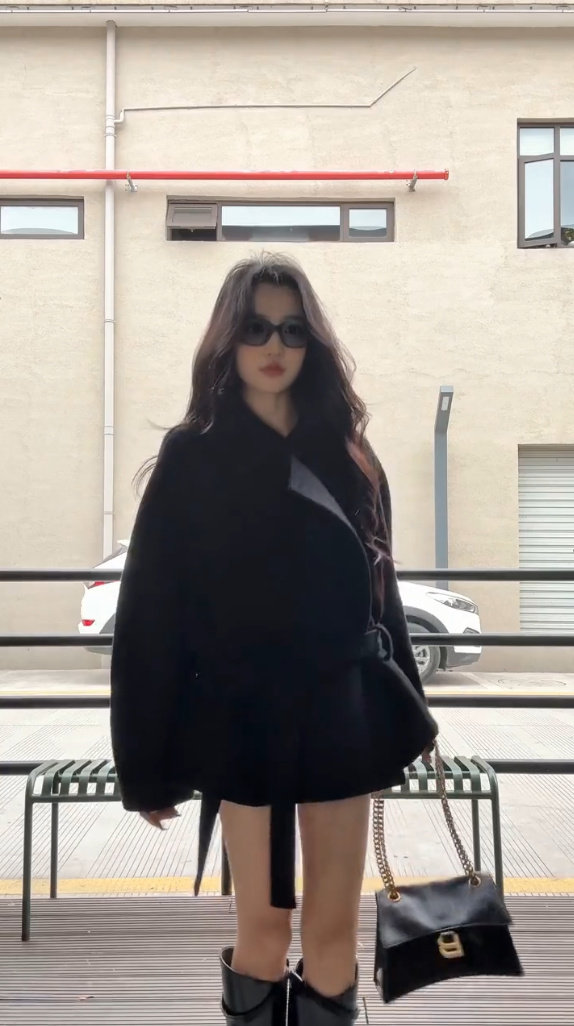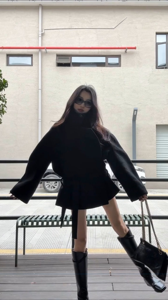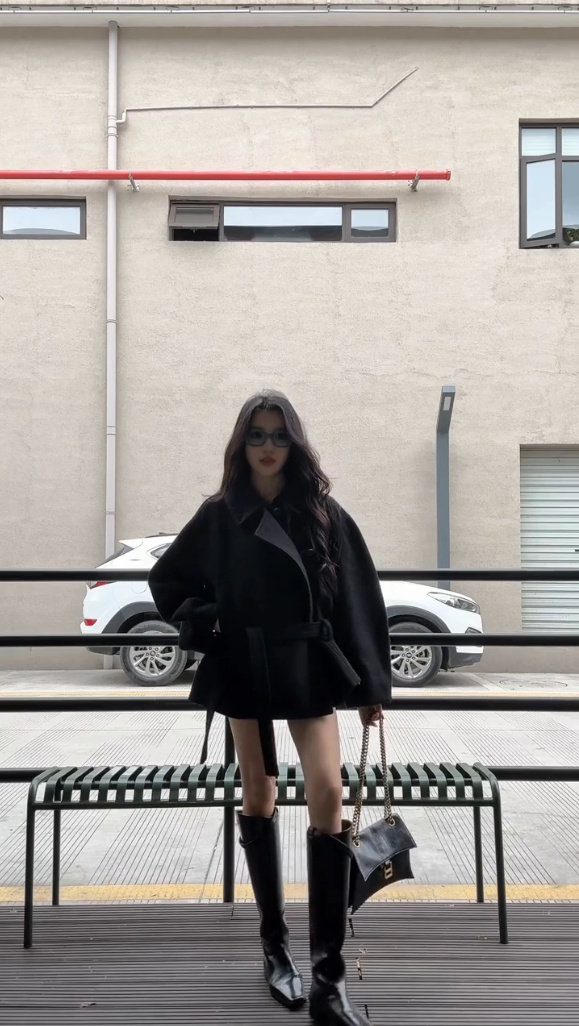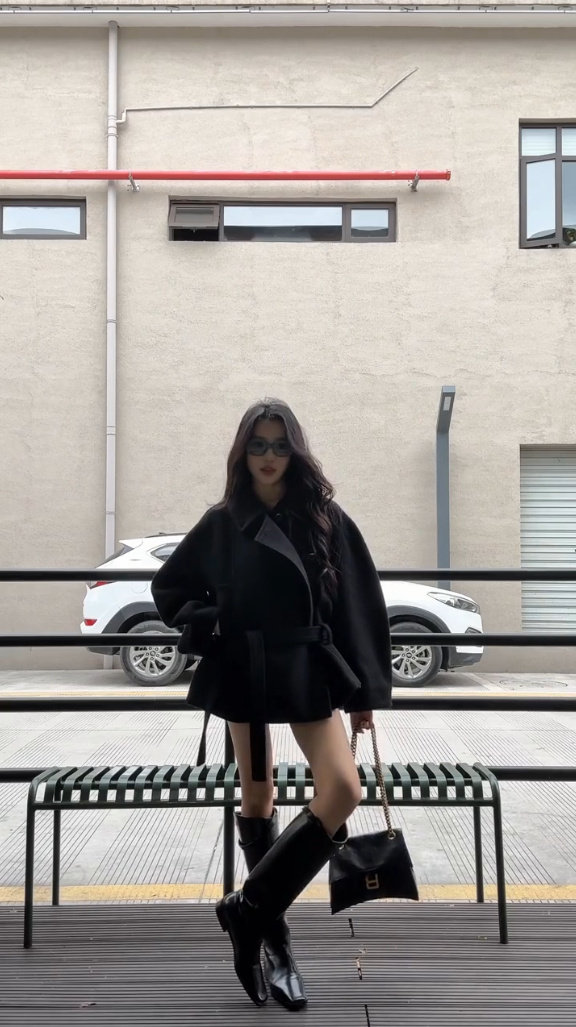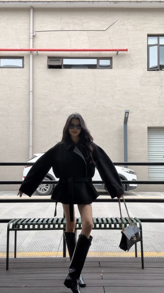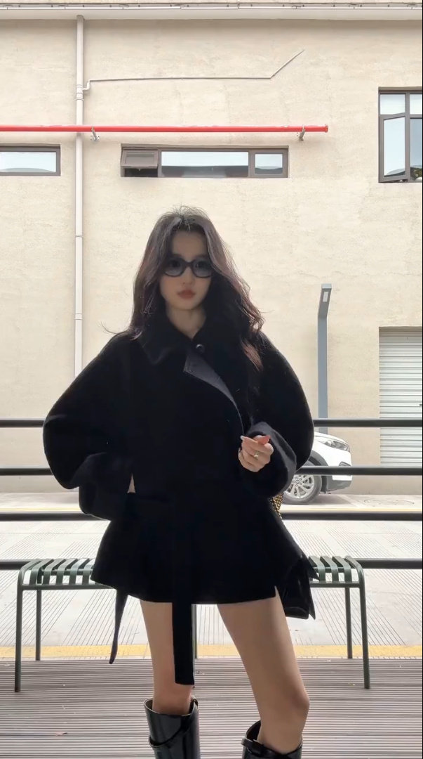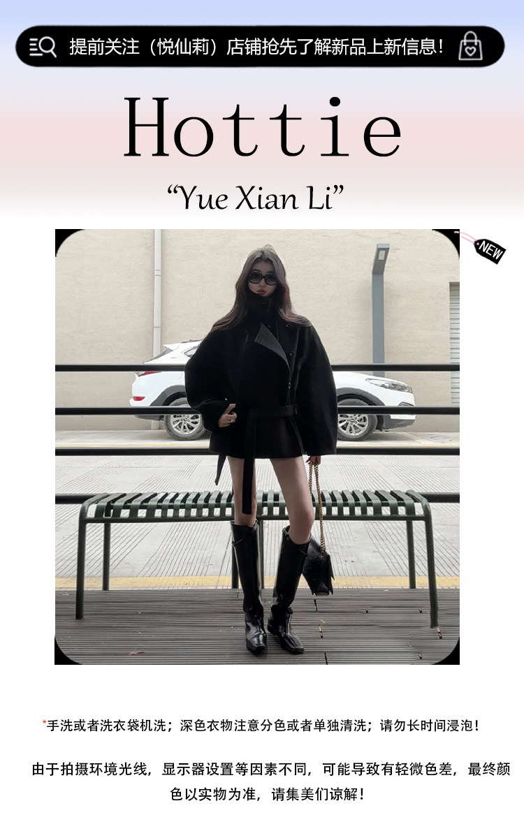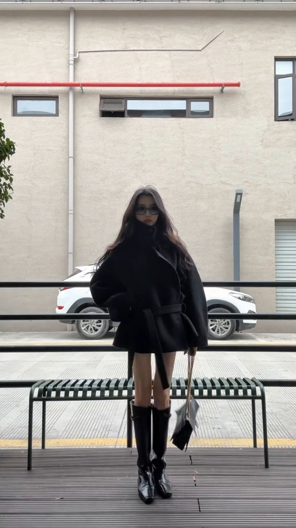 Short Stand-Collar Black Woolen Coat for Women, 26 Spring, American Retro Style, High-End Feel, Petite Woolen Coat, Short Coat