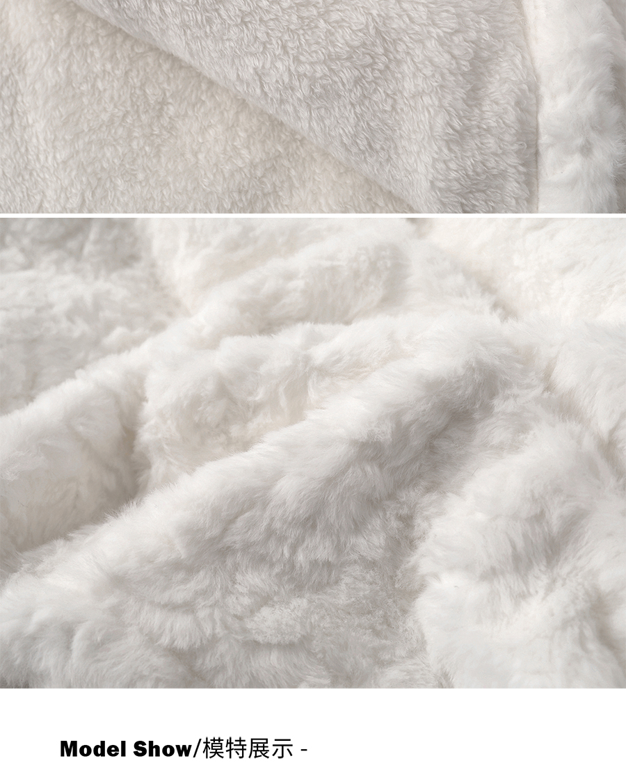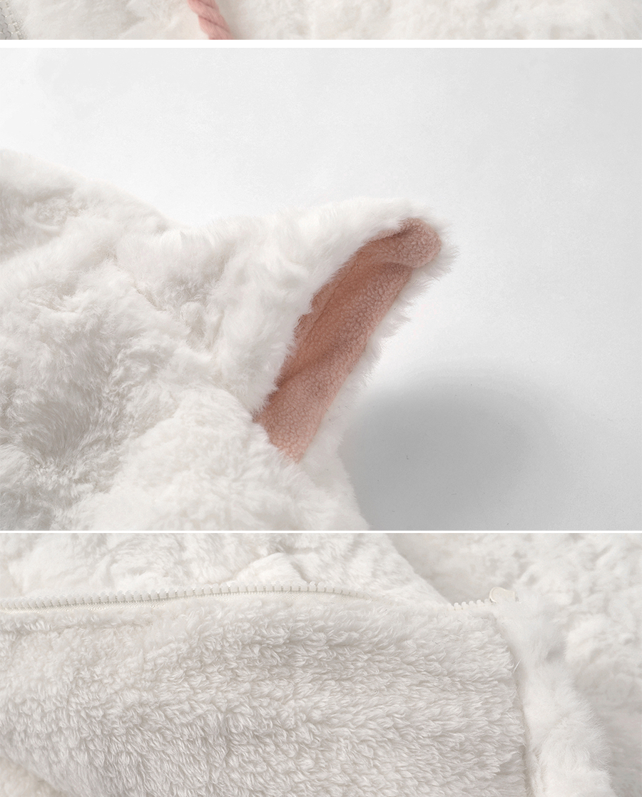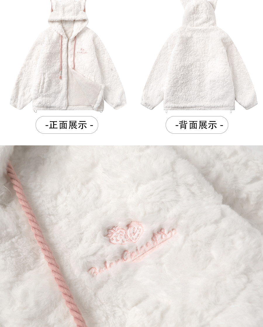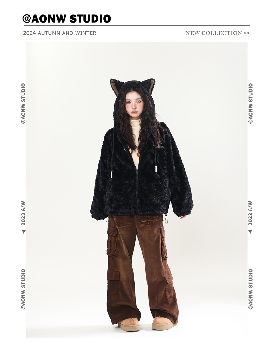 Aonw Sweet Three-Dimensional Cute Ear Hooded Cotton Coat for Women, Winter Fleece-Lined Loose Warm Lamb Wool Jacket