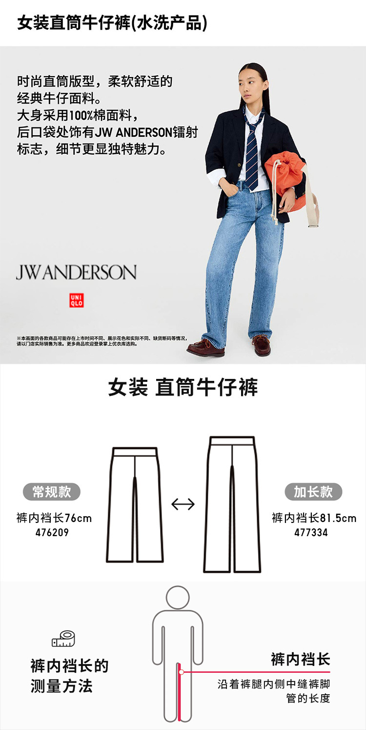 Uniqlo Collaboration Women's Straight-Leg Jeans/Washed Casual Pants 25 Spring/Summer New Style 476209