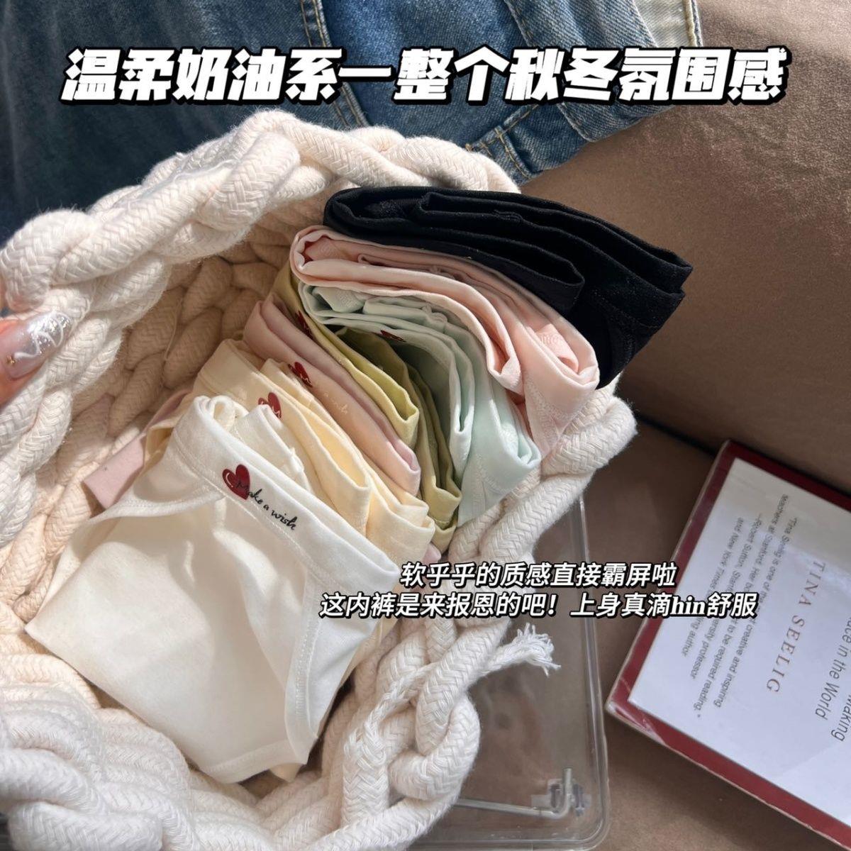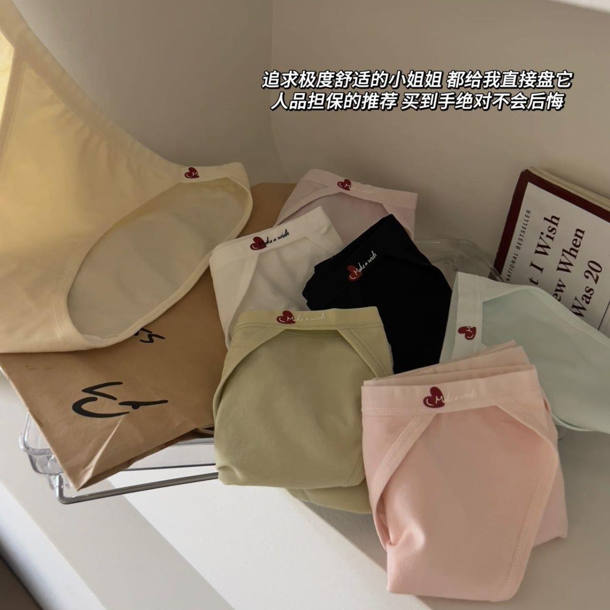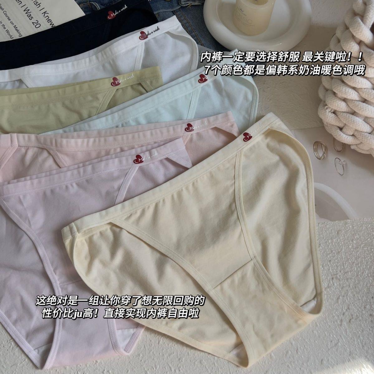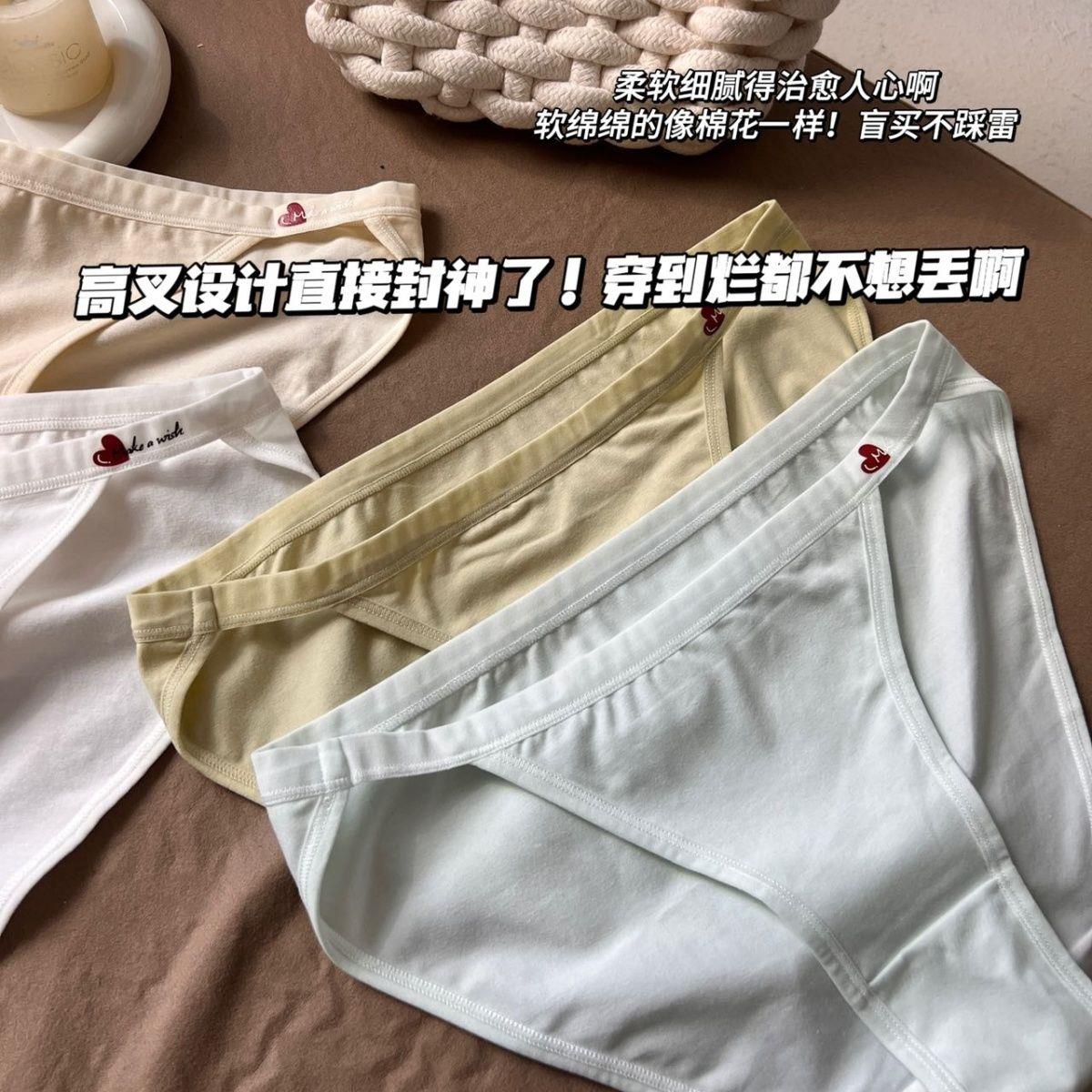 Simple, Sweet, Solid Color, Heart-Shaped, Pure and Sexy High-Slit Panties for Women, Low-Waisted, Pure Cotton, Soft, Comfortable, Skin-Friendly and Breathable