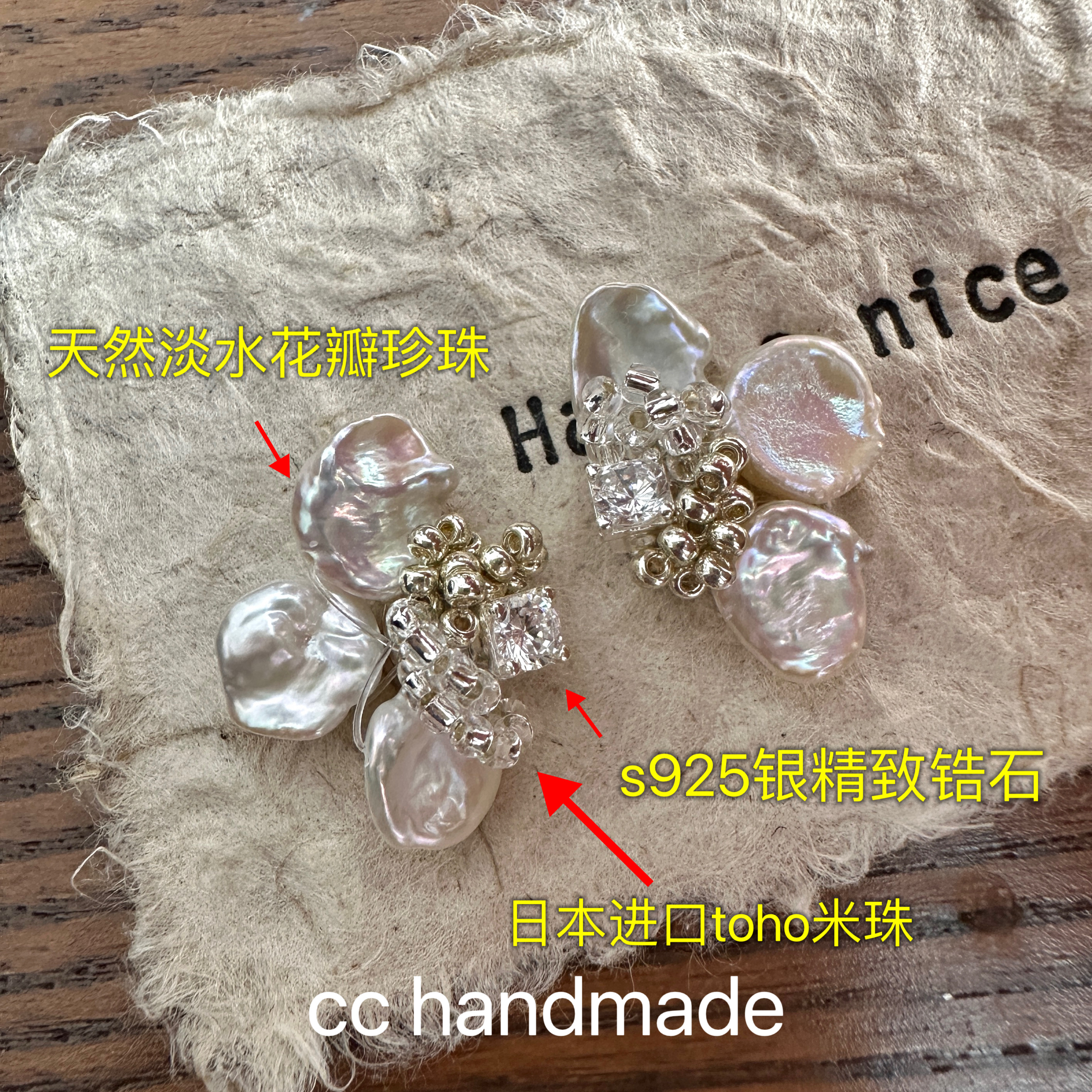 Cc Handmade Original Design Natural Pearl Petal S925 Silver Zircon Iris Earrings Ear Clips Earrings for Personal Use