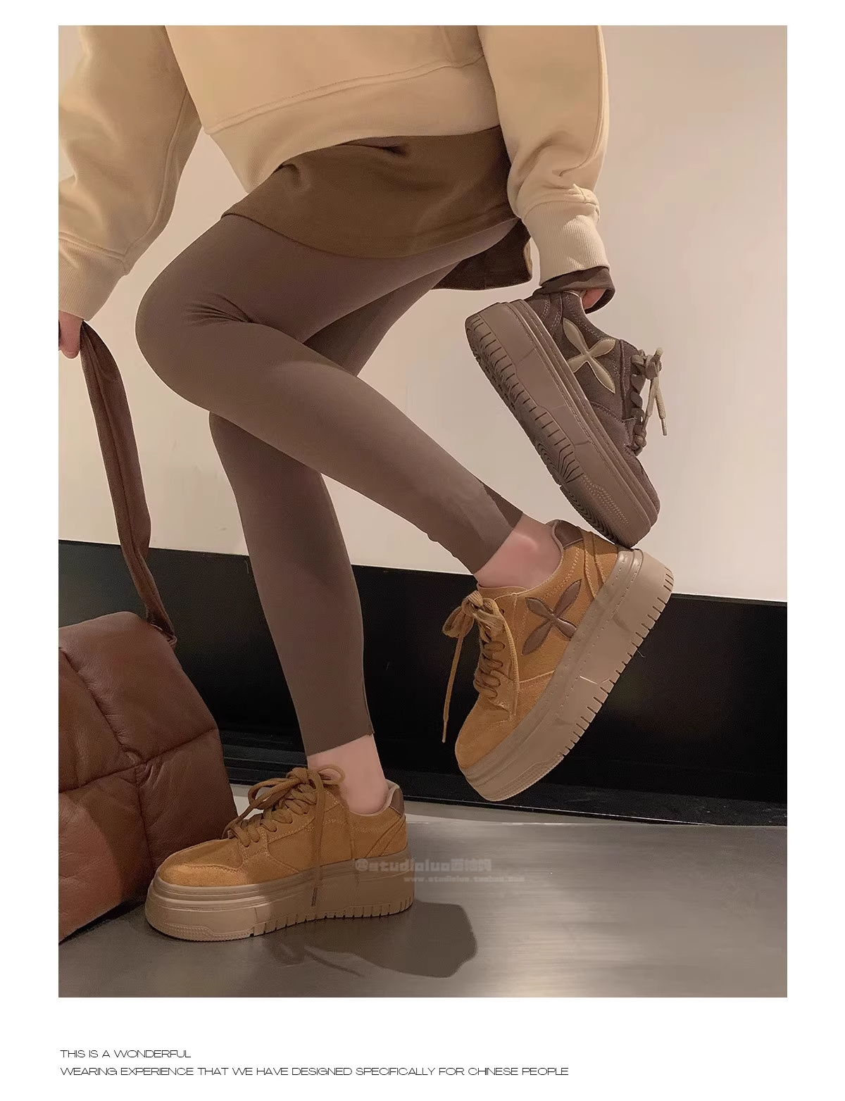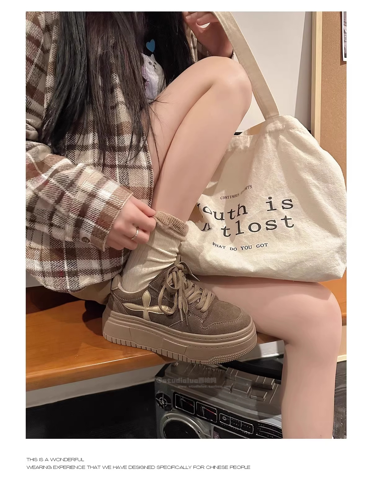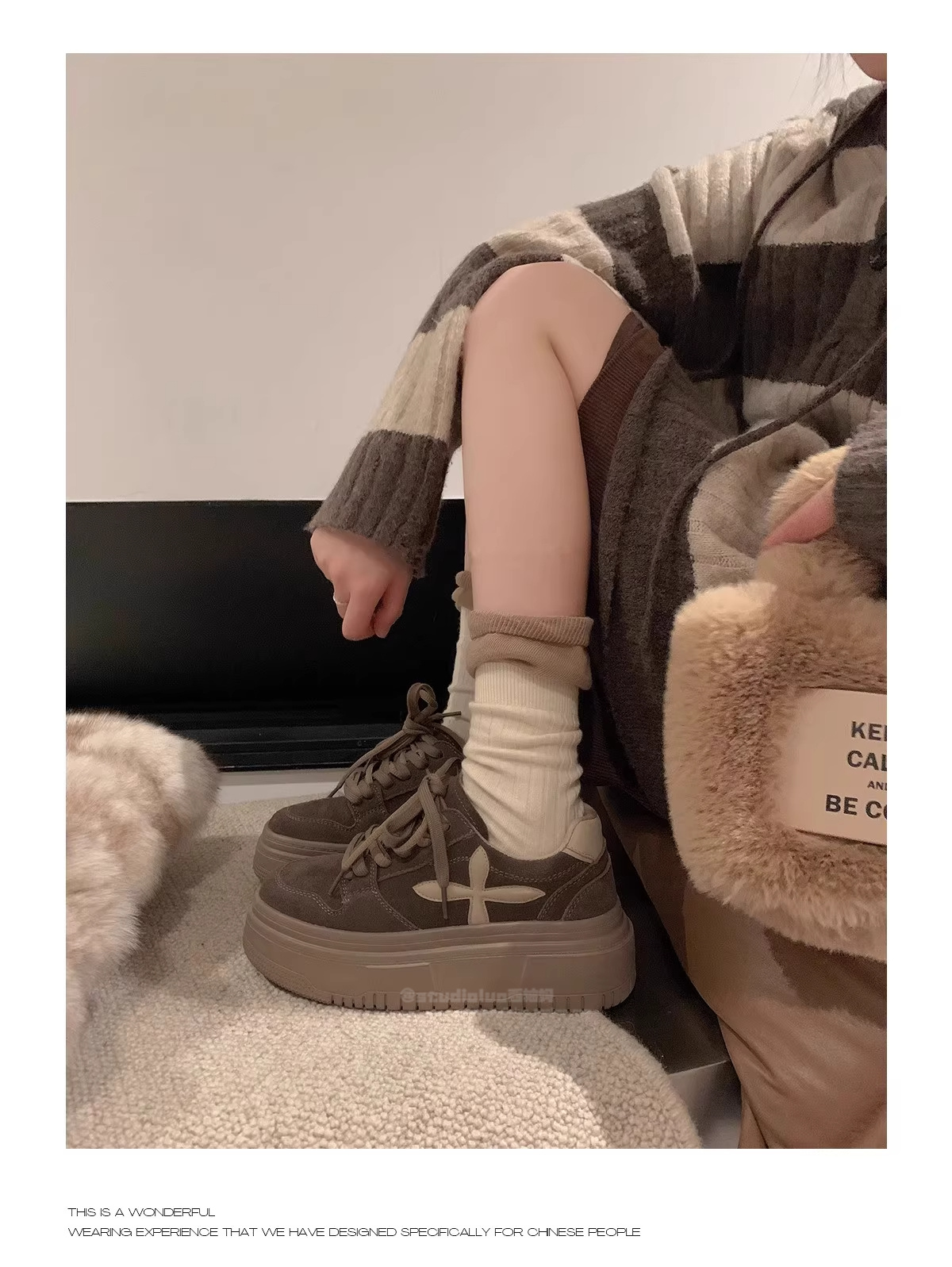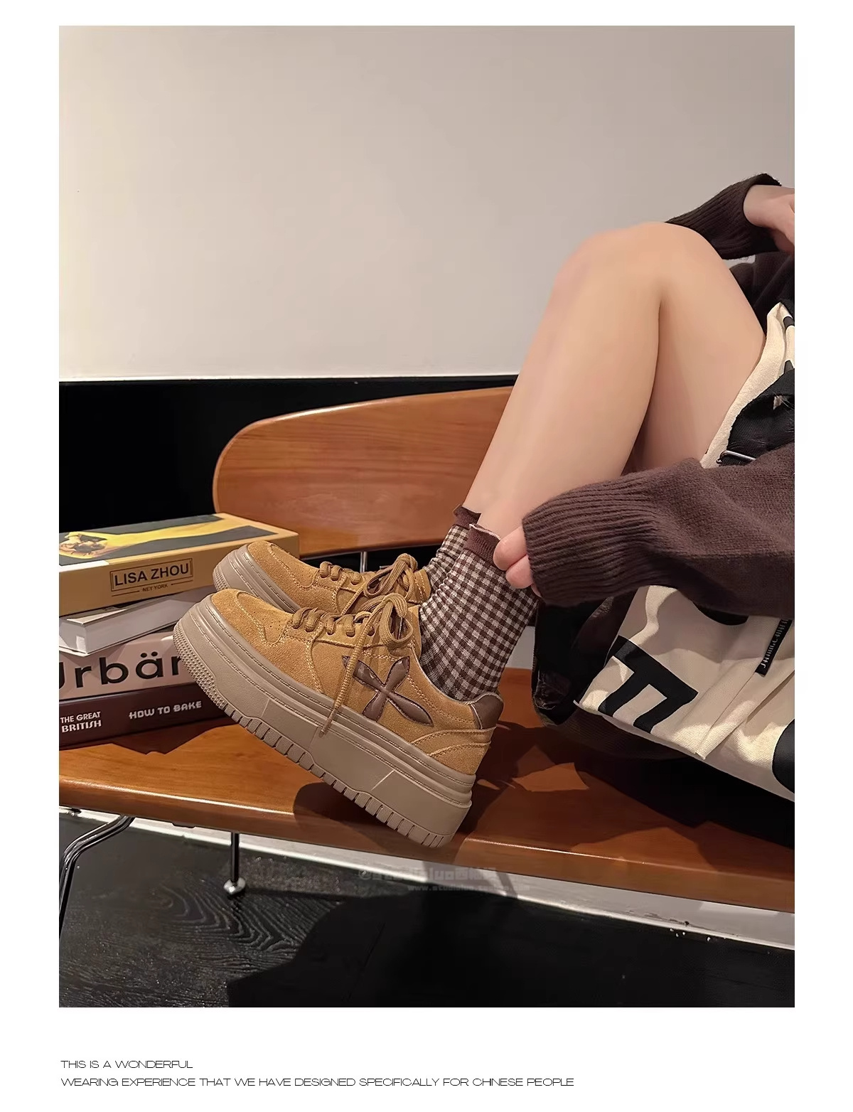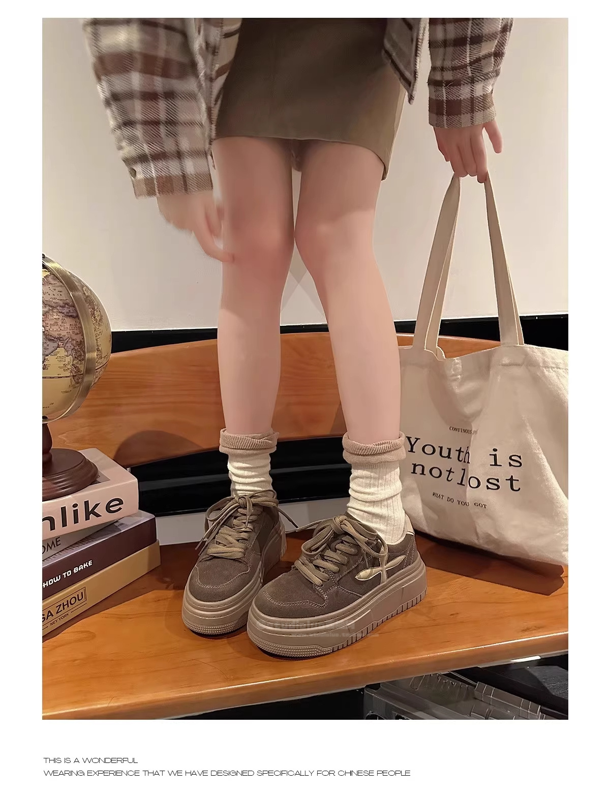 Hong Kong Maillard Versatile Sports Sneakers for Women 2025 Spring & Fall New Platform Thick Sole Heightening Bread Casual Shoes