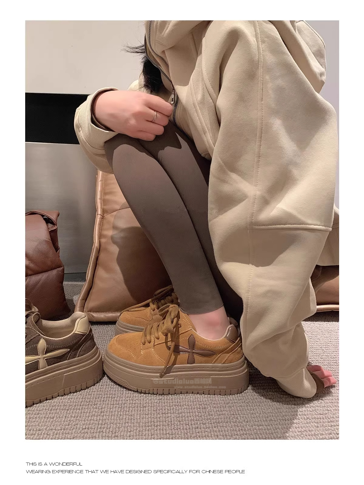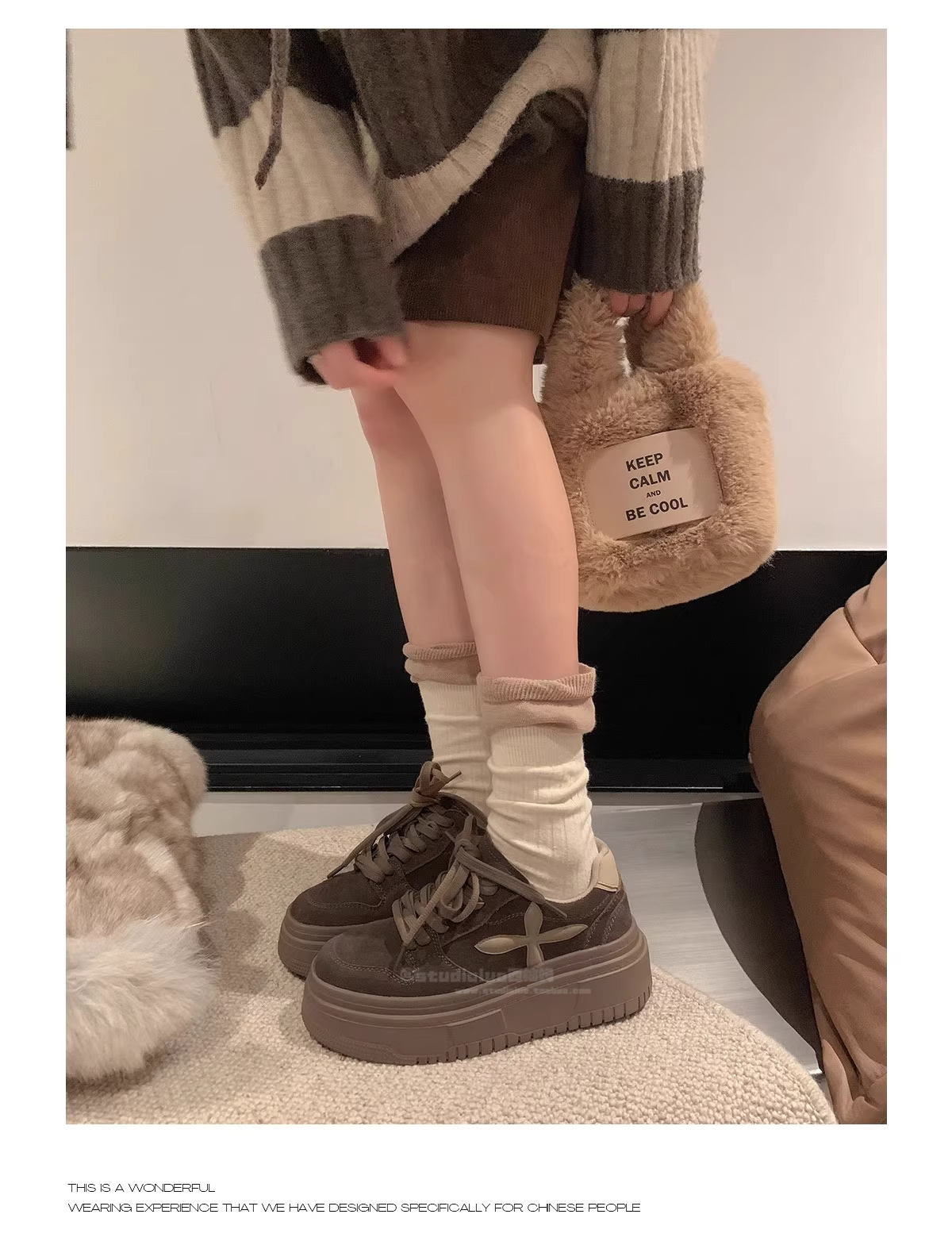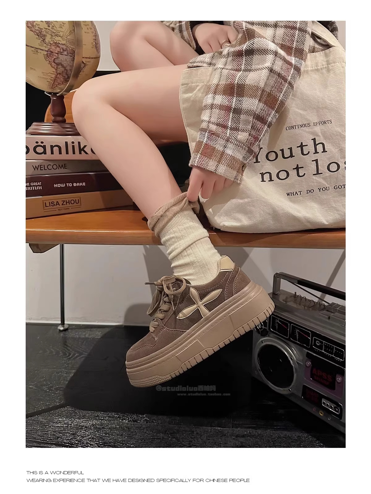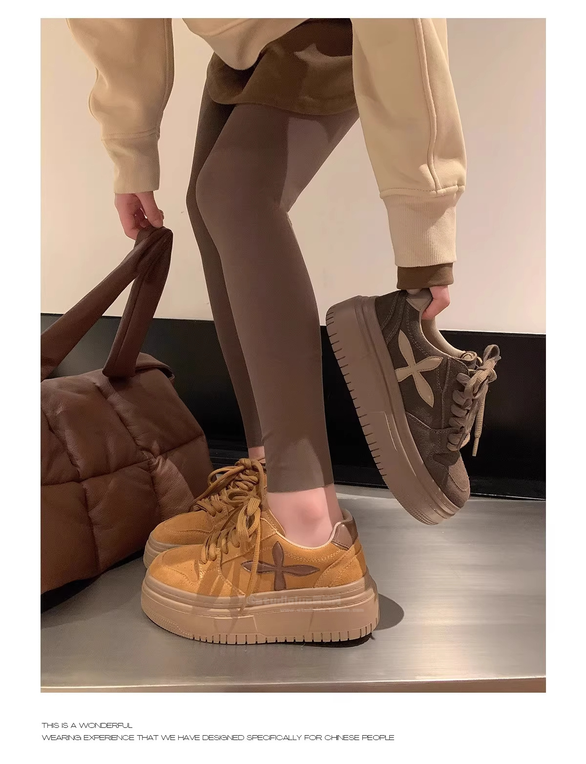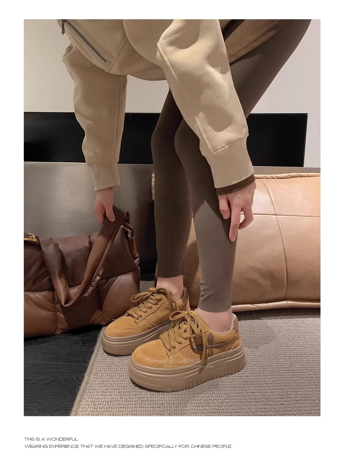 Hong Kong Maillard Versatile Sports Sneakers for Women 2025 Spring & Fall New Platform Thick Sole Heightening Bread Casual Shoes