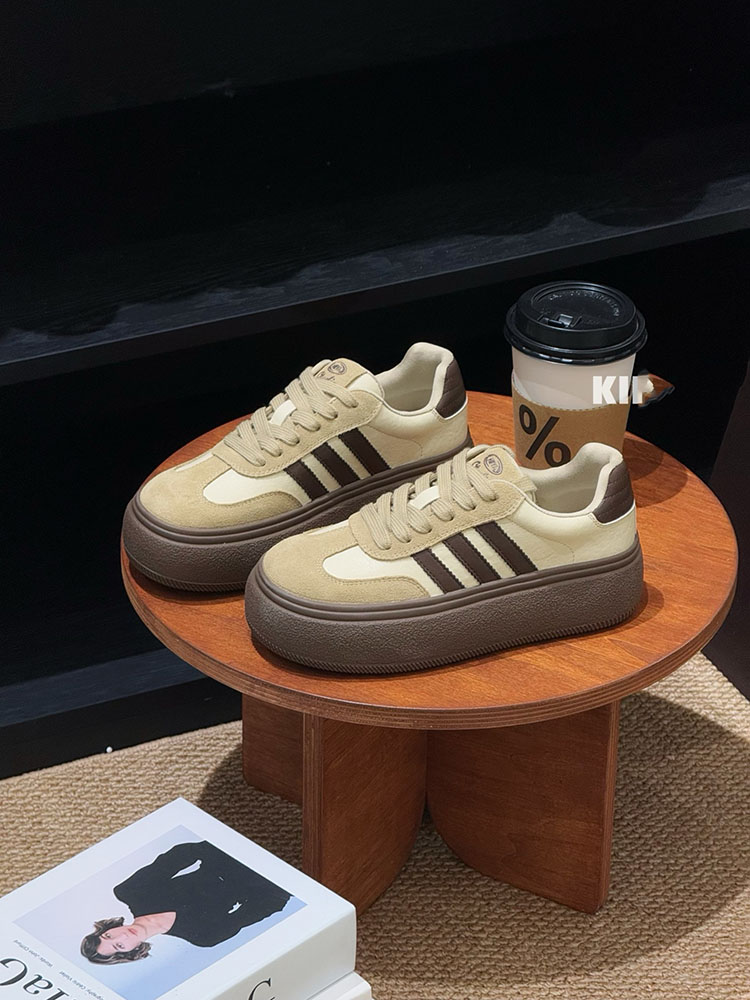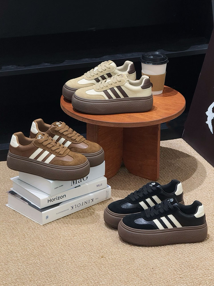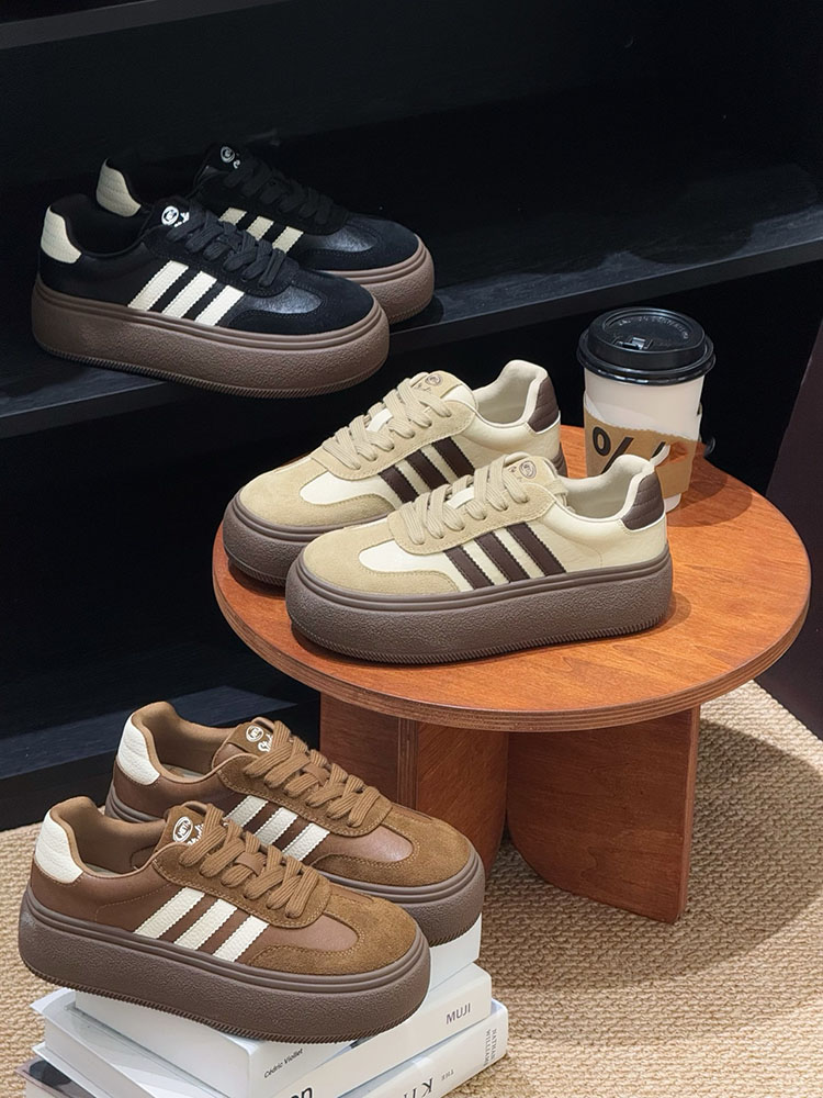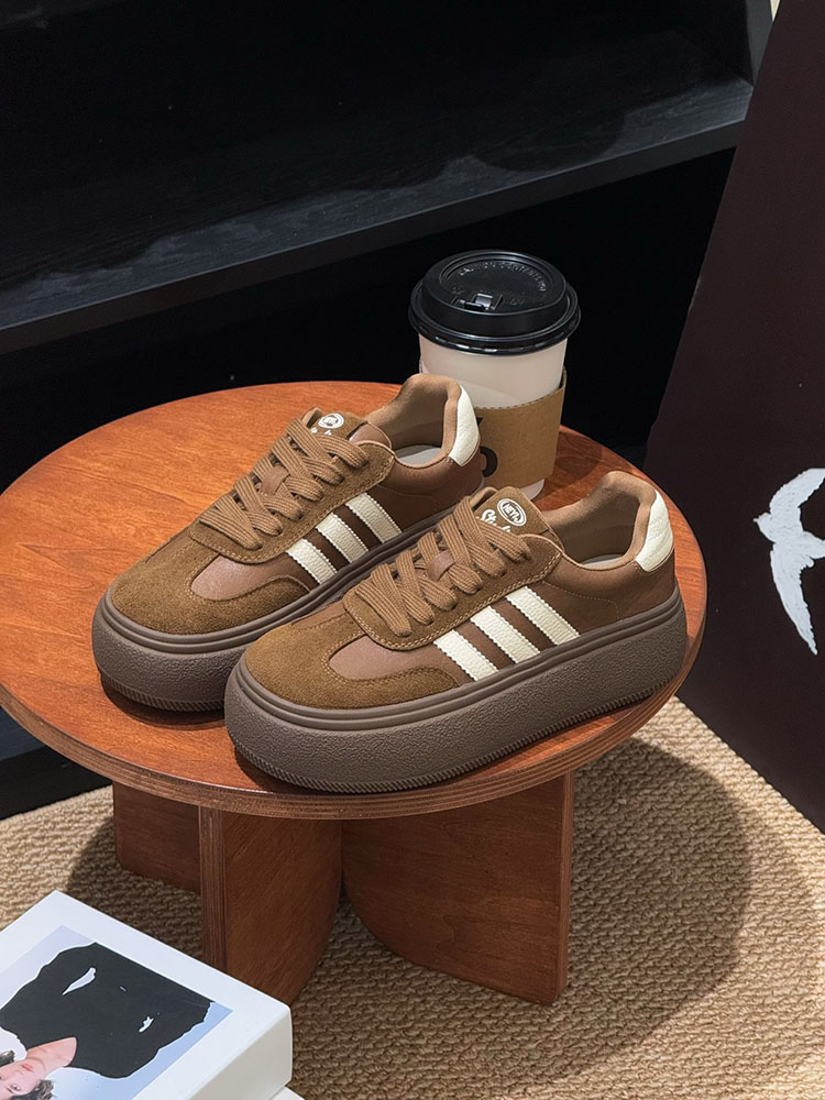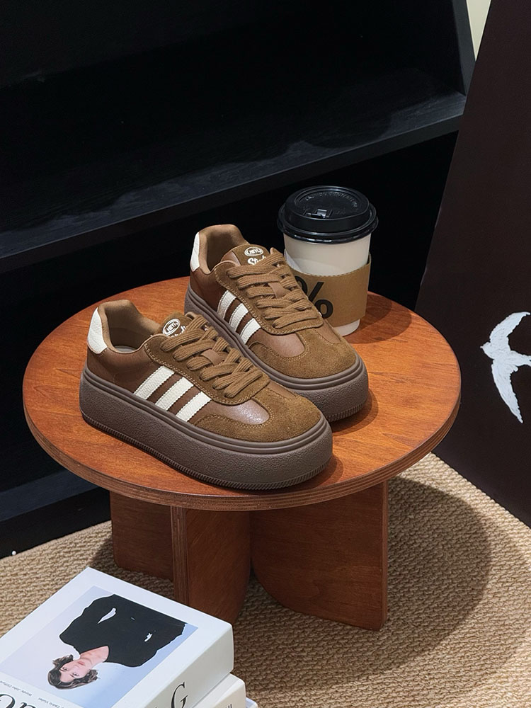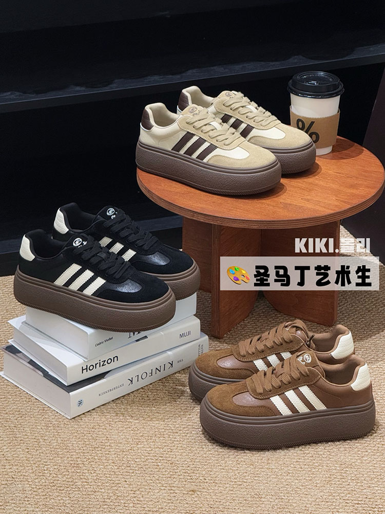 Hong Kong Maillard Retro Thick-Soled Height-Increasing Casual Sneakers for Women 2025 Spring and Autumn New Platform Shoes Genuine Leather Training Shoes