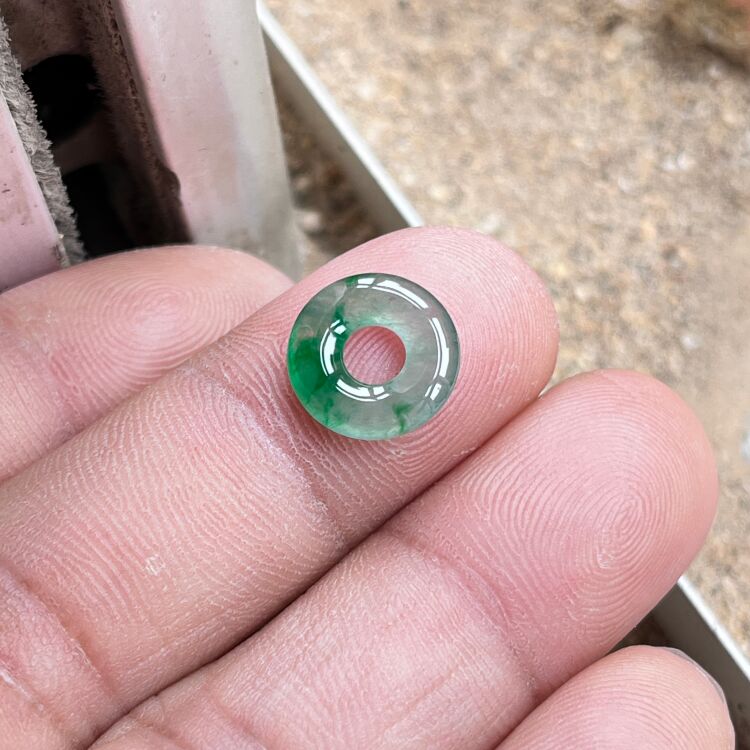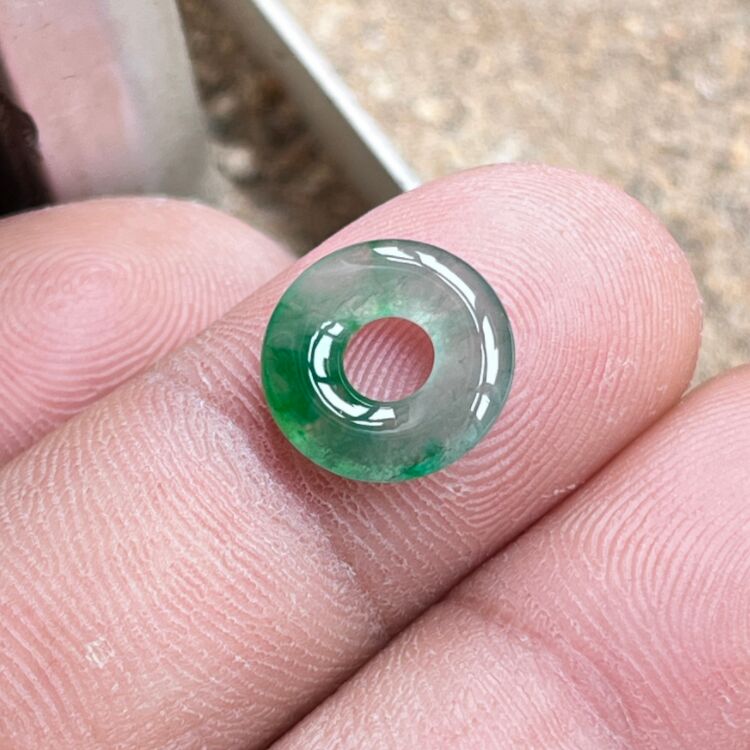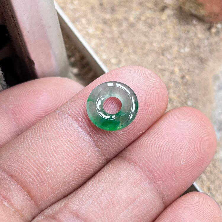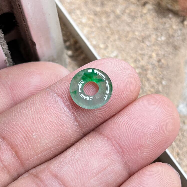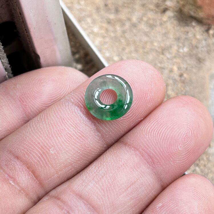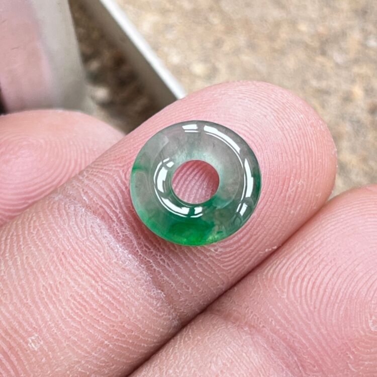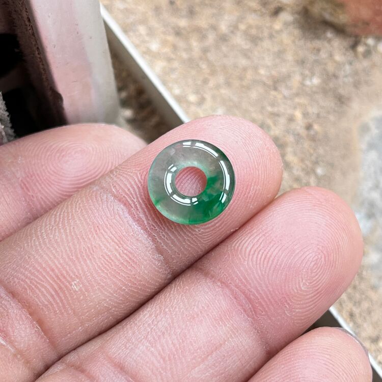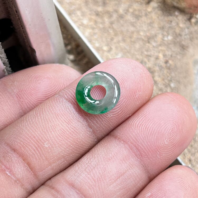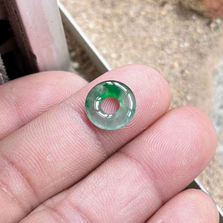 Baby Ice Jade Spicy Green Natural Jade Donut Bracelet Braided Rope Jade Button Small Size Burmese Jade for Men and Women
