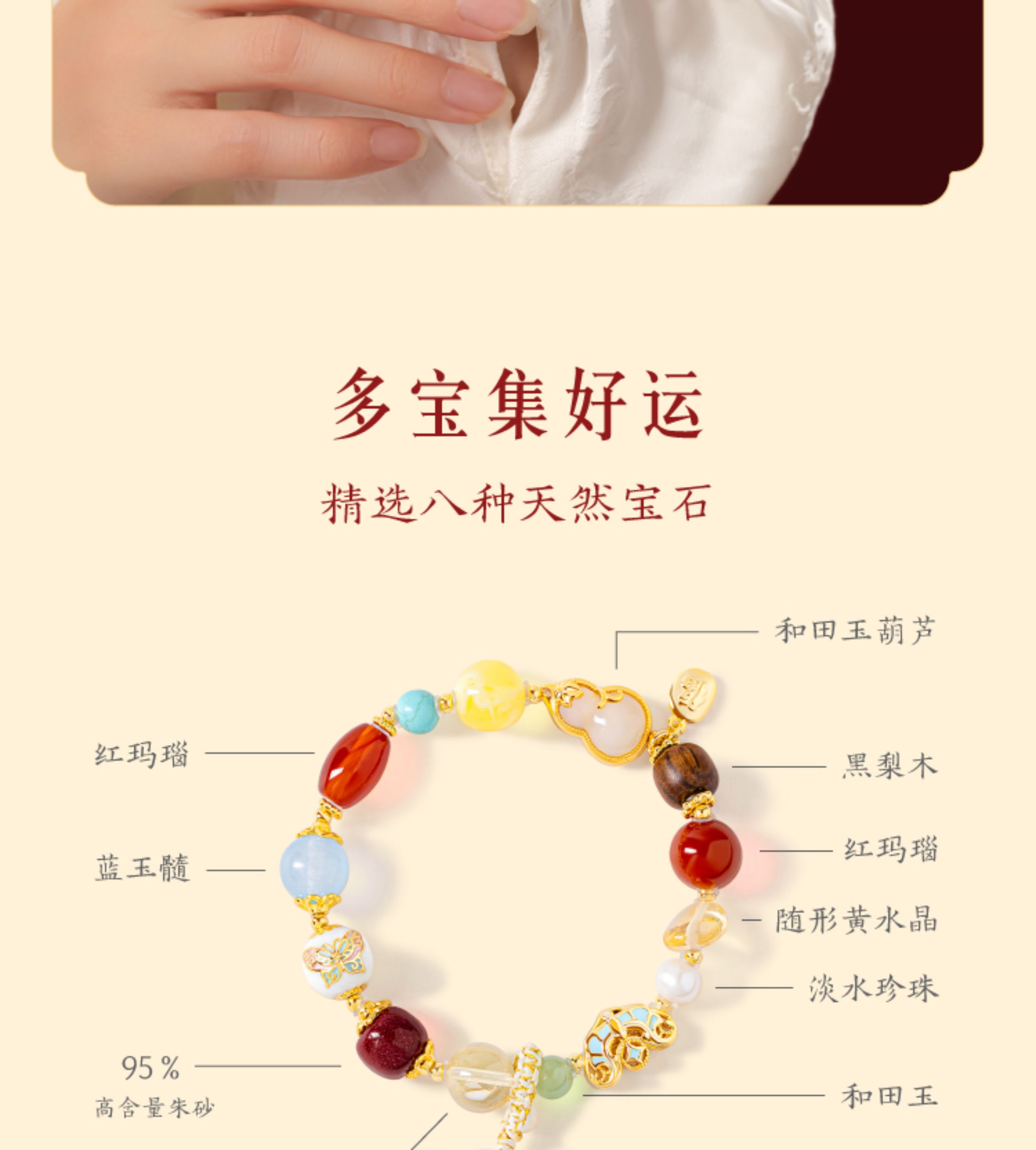 Forbidden City Taobao|Fortune Multiplies with Blessings Multi-Treasure Bracelet Crystal Bracelet Cultural and Creative Christmas Zodiac Year Birthday Gift for Girls