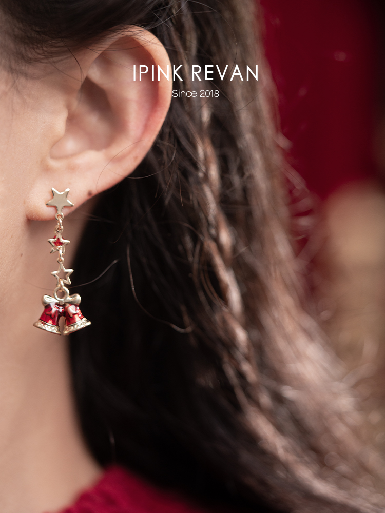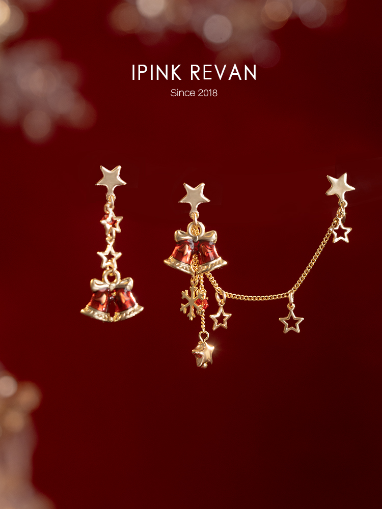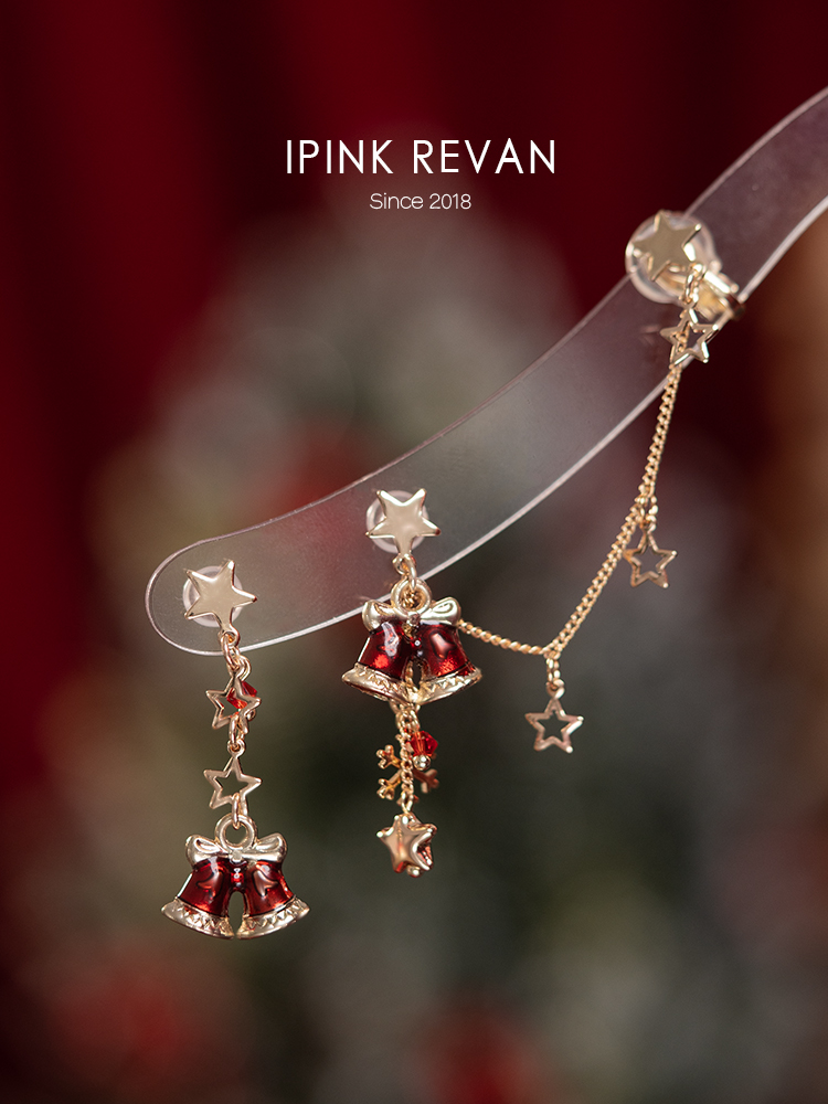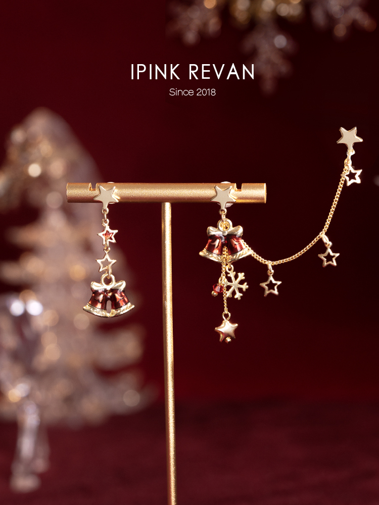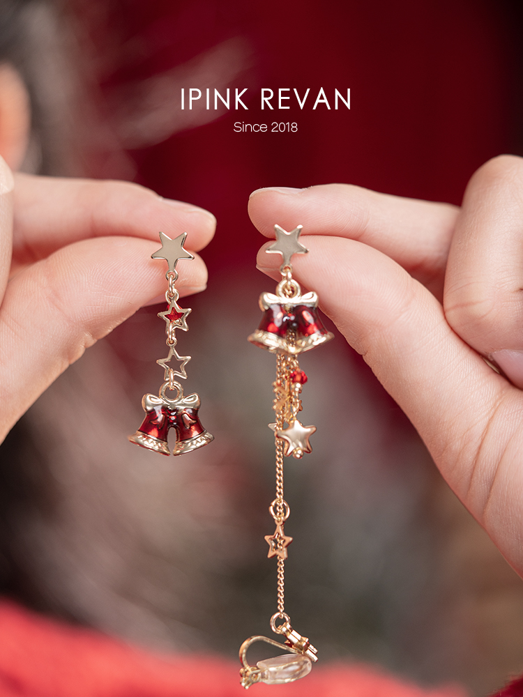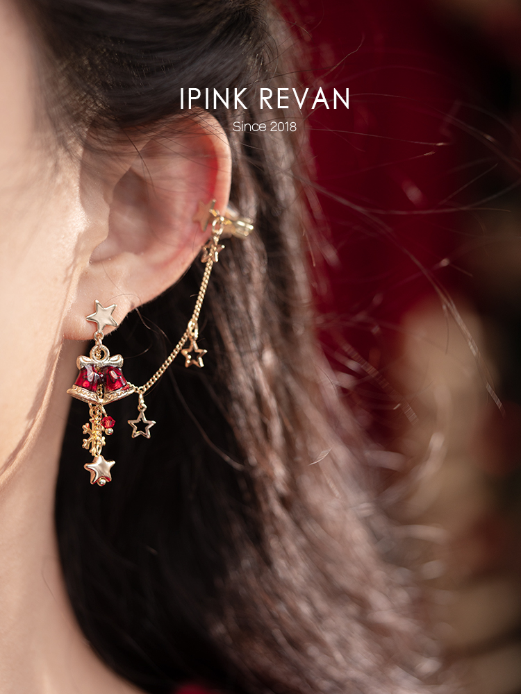 Ipink Original Christmas Bell Earrings Ear Cuff for Women Asymmetrical Ab Style Elegant Long Non-Pierced Earrings