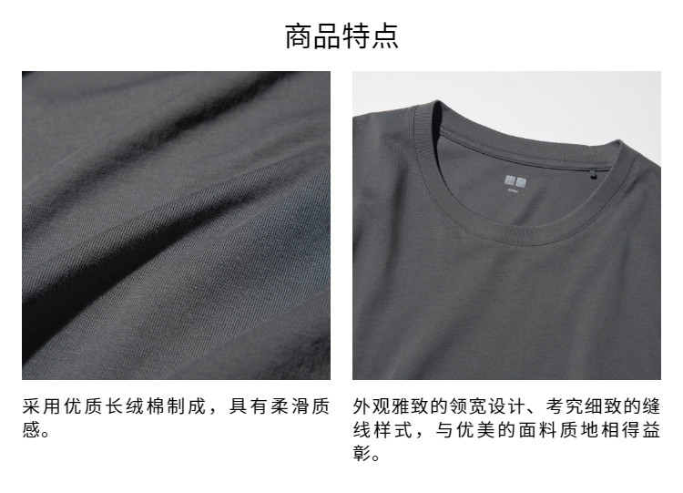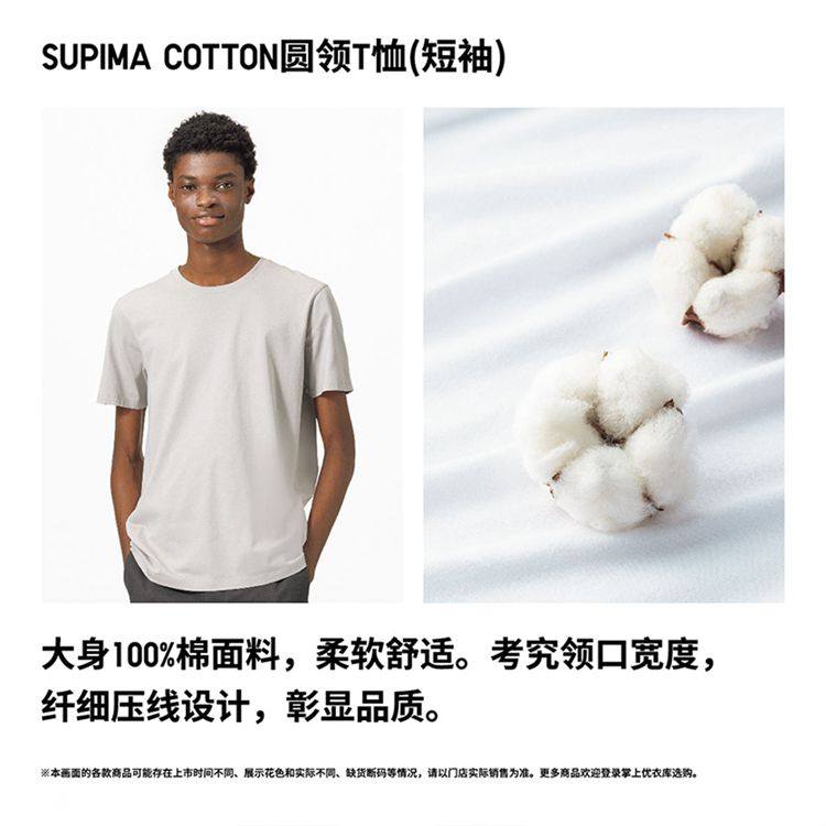 Uniqlo Men's and Women's Round Neck T-Shirt Supima Cotton Short-Sleeved Pure Cotton Texture 475357 465494