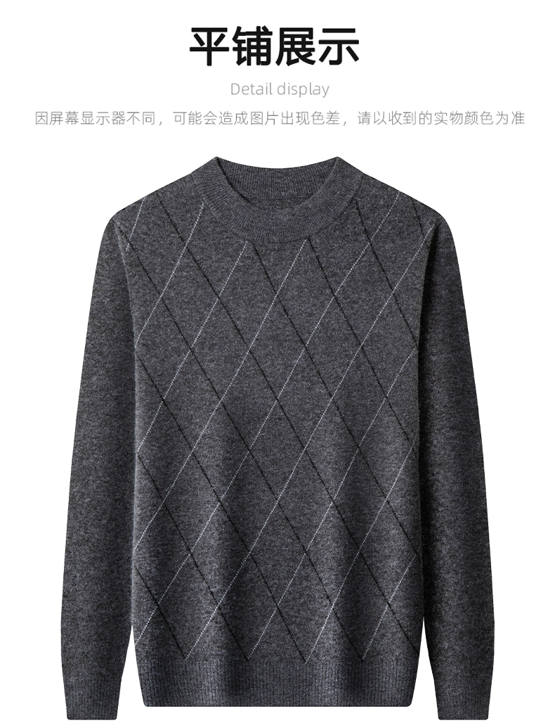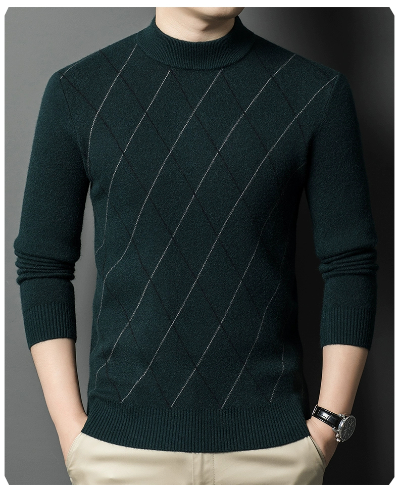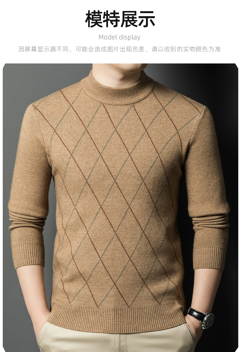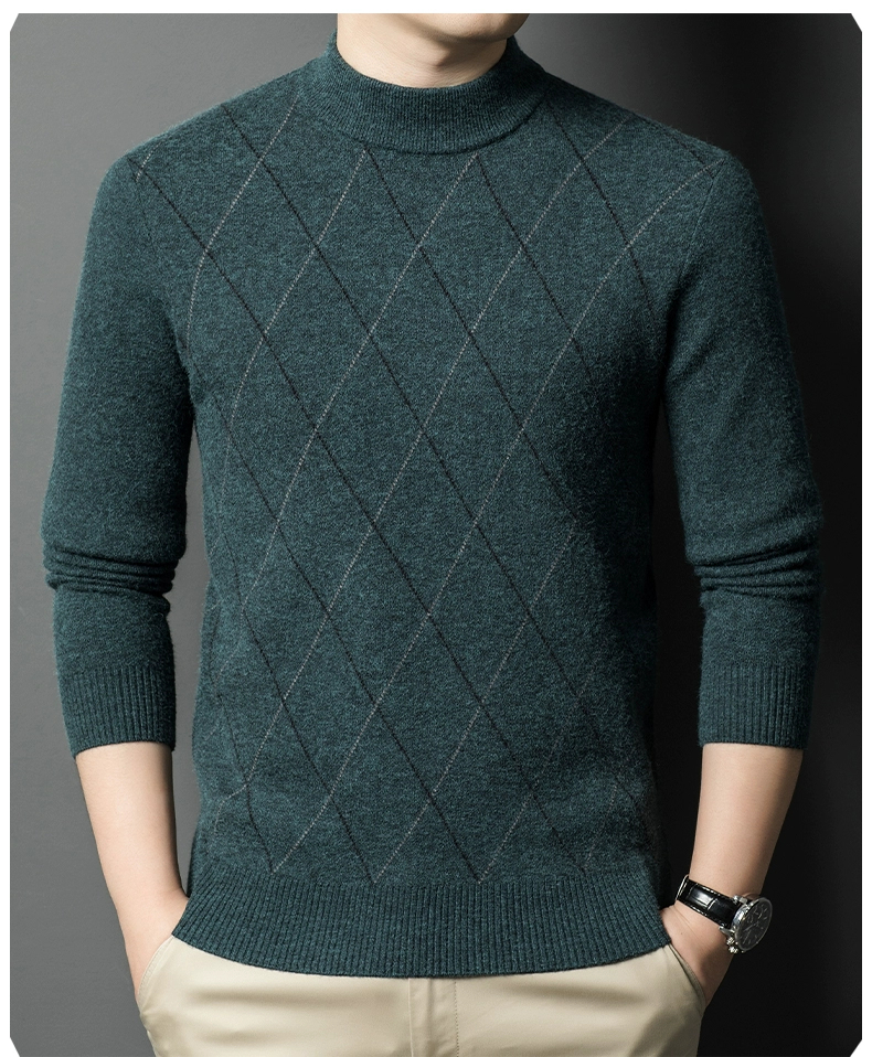Hengyuanxiang Group Caiyang Genuine Cashmere Sweater for Men, Winter Half-Turtleneck New Style Sweater, Middle-Aged Thickened Wool Sweater