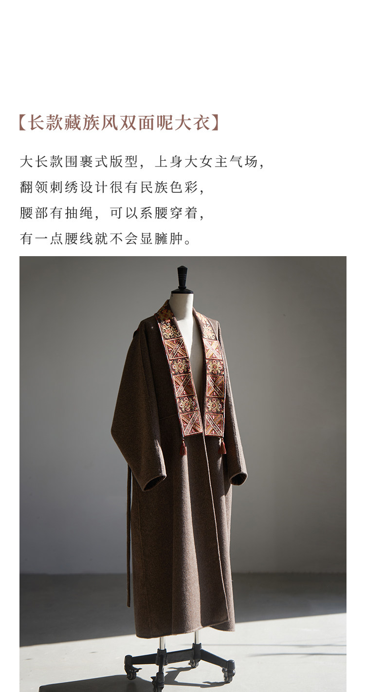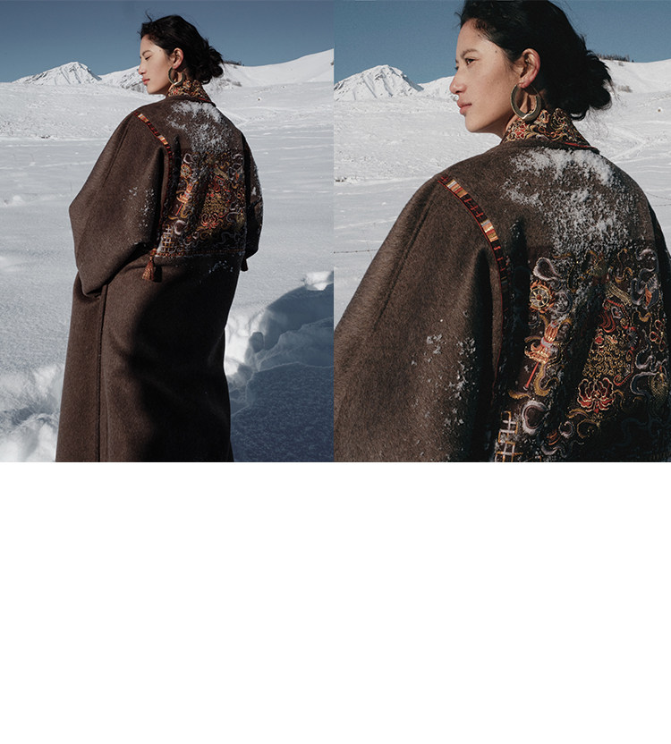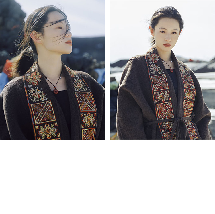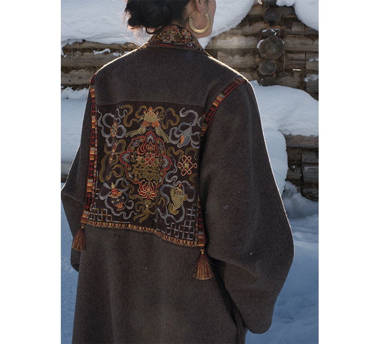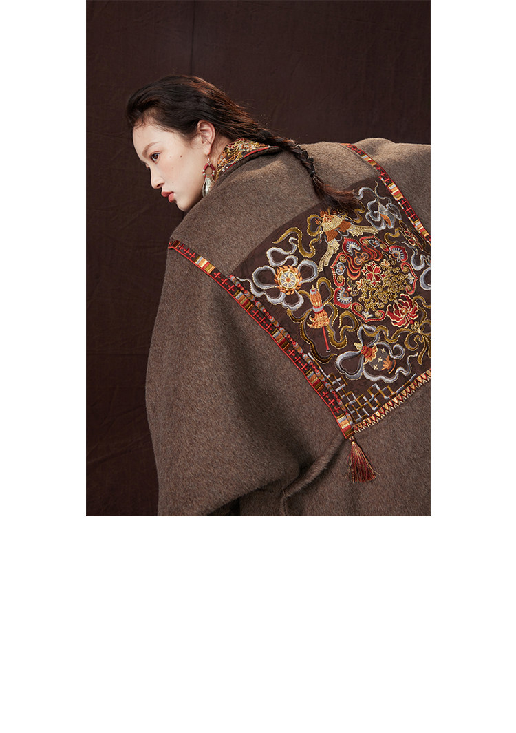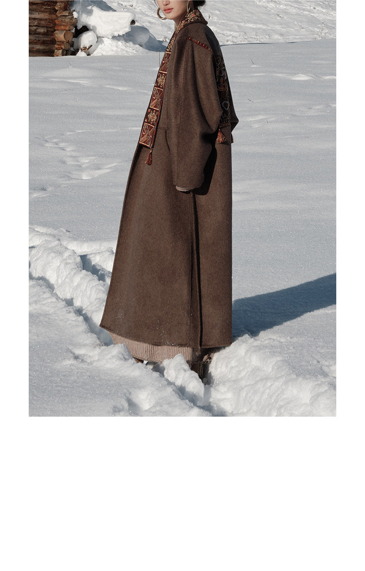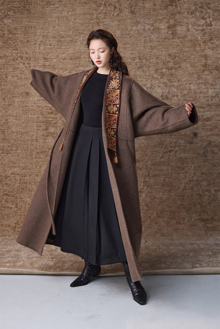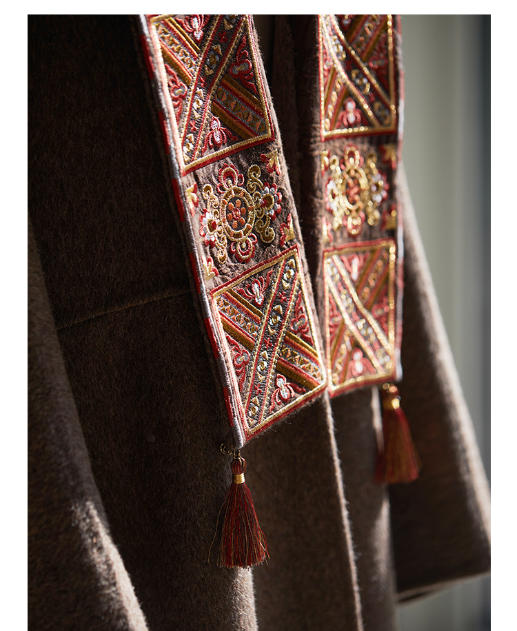 Tibetan Style Embroidery | Wool and Mulberry Silk Handmade Double-Sided Woolen Long Coat