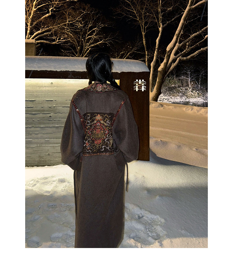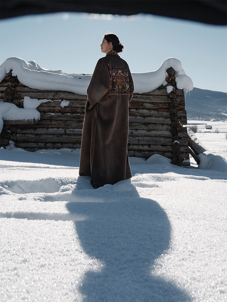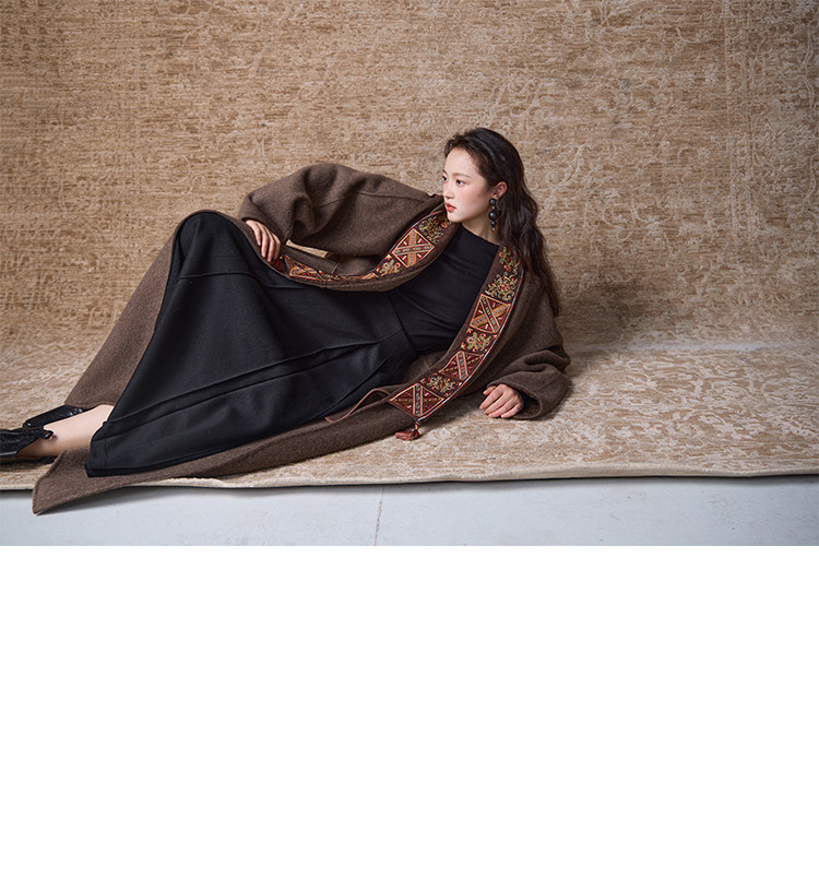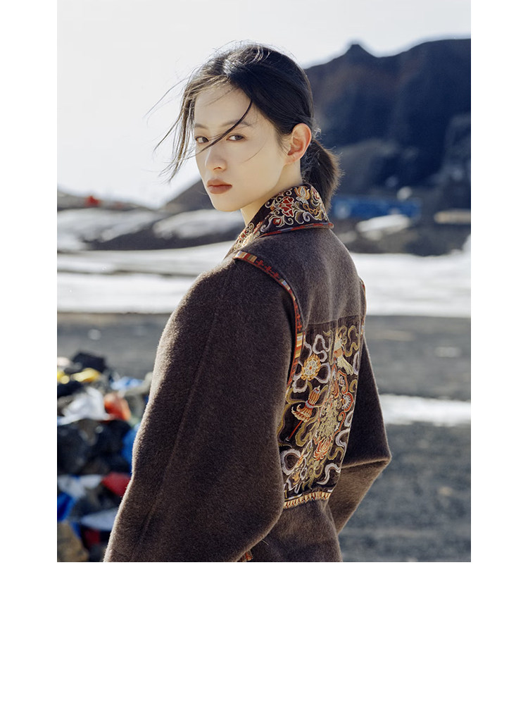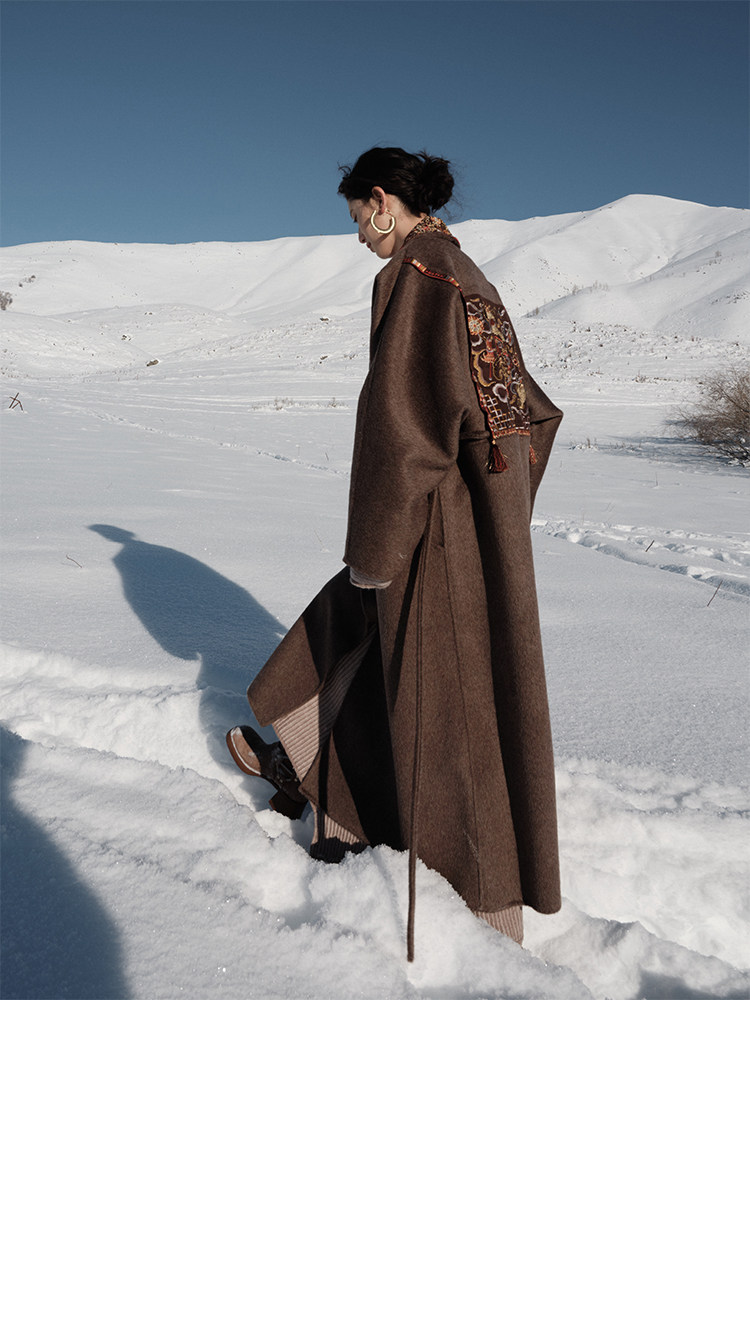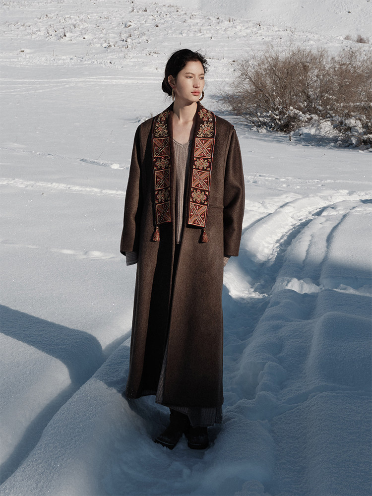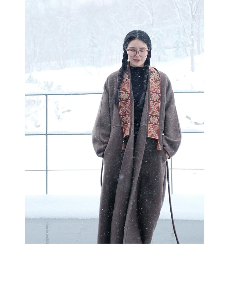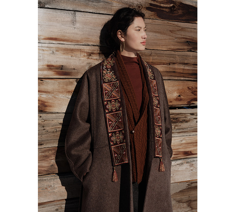 Tibetan Style Embroidery | Wool and Mulberry Silk Handmade Double-Sided Woolen Long Coat