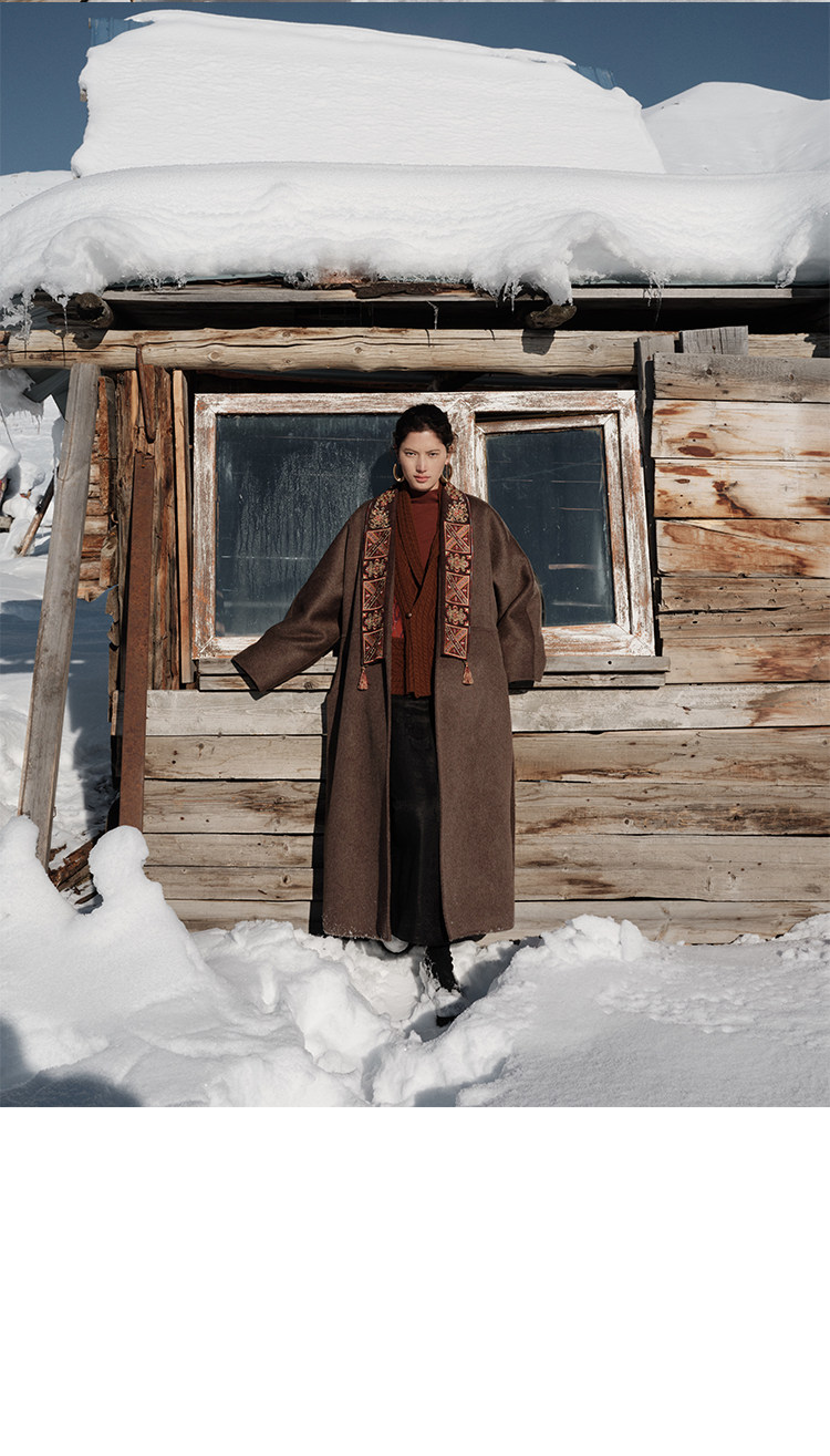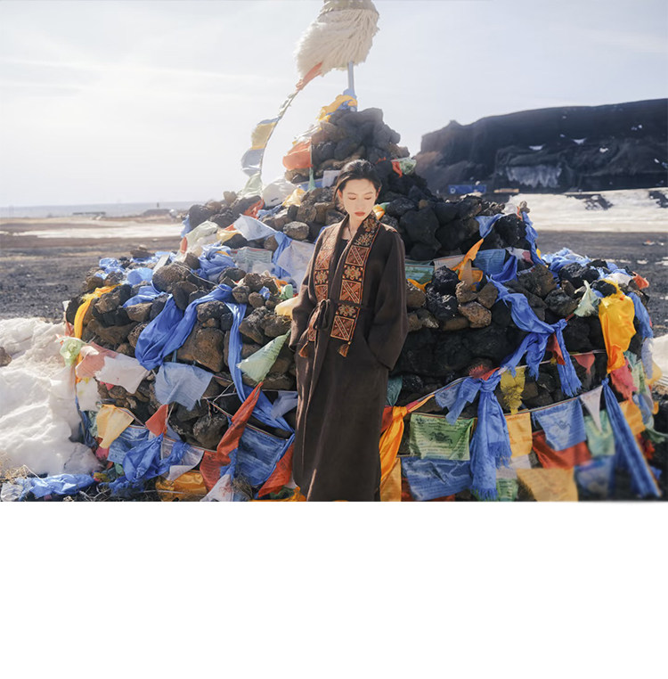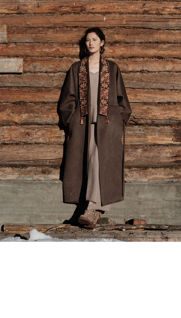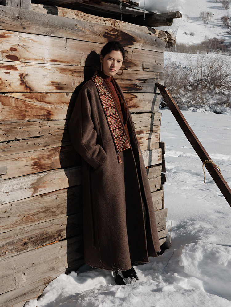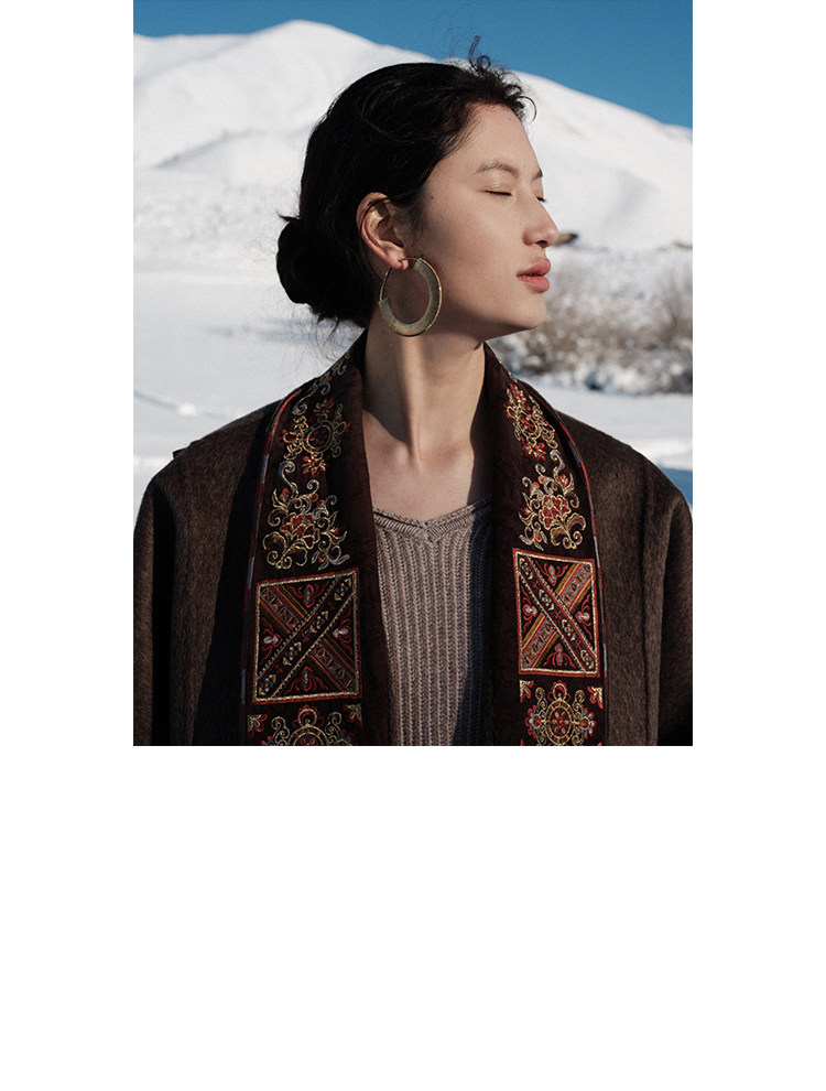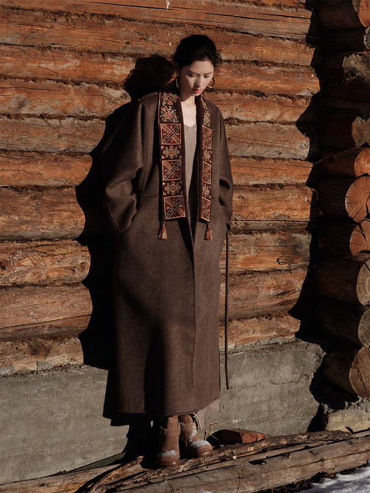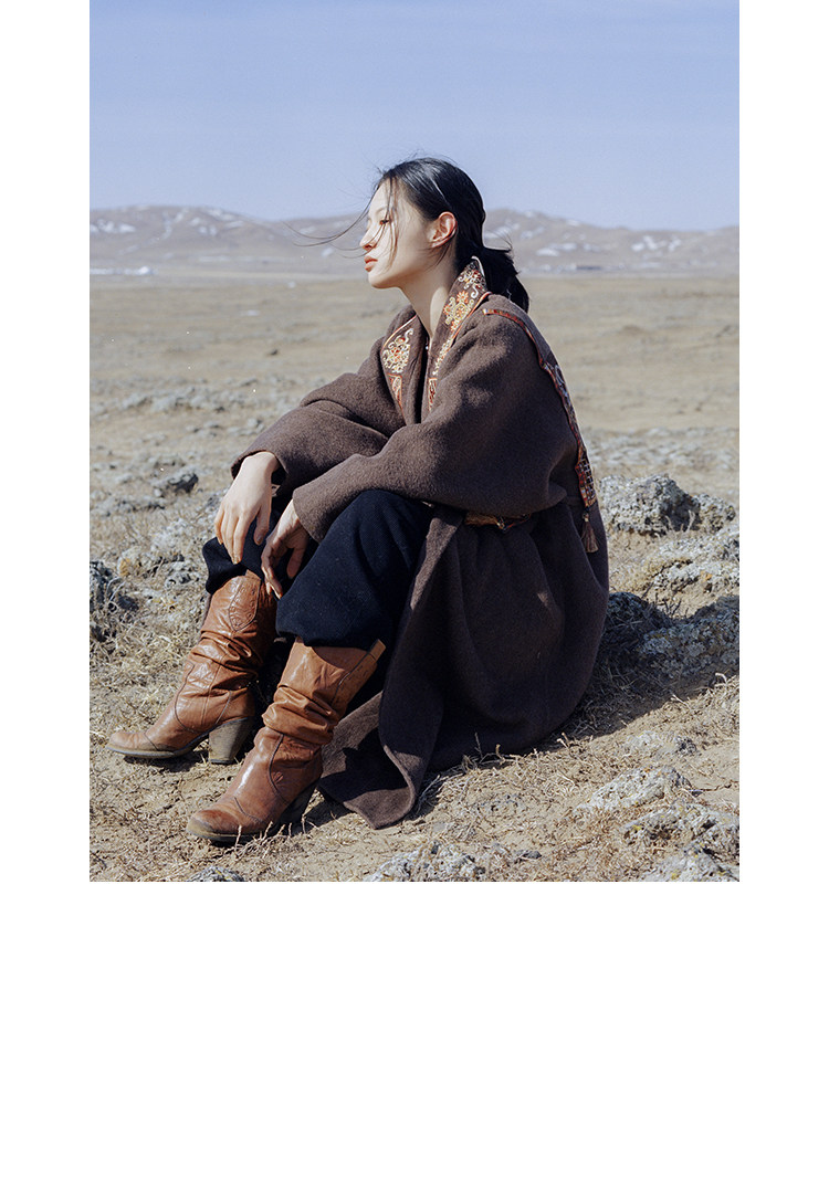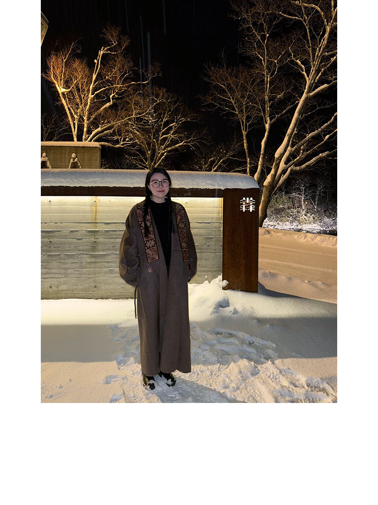 Tibetan Style Embroidery | Wool and Mulberry Silk Handmade Double-Sided Woolen Long Coat