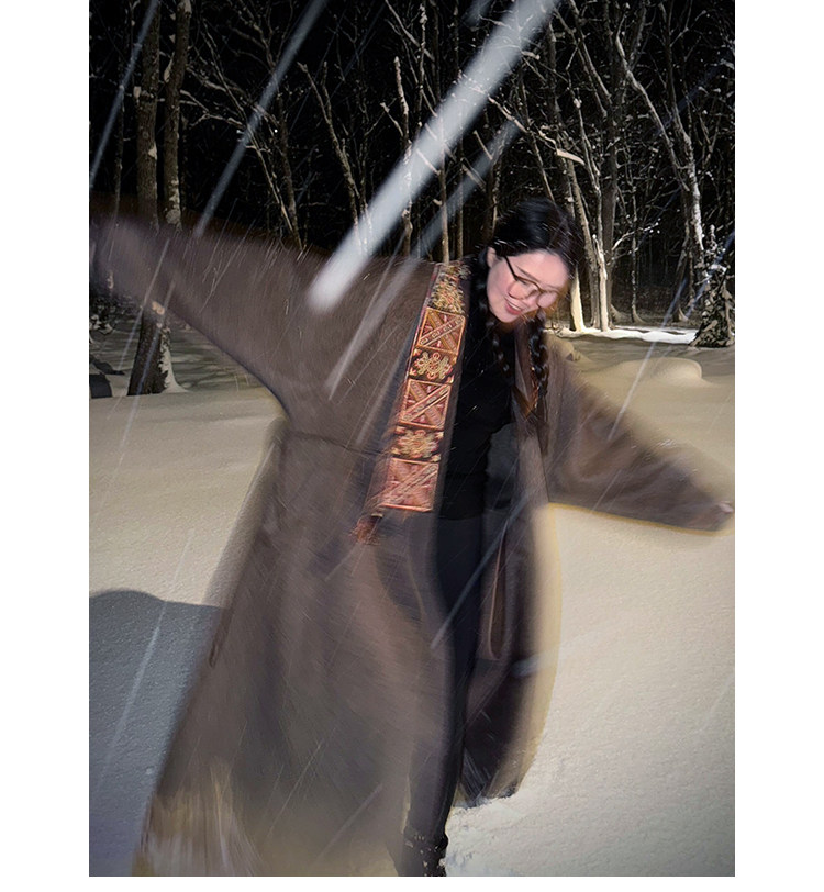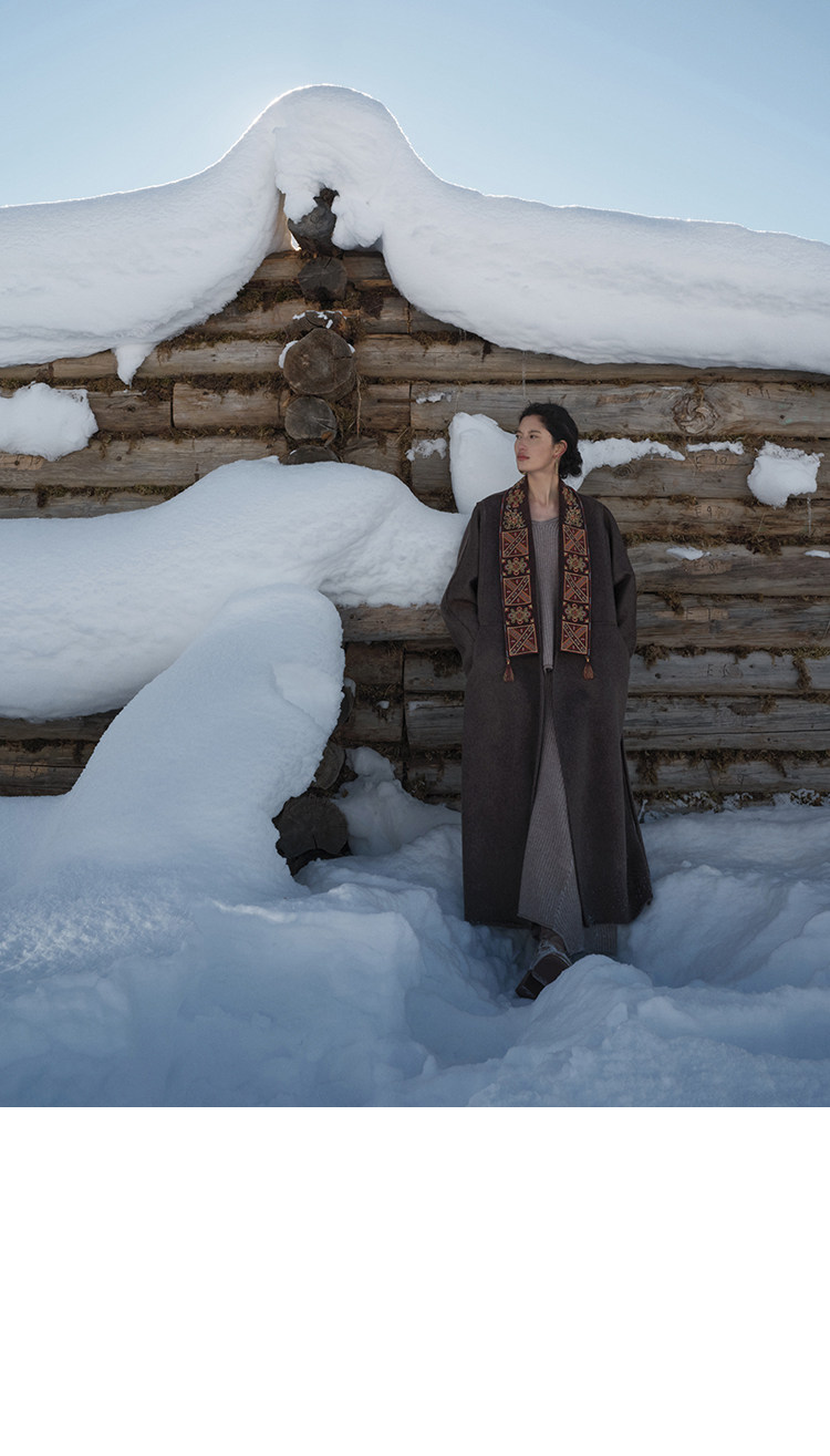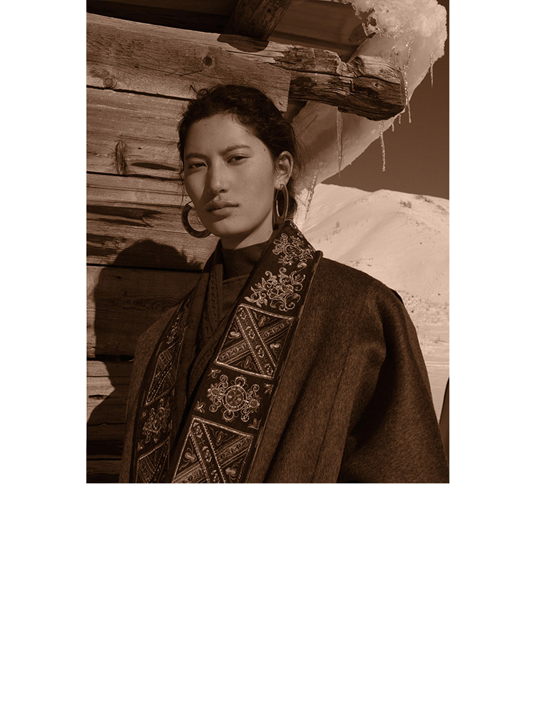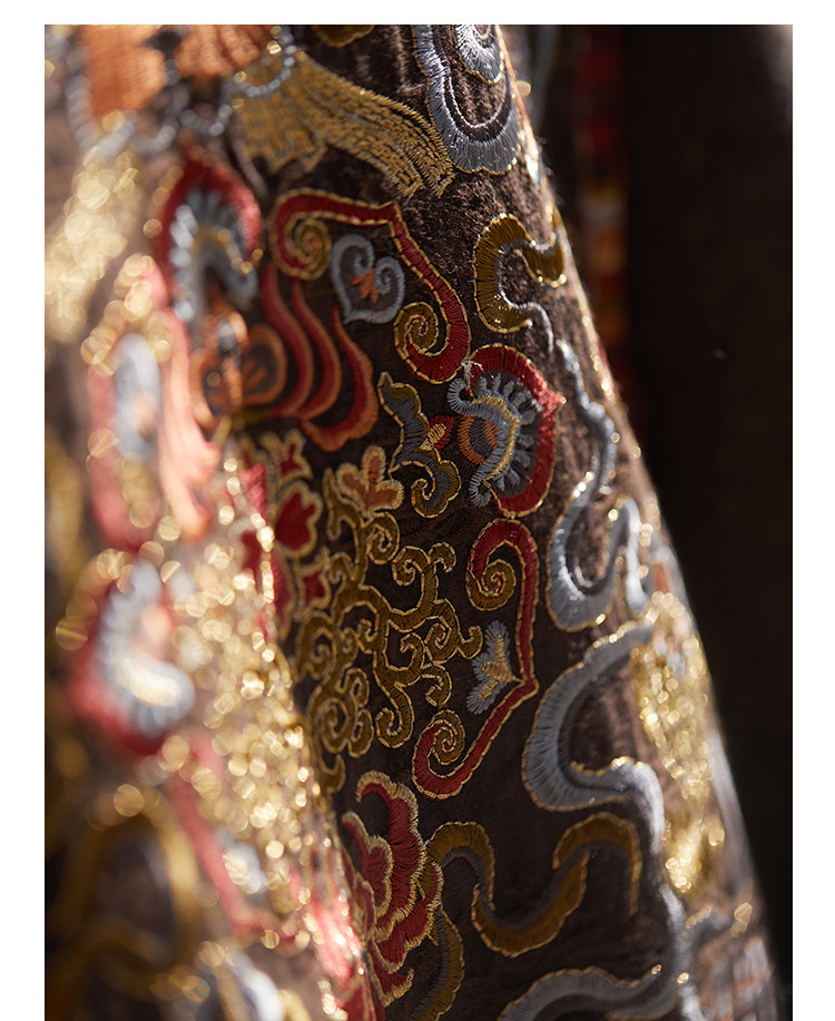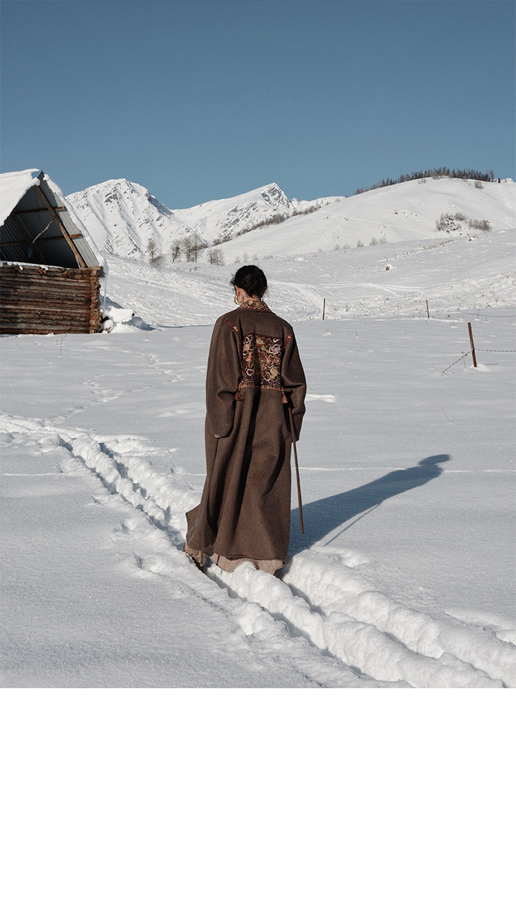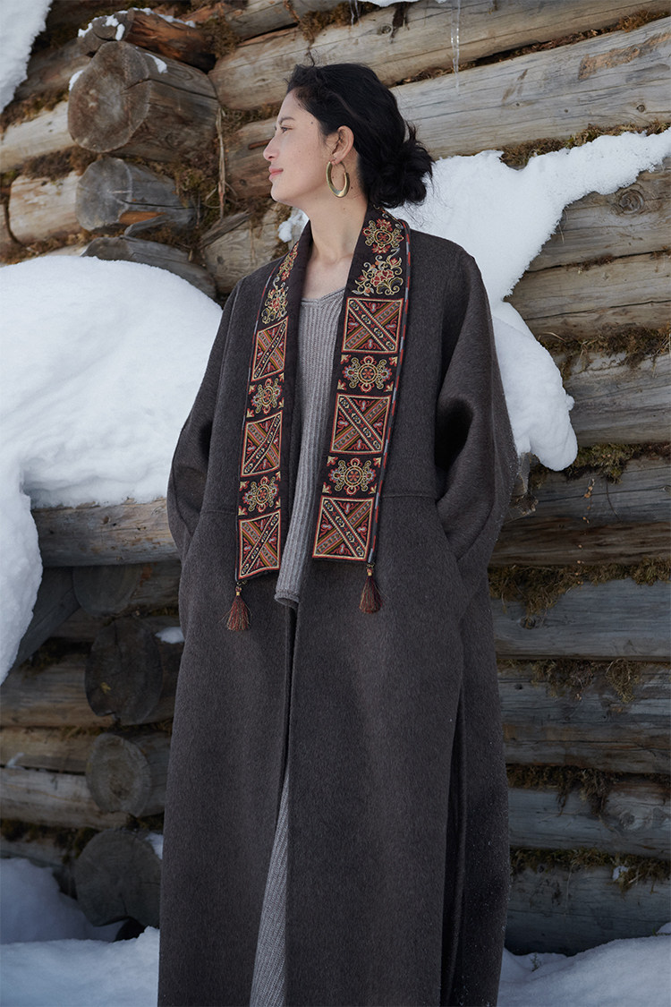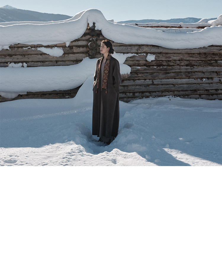 Tibetan Style Embroidery | Wool and Mulberry Silk Handmade Double-Sided Woolen Long Coat