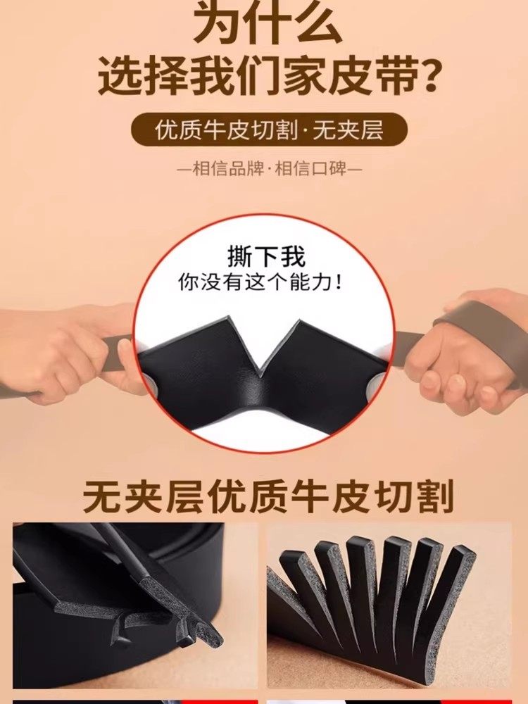 Pull-Back Belt for Men 2025 New Model Pin Buckle Belt Men's Genuine Leather Authentic Cowhide Trouser Belt for Middle-Aged and Elderly Men