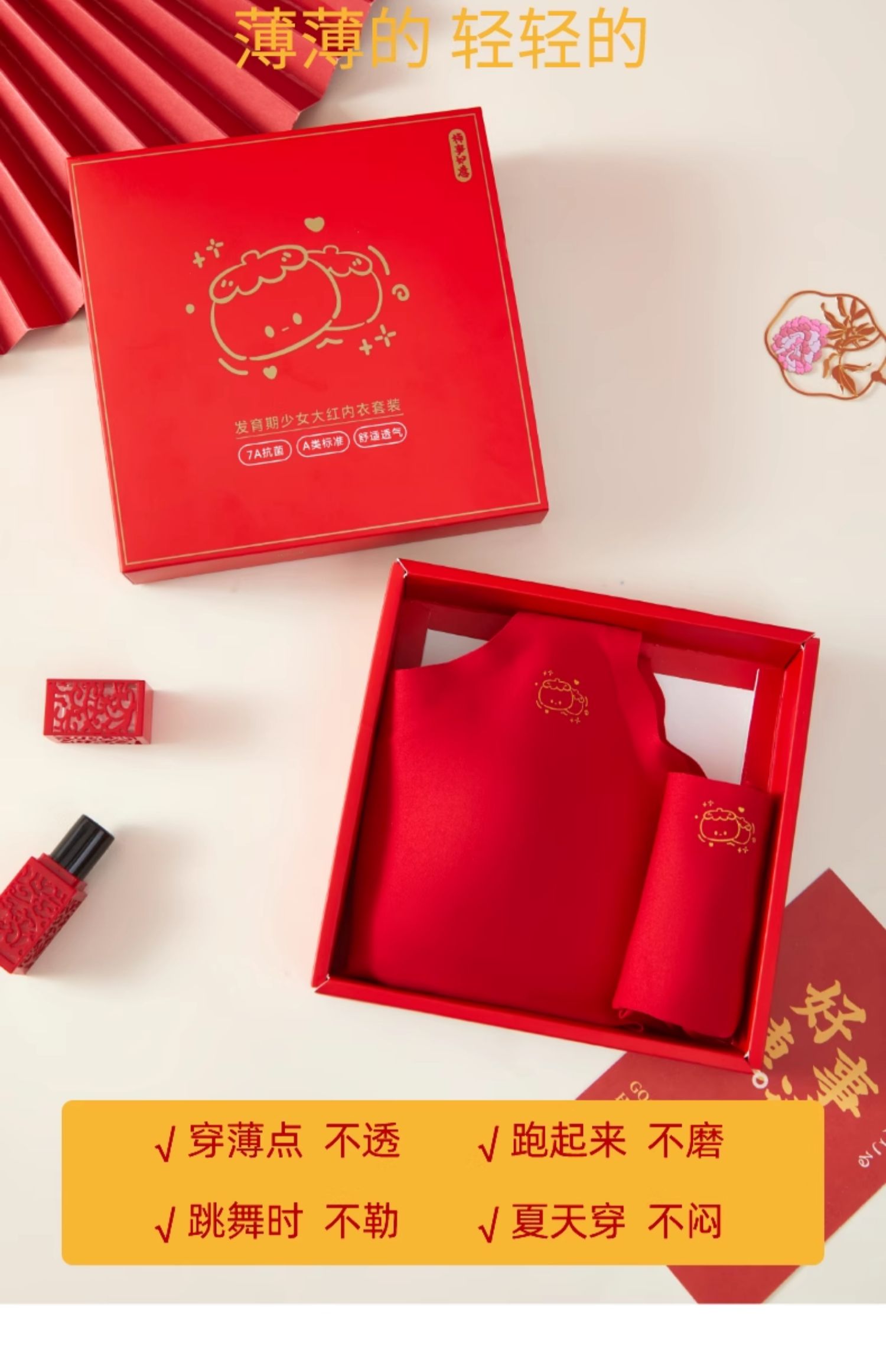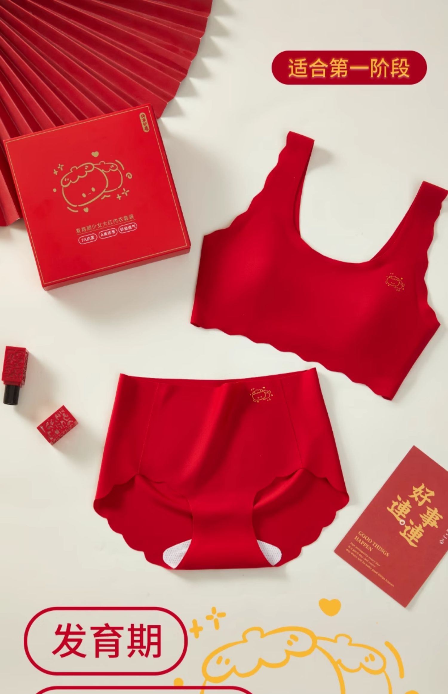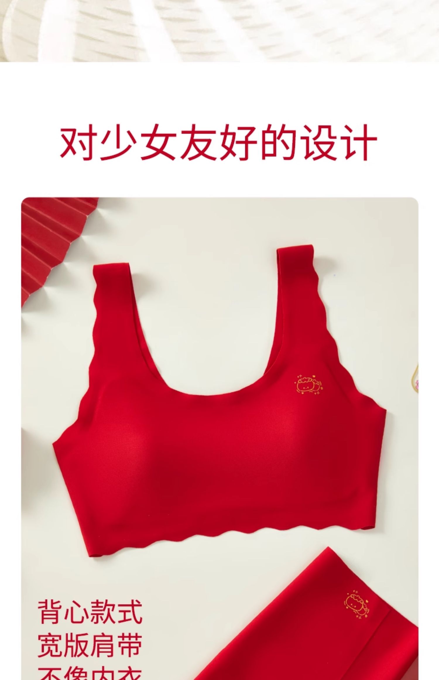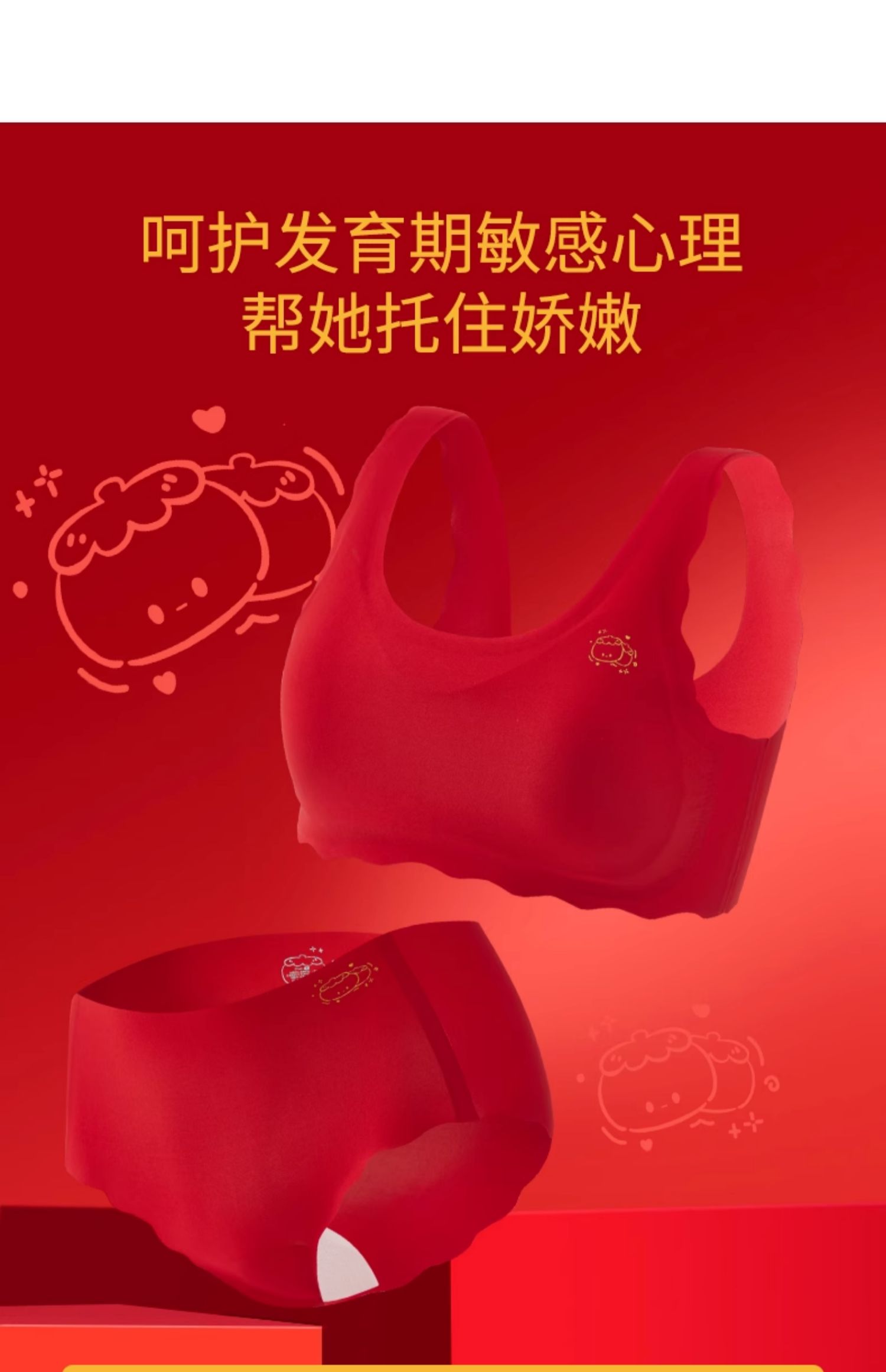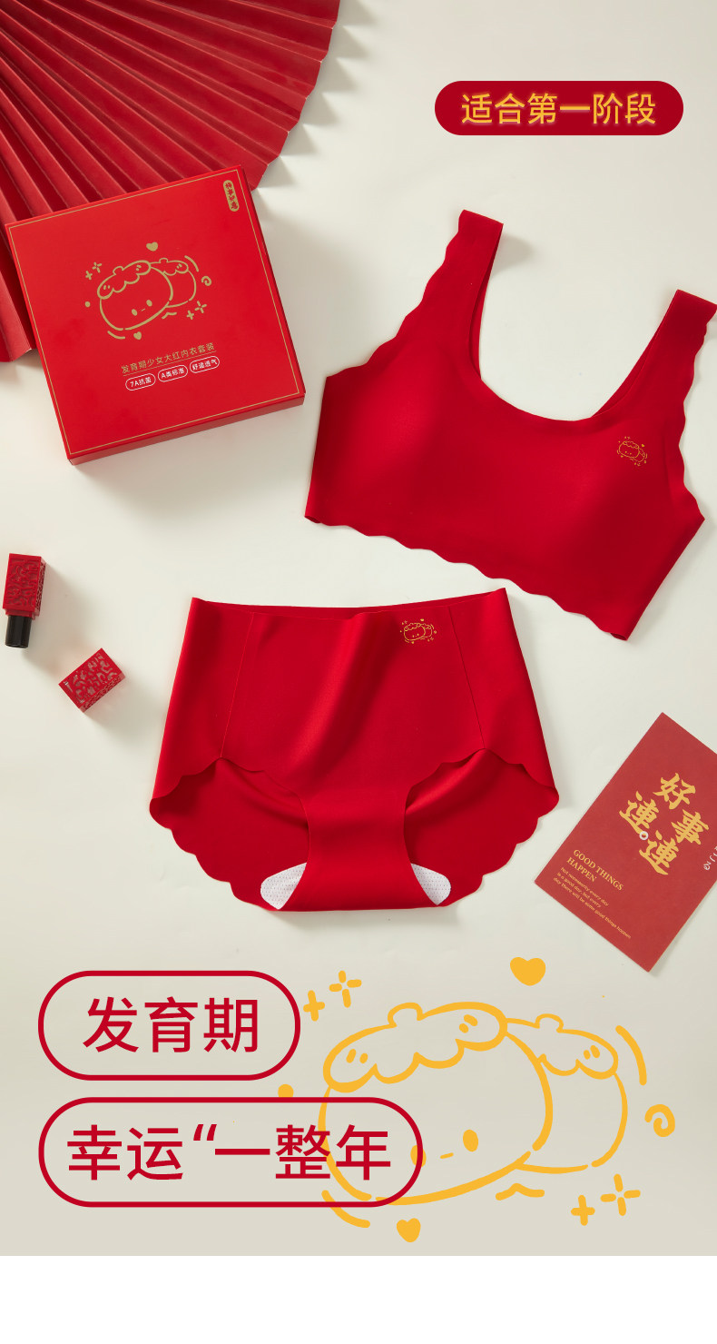 Girls' Red Underwear Set for Their Zodiac Year 2026, Year of the Horse, Children's Development Period Bra and Vest for 12-Year-Old Girls