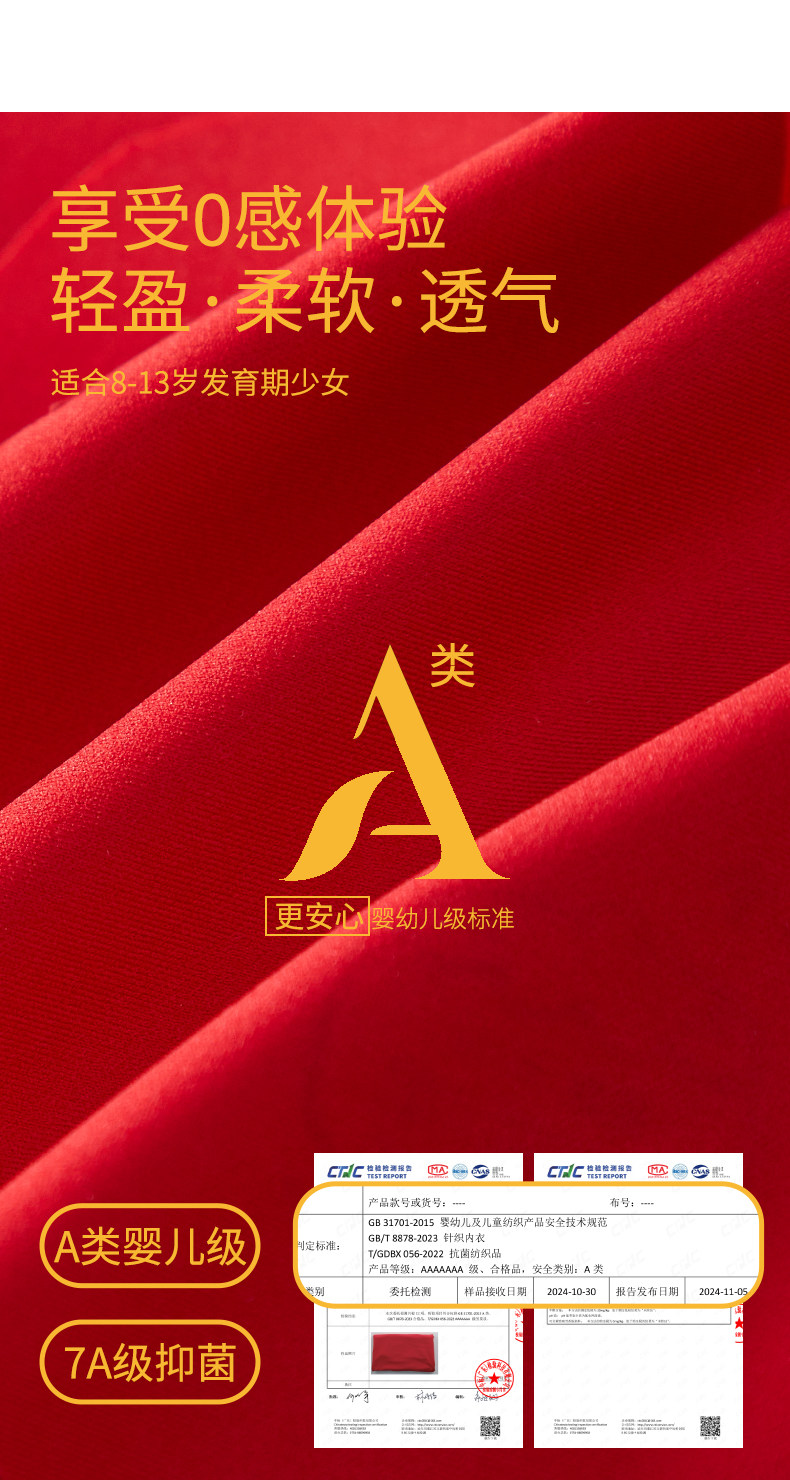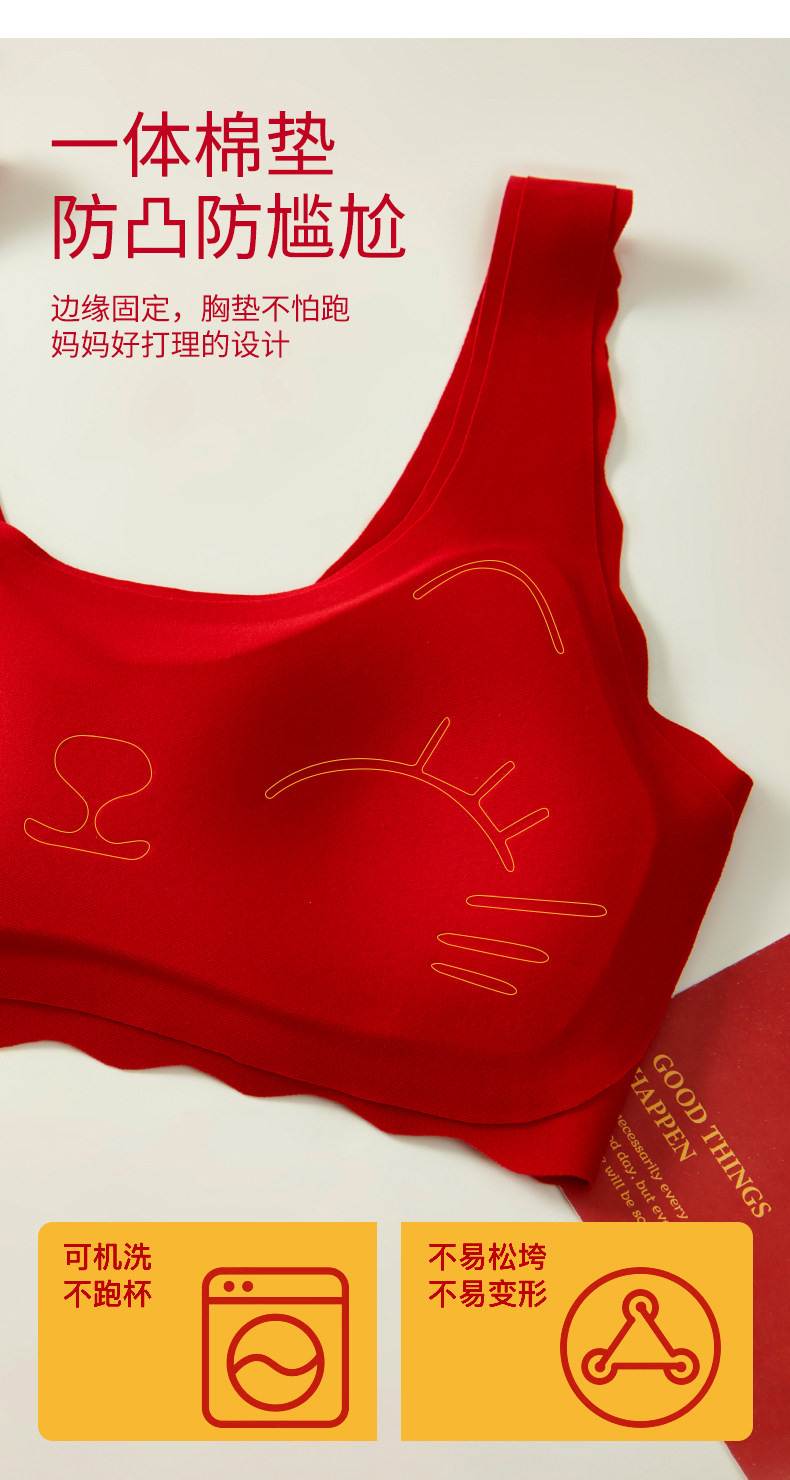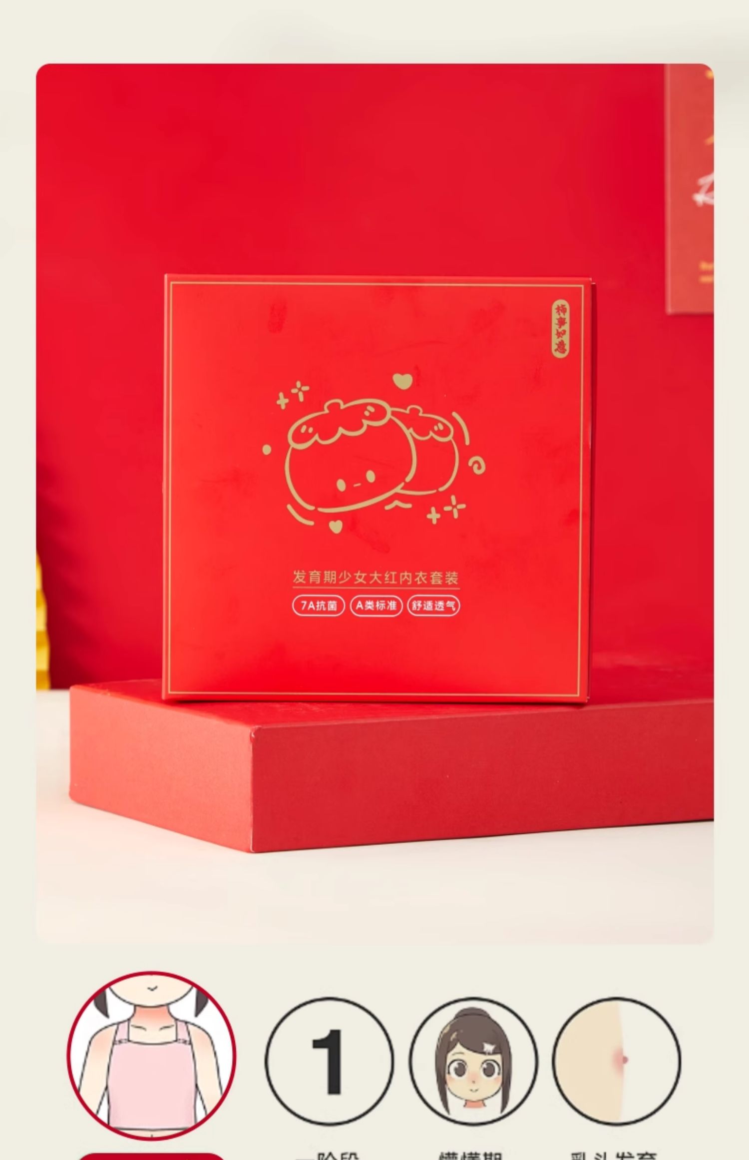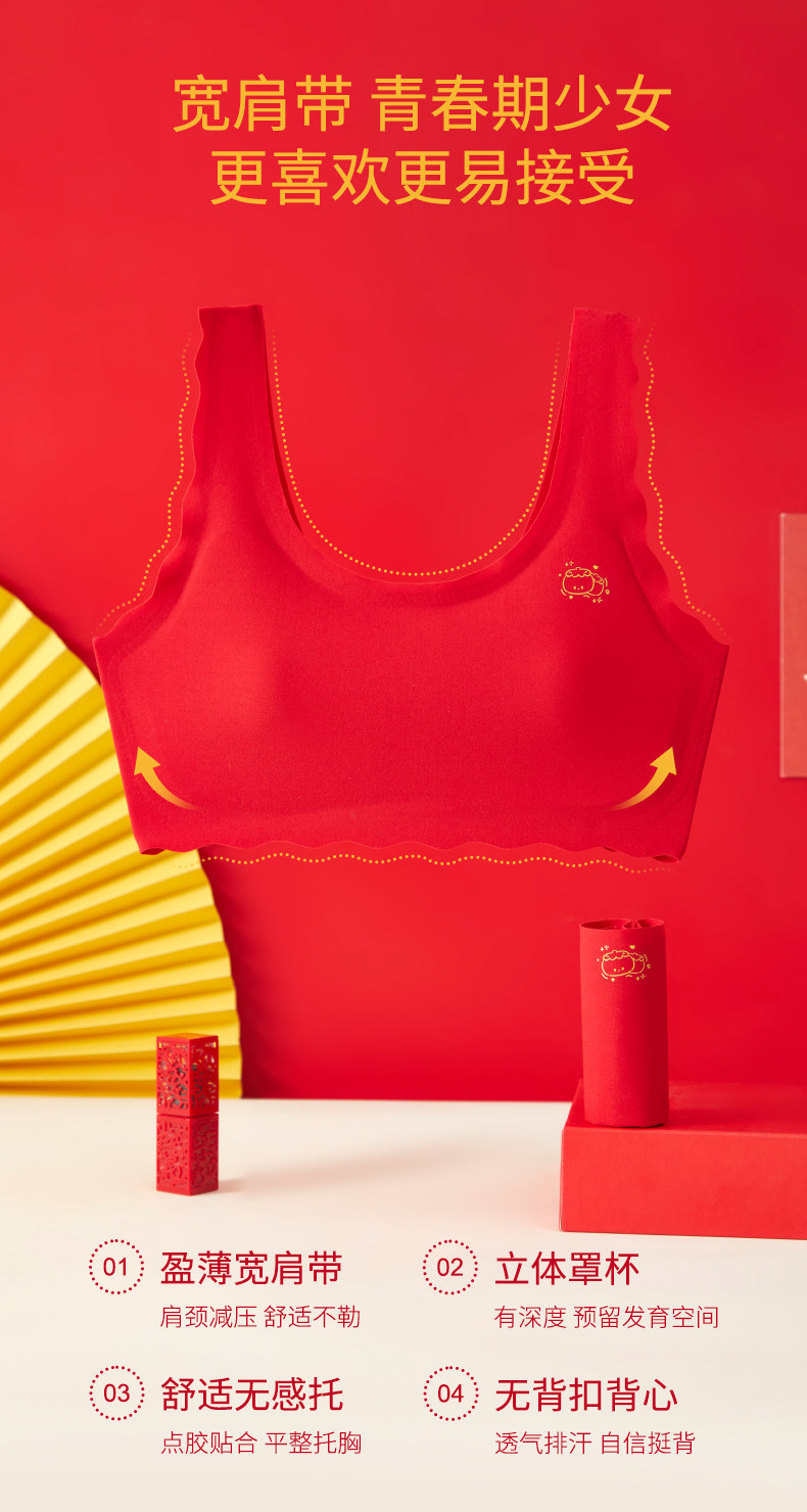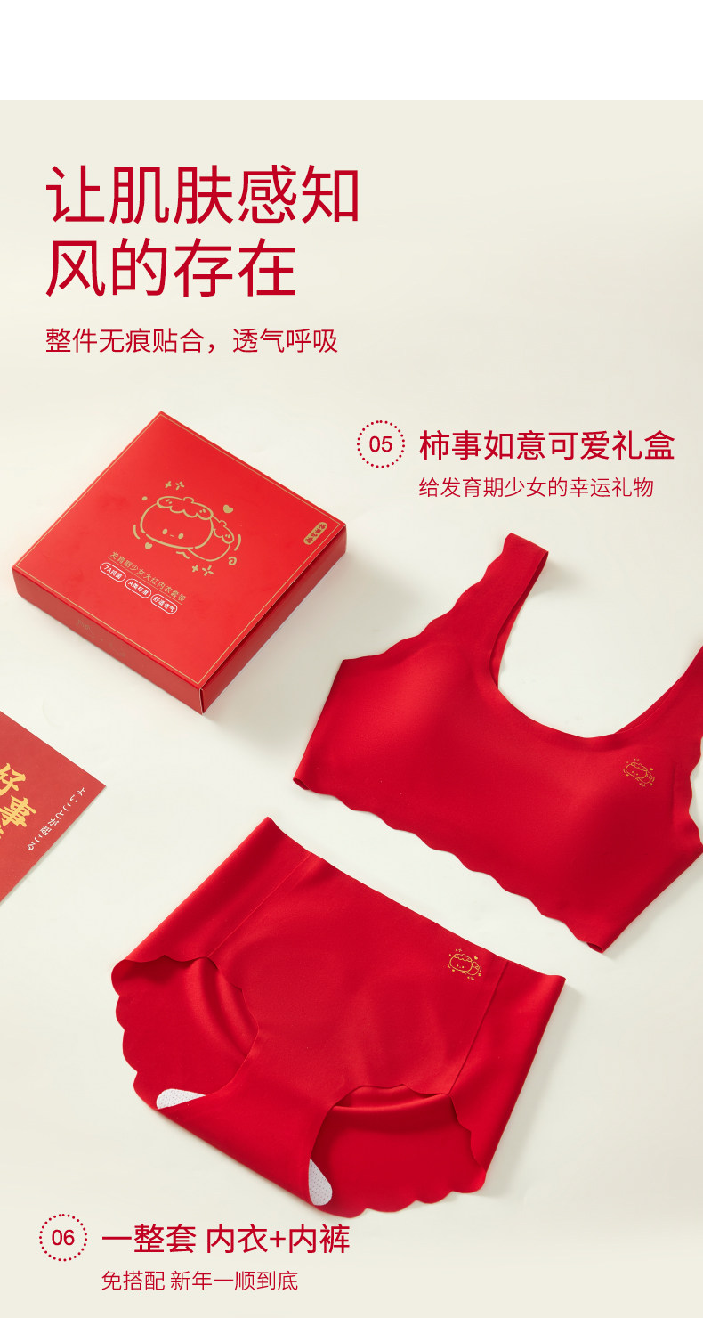 Girls' Red Underwear Set for Their Zodiac Year 2026, Year of the Horse, Children's Development Period Bra and Vest for 12-Year-Old Girls