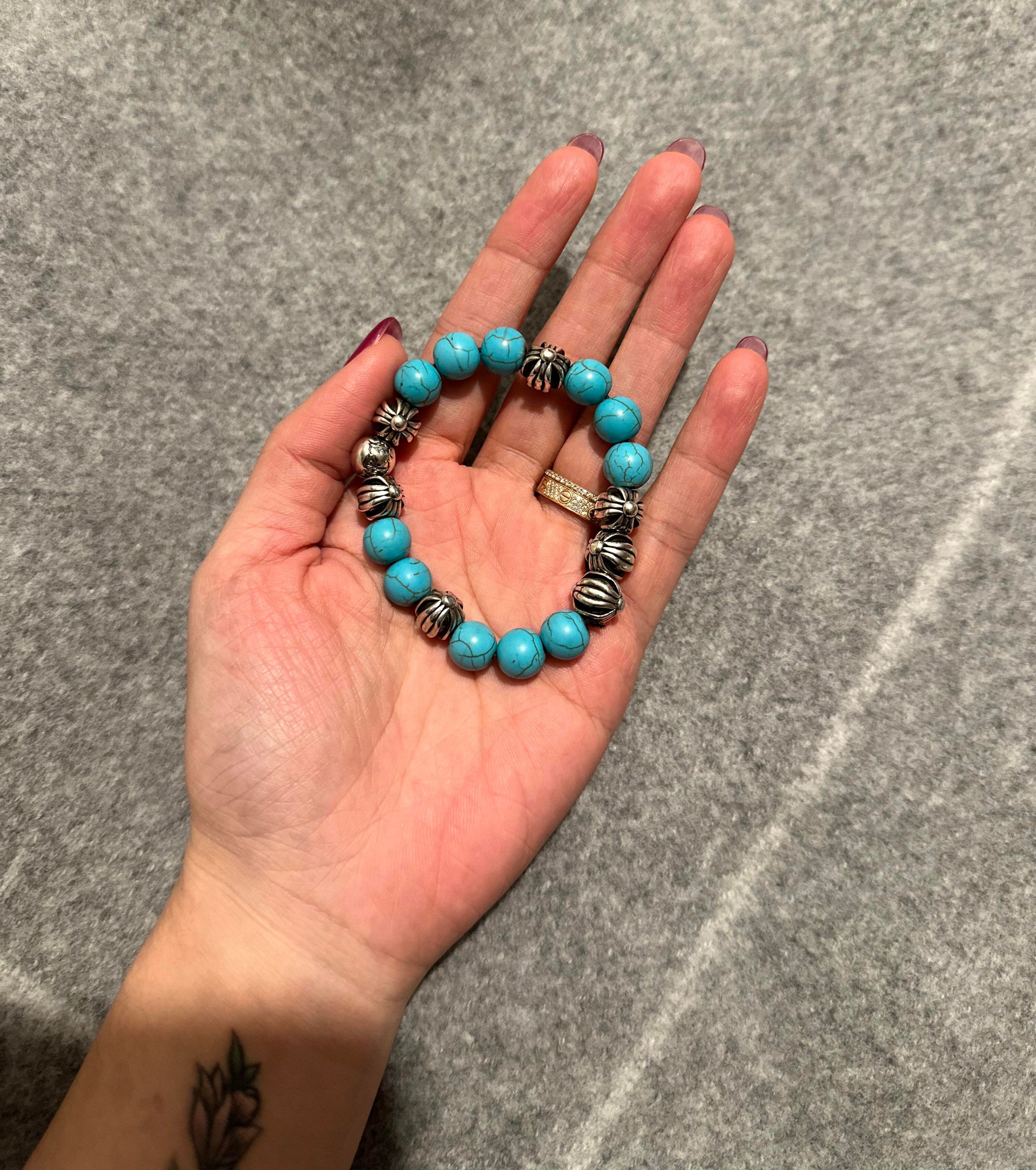 Quan Zhilong Turquoise Bracelet Old Cross Bracelet Tiger Eye Stone Wang Jiaer Sterling Silver Bead Cat's Eye Bracelet for Men