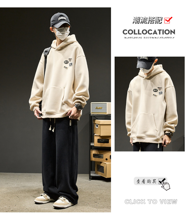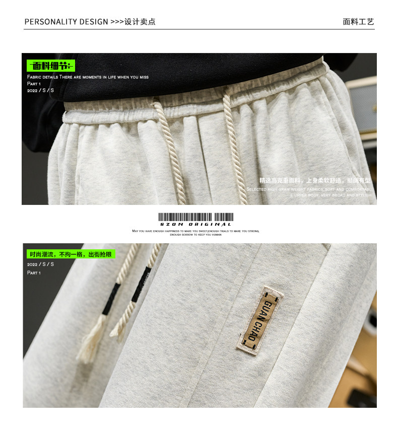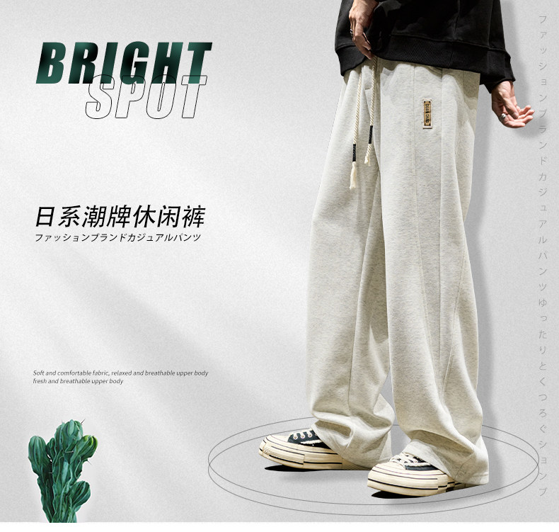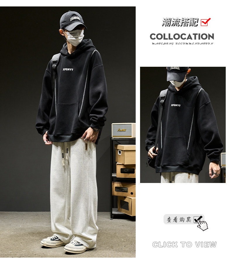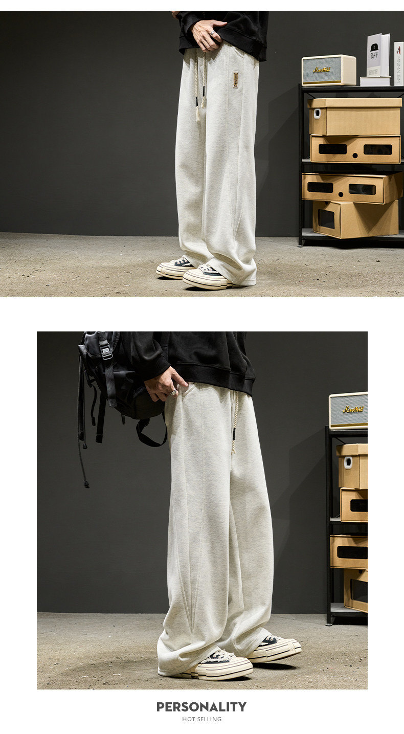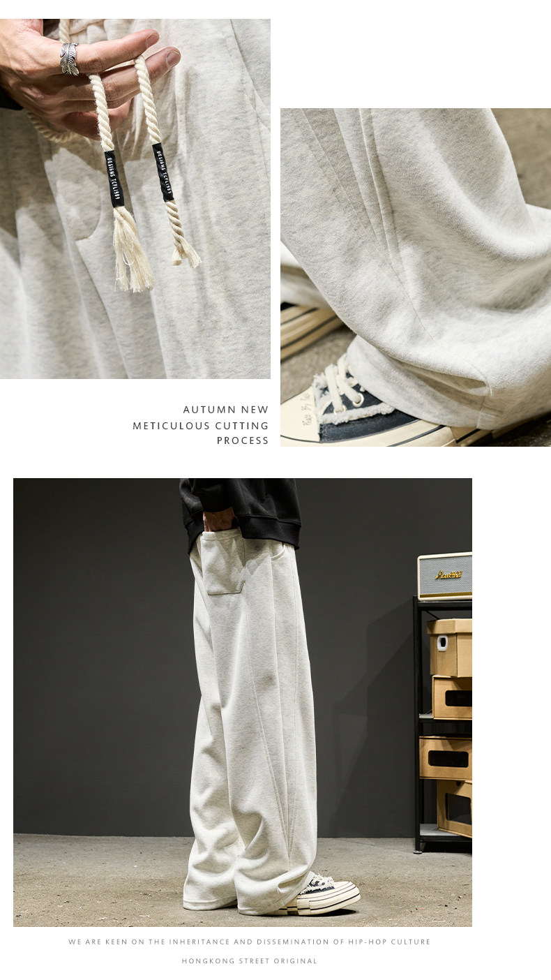 Men's Sweatpants, New Autumn and Winter Style, Fleece-Lined, American Heavy-Duty Patchwork Deconstructed Straight-Leg Pants, Black Loose-Fitting Sports Casual Pants