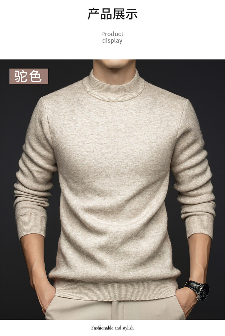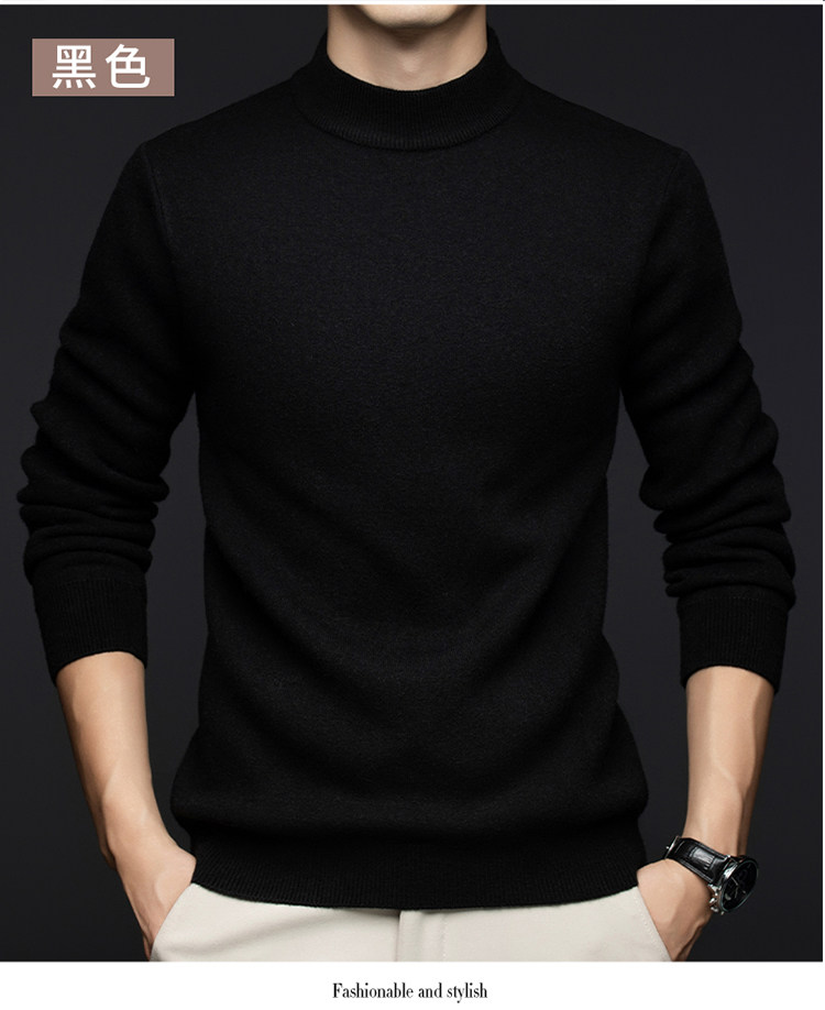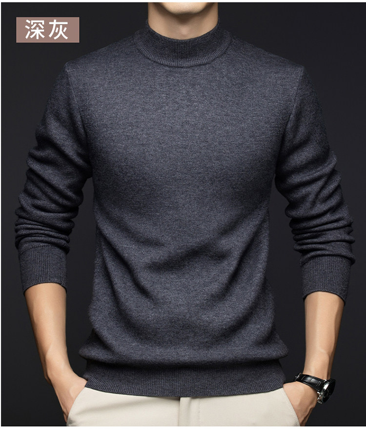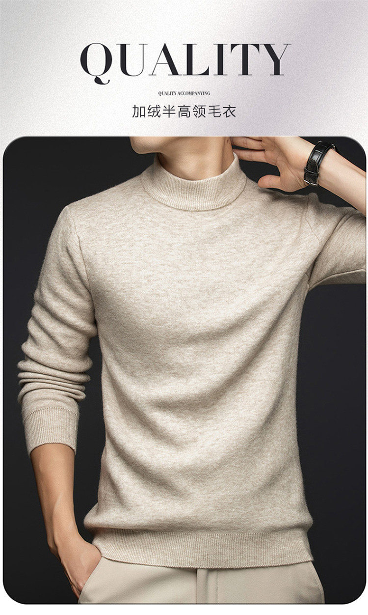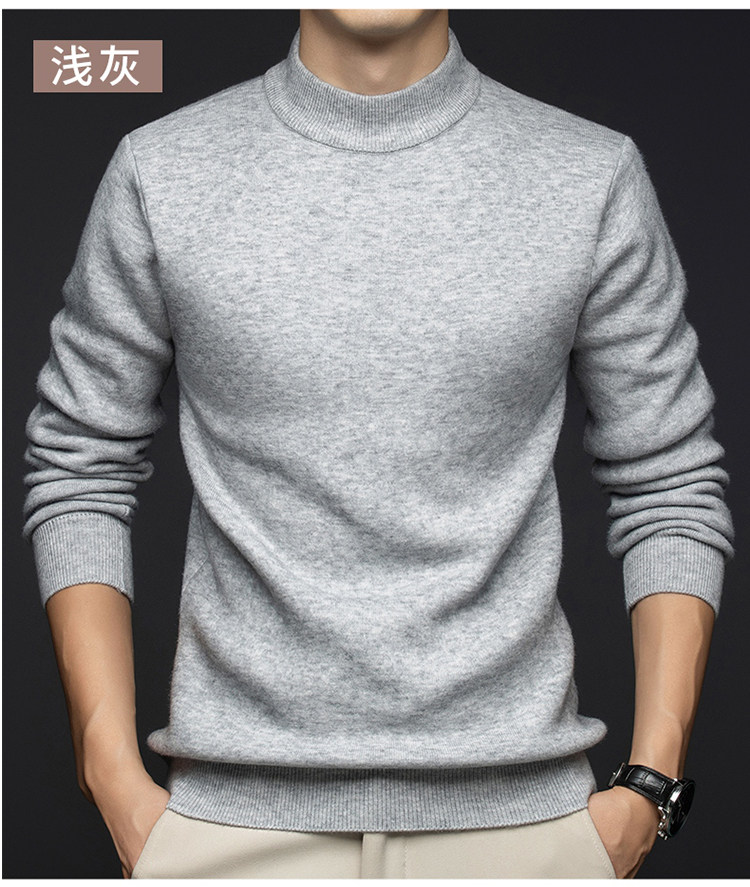 Hengyuanxiang New 100% Pure Cashmere Sweater with Extra Fleece, Extra Thick Integrated Fleece, Half Turtleneck Base Layer Wool Sweater for Men