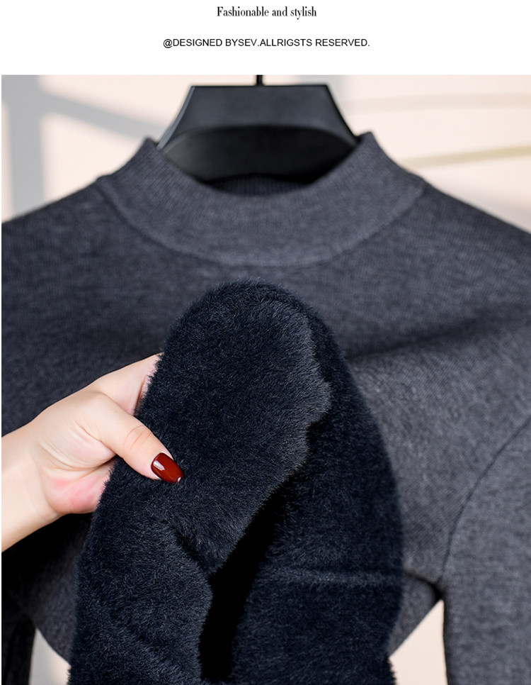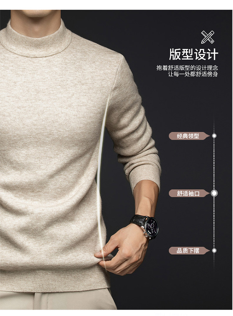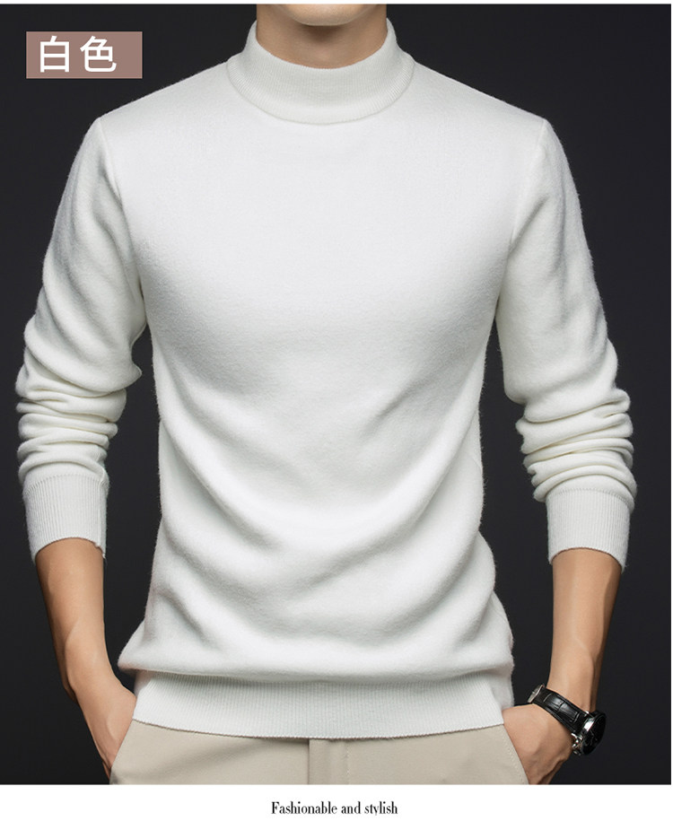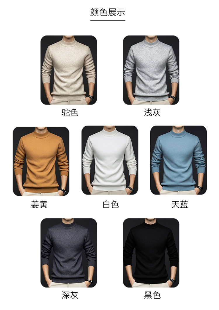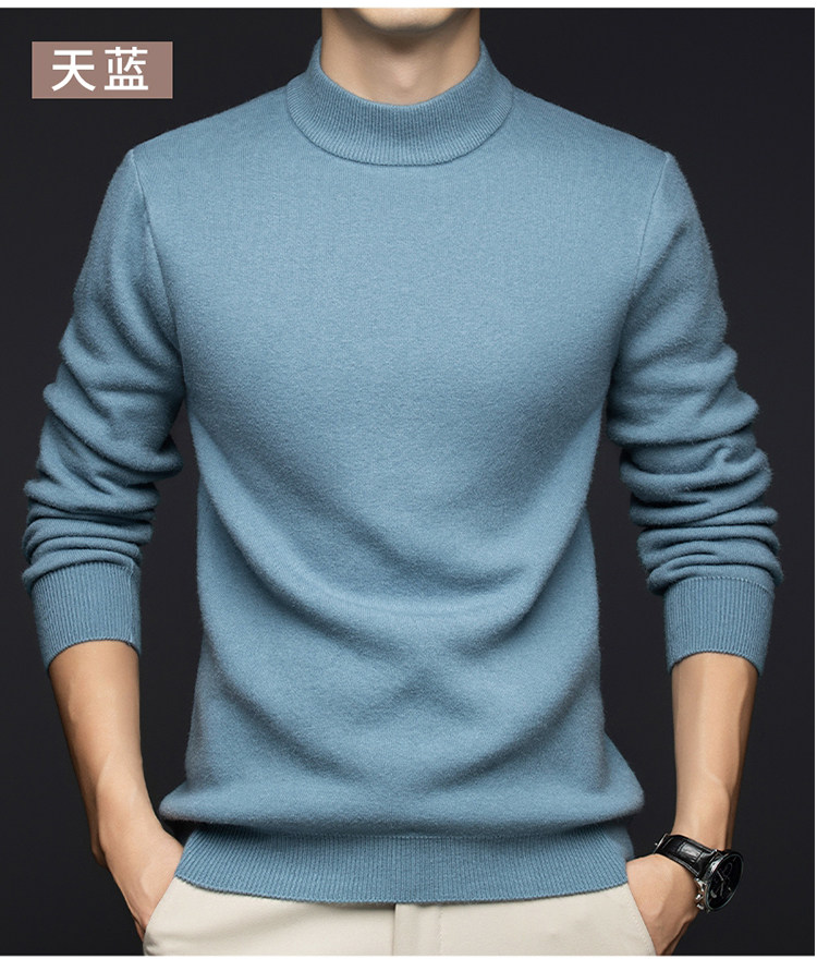 Hengyuanxiang New 100% Pure Cashmere Sweater with Extra Fleece, Extra Thick Integrated Fleece, Half Turtleneck Base Layer Wool Sweater for Men