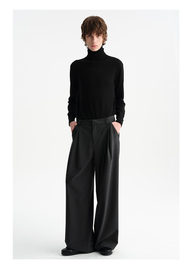 Fllm High-End Drapey Double-Pleated Dress Pants Versatile Straight-Leg Loose Casual Pants
