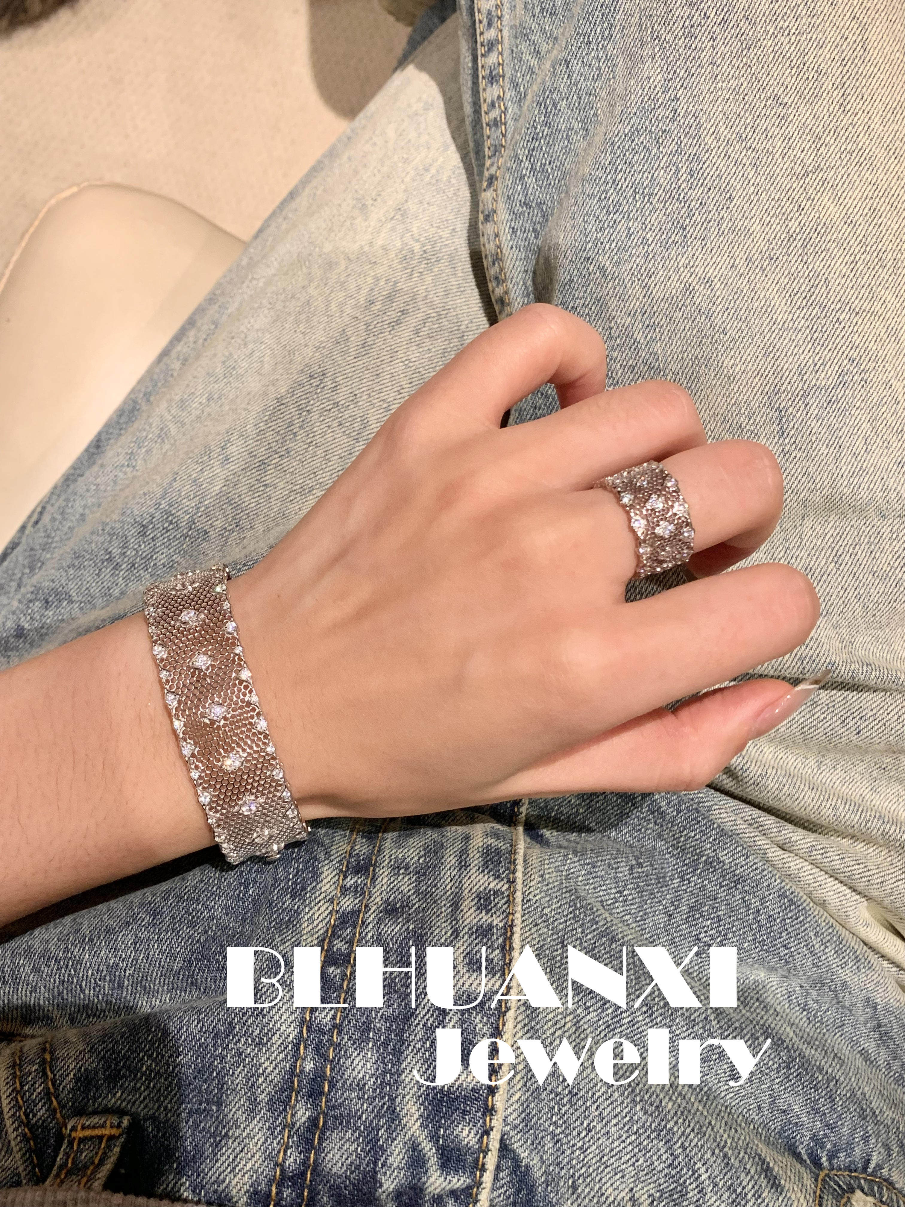 【Look for Joy】925 Silver Gold-Plated Tulle Craftsmanship Wide Lace Haute Couture Fabric with Handmade Honeycomb Pattern