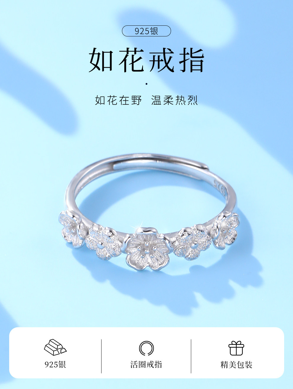 Old Silversmith S925 Silver Ring for Women, Small Flower, Light Luxury, Niche Design, Pure Silver Women's Ring, Gift for Girlfriend, Gift for Best Friend
