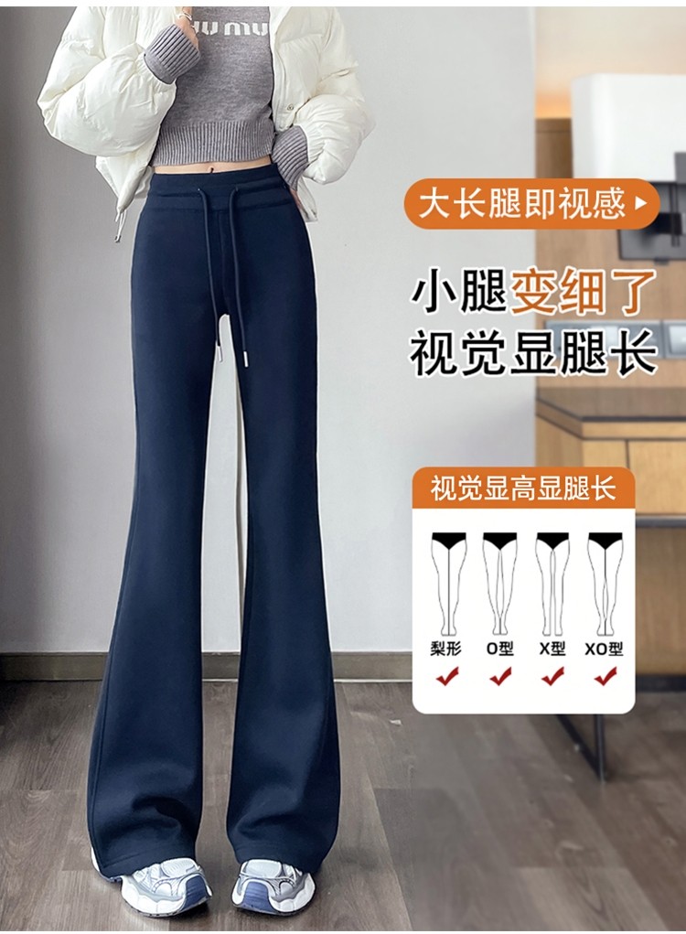 Black Flared Pants for Women, Autumn and Winter, Fleece-Lined, High-Waisted, Slimming, Tall, Flared Bootcut Pants, Casual Sports Sweatpants