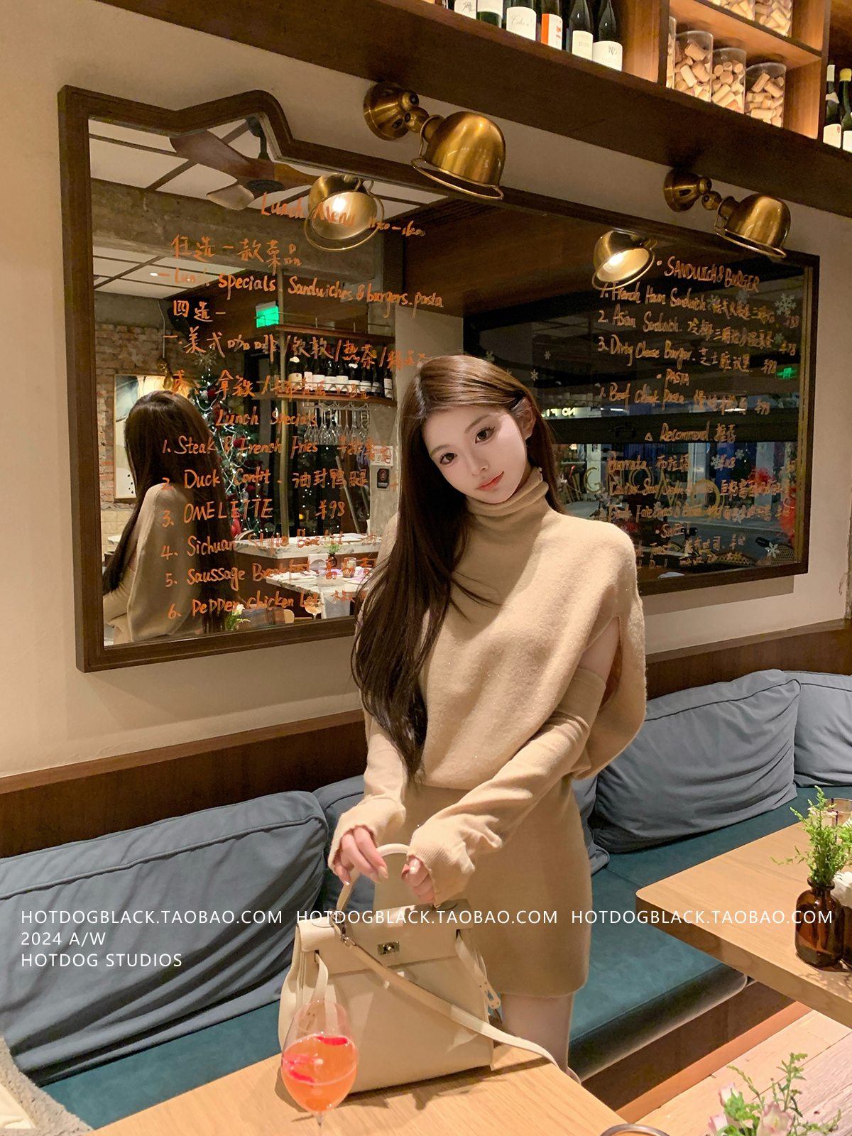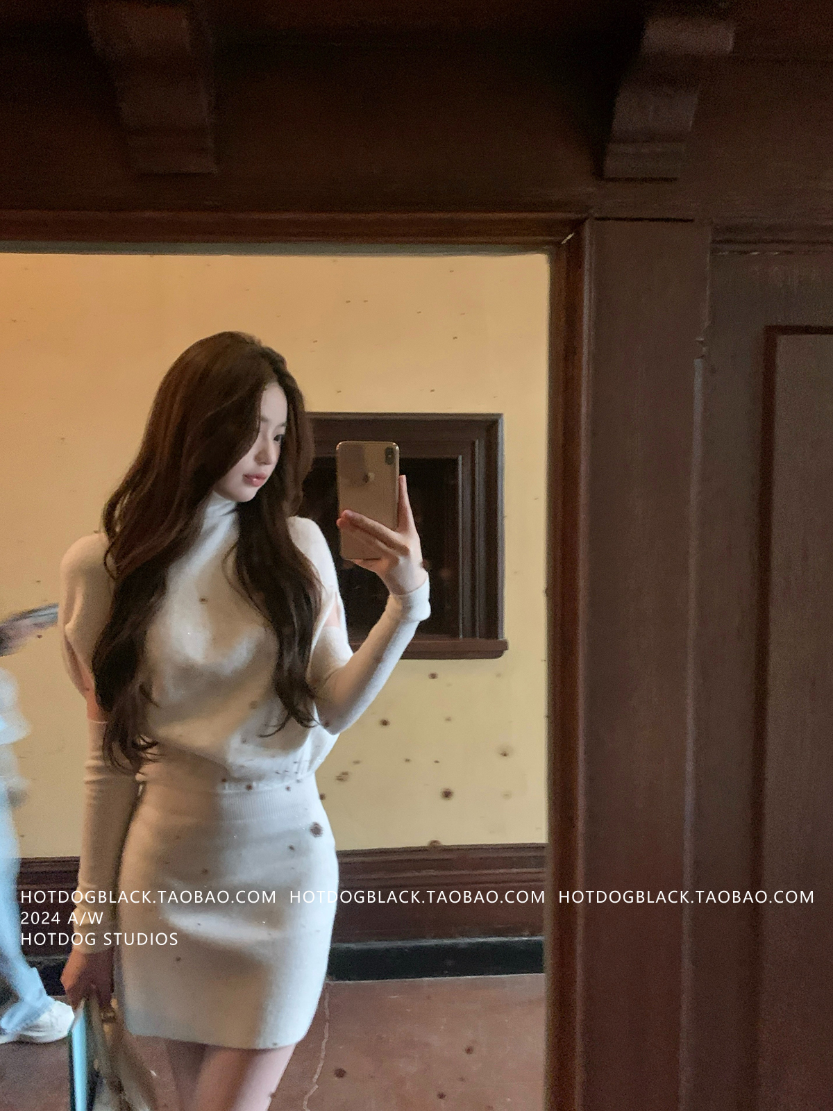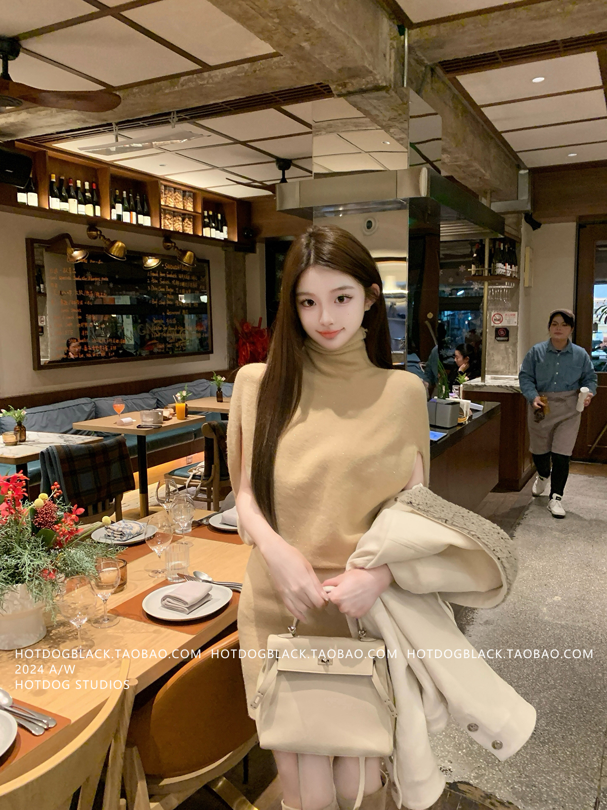 Hotdog Is Very Spicy [Korean Style Sister] High-Neck Cape Knit Dress + Sleeveless Bodycon Mini Skirt