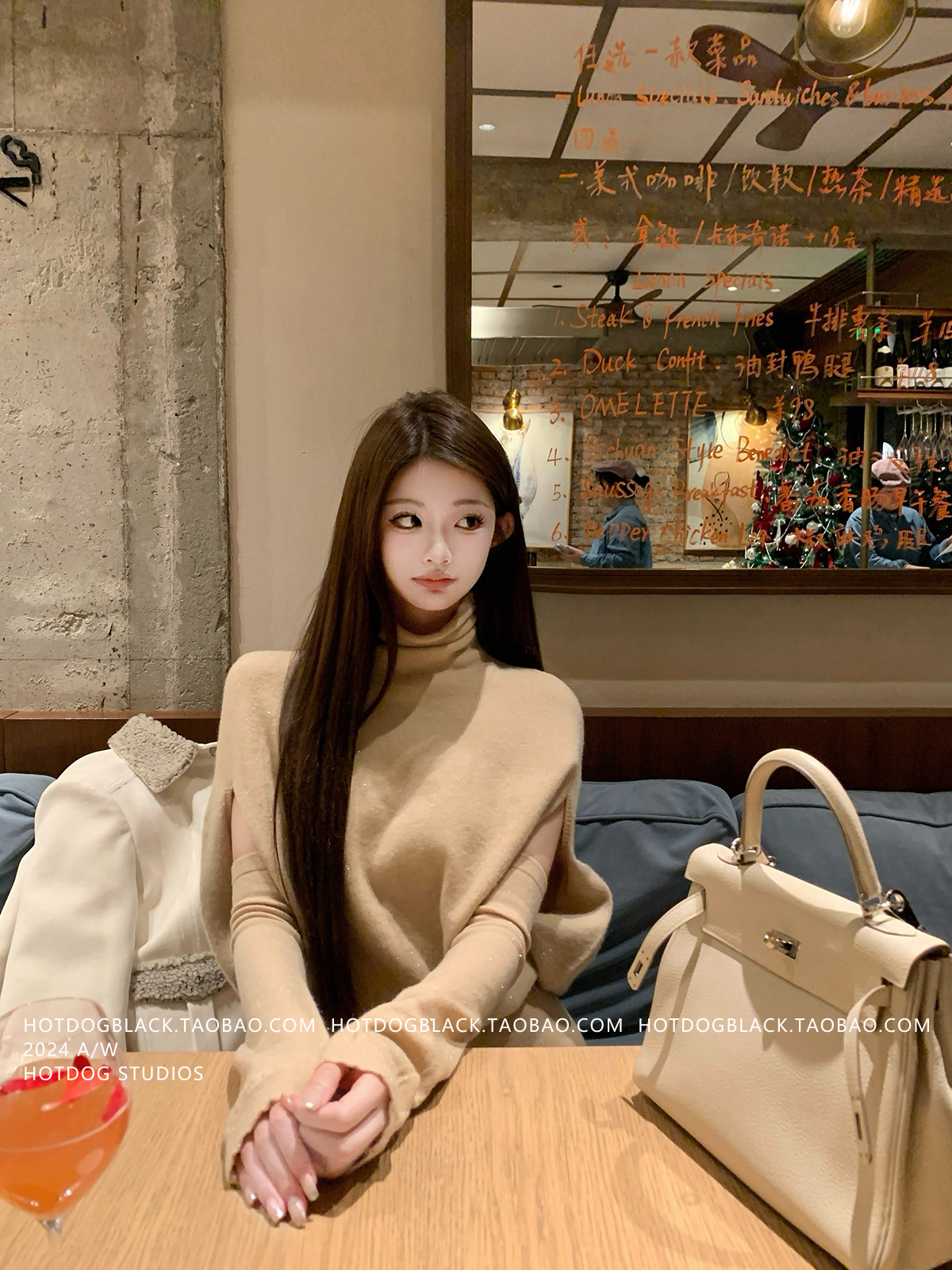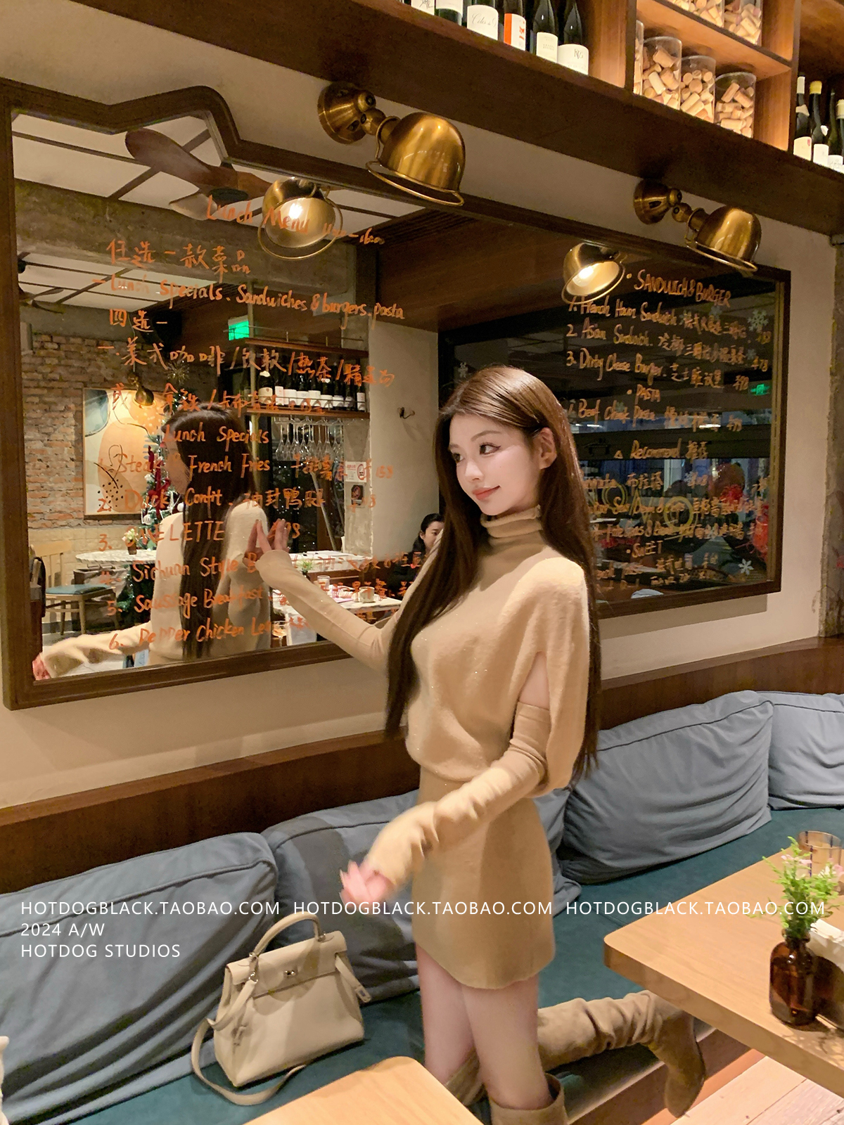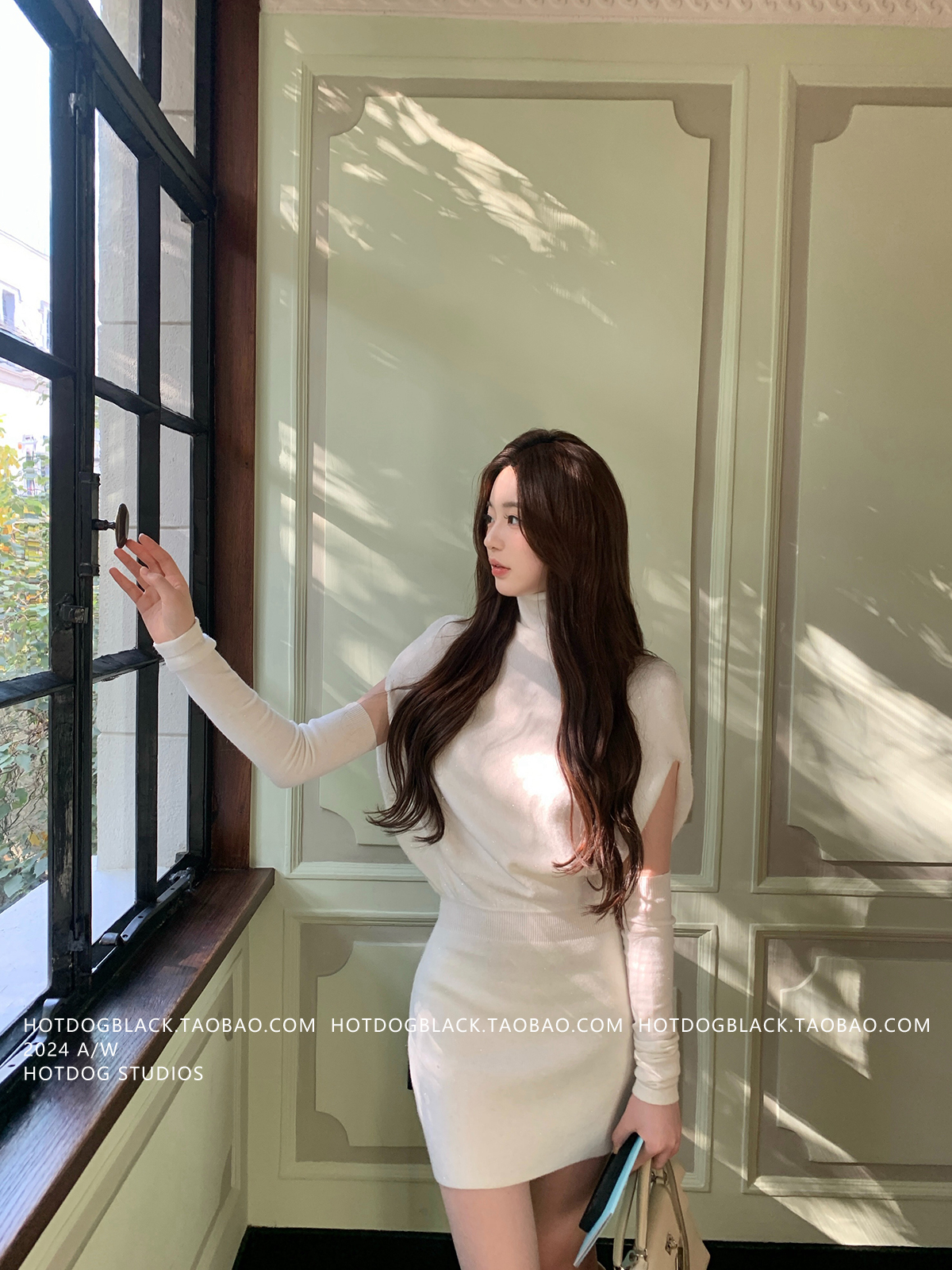 Hotdog Is Very Spicy [Korean Style Sister] High-Neck Cape Knit Dress + Sleeveless Bodycon Mini Skirt
