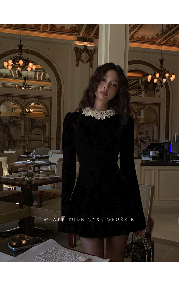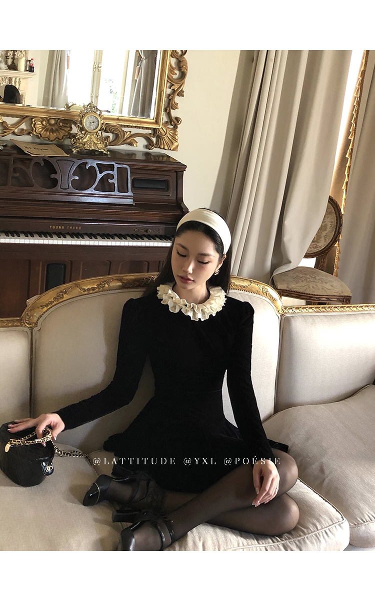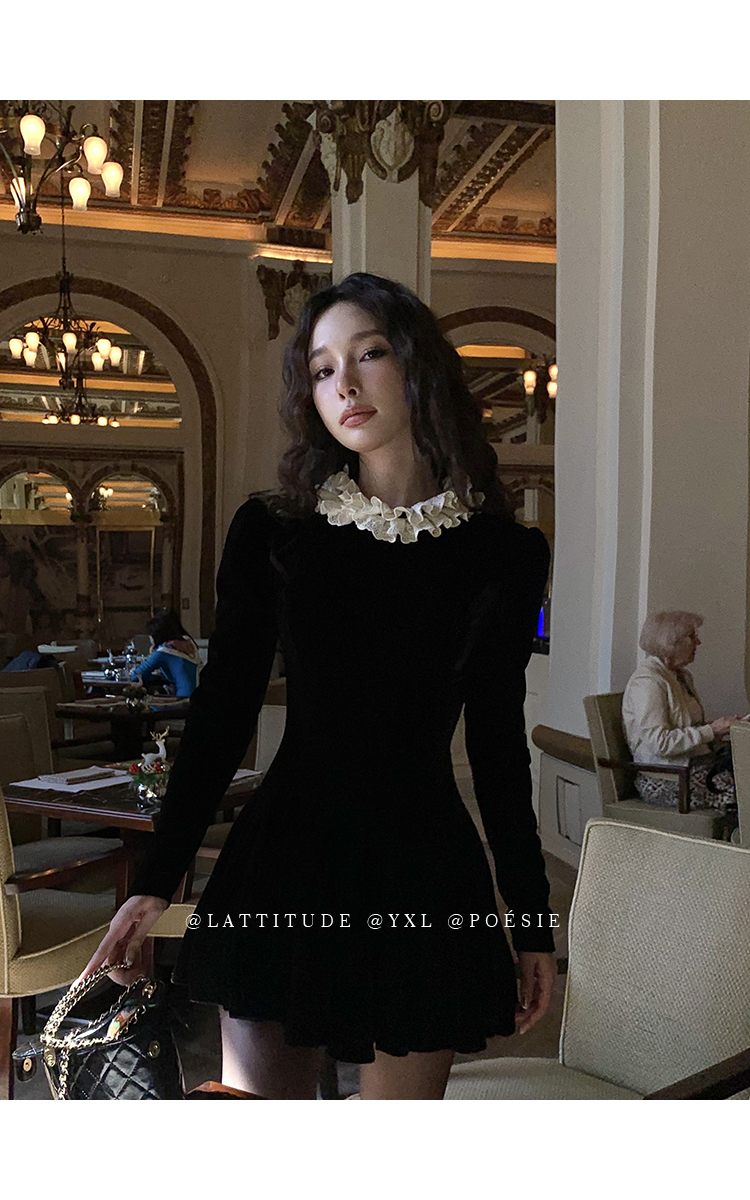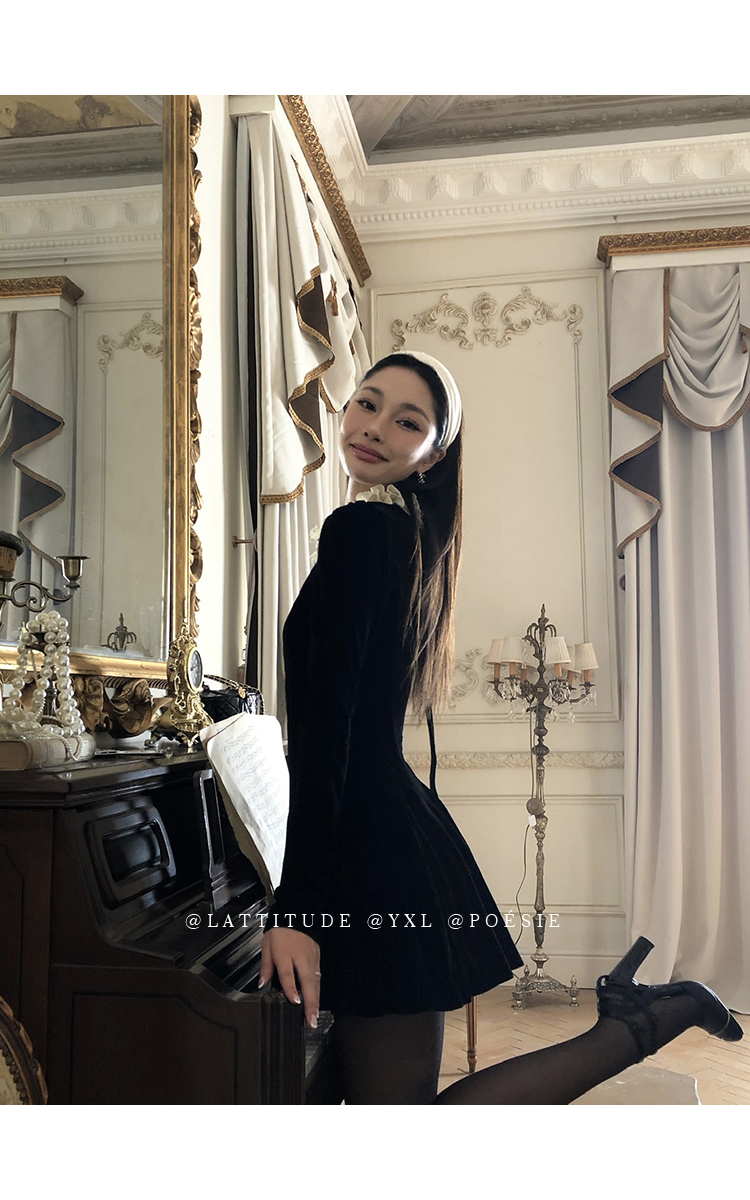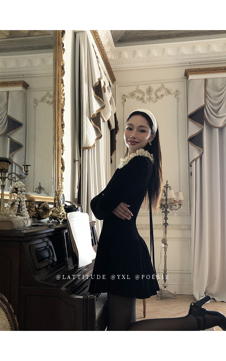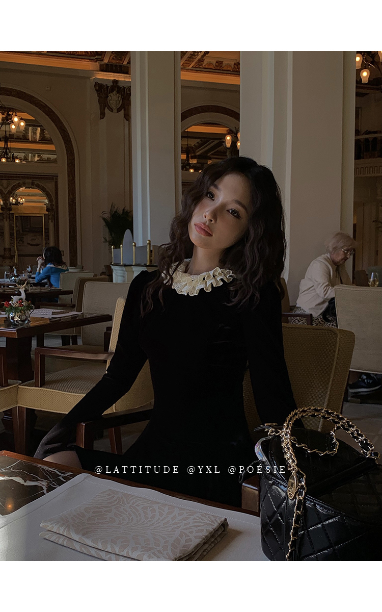 Lattitude Yang Xiaolu Di*R Lady Vintage Lace Collar Velvet French Long-Sleeved Dress for Women