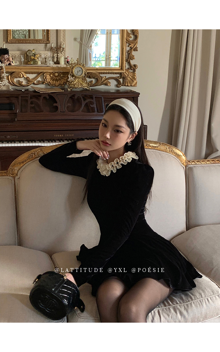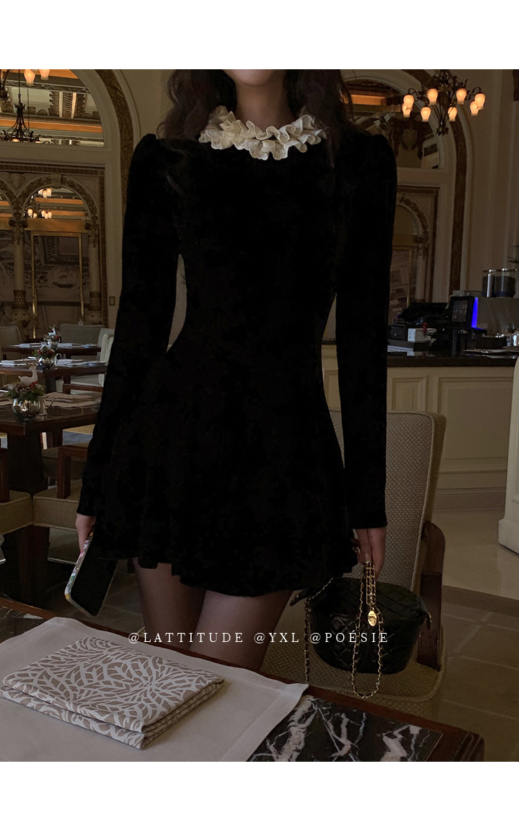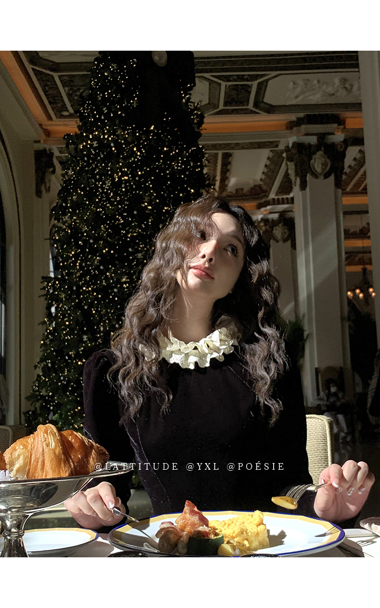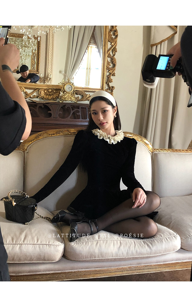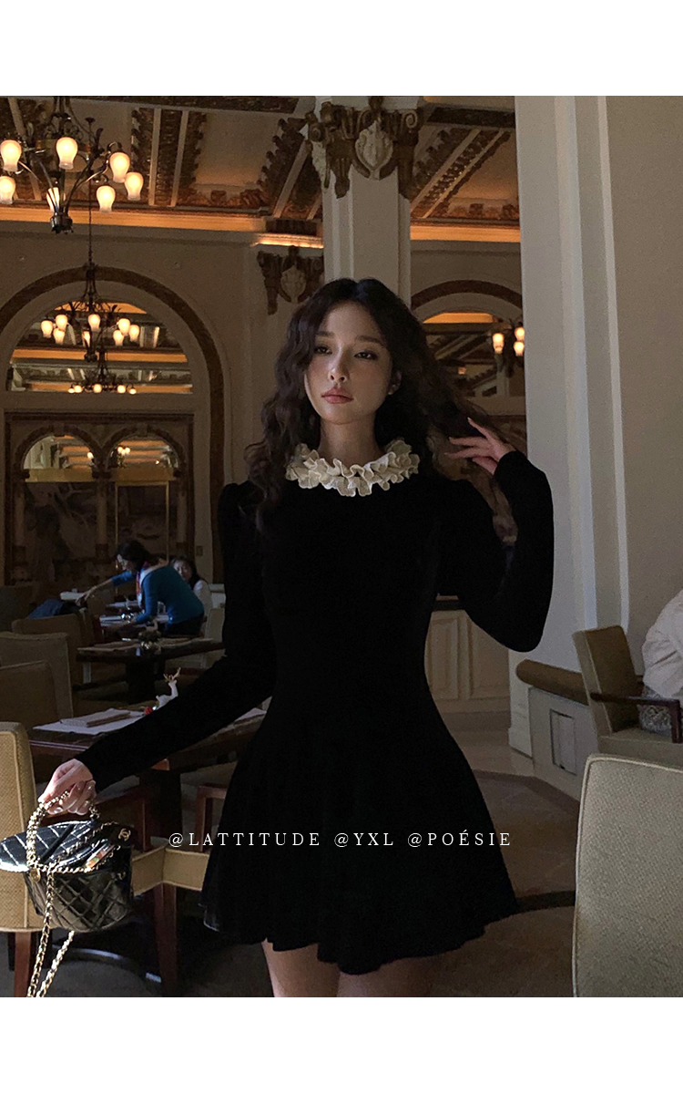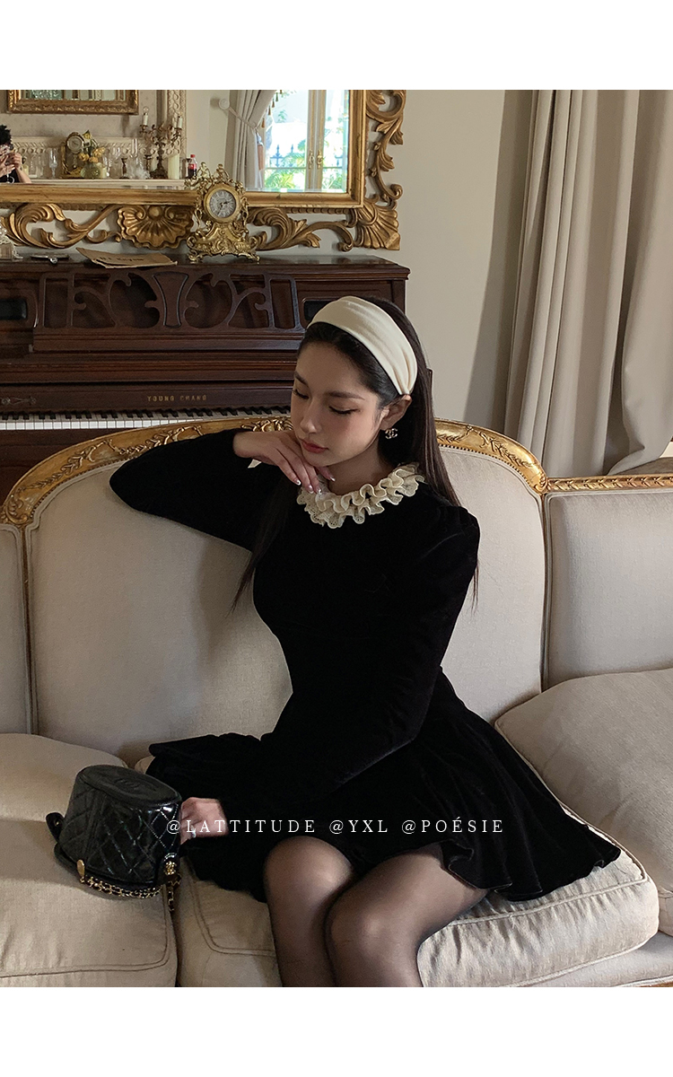Lattitude Yang Xiaolu Di*R Lady Vintage Lace Collar Velvet French Long-Sleeved Dress for Women