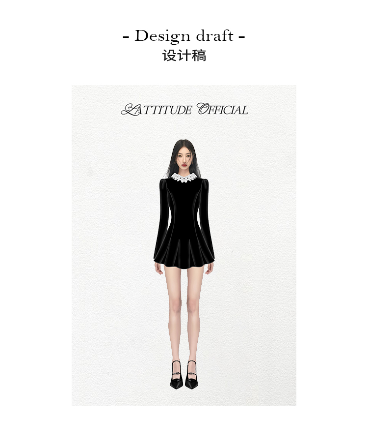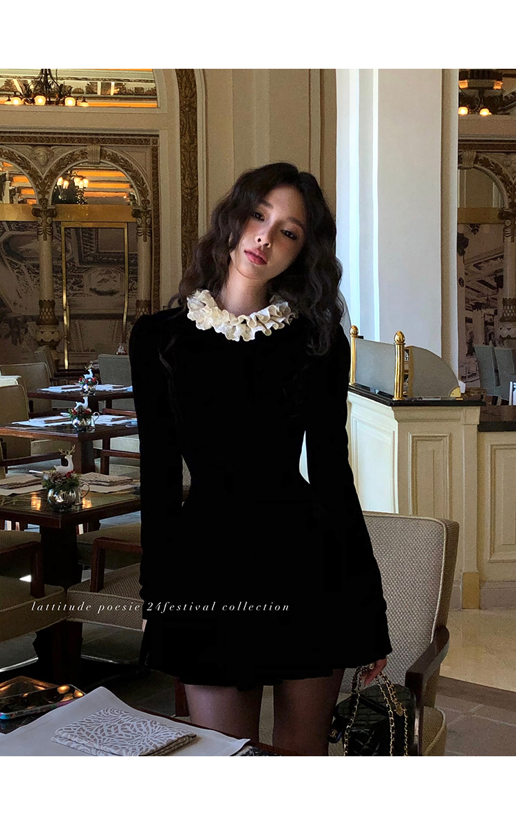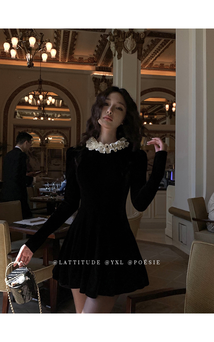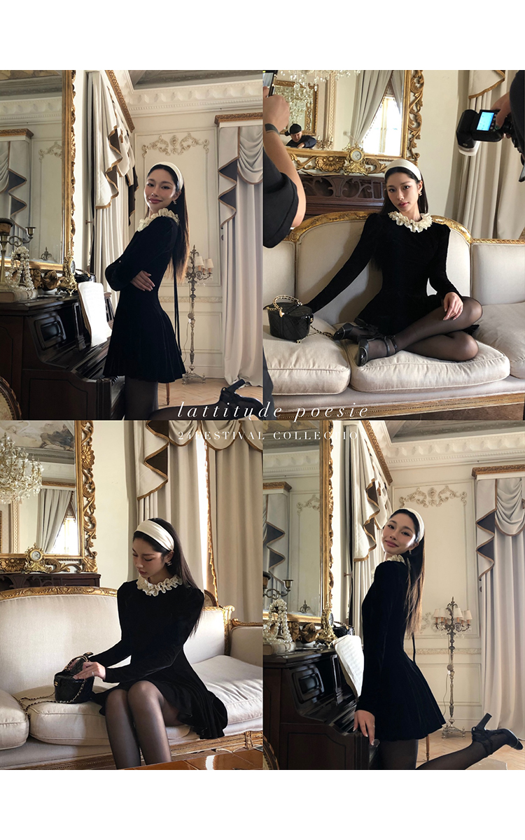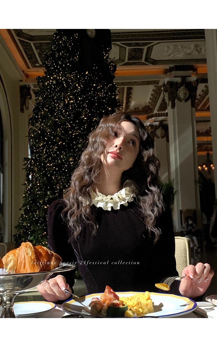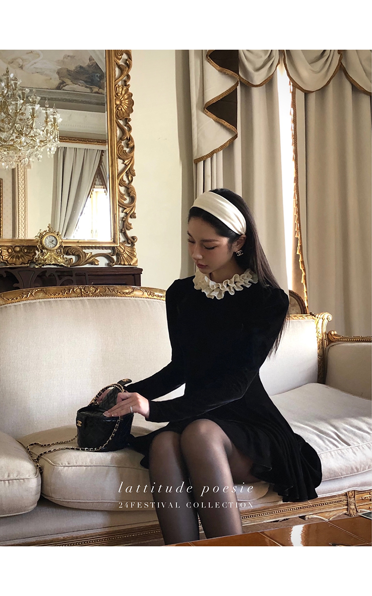 Lattitude Yang Xiaolu Di*R Lady Vintage Lace Collar Velvet French Long-Sleeved Dress for Women