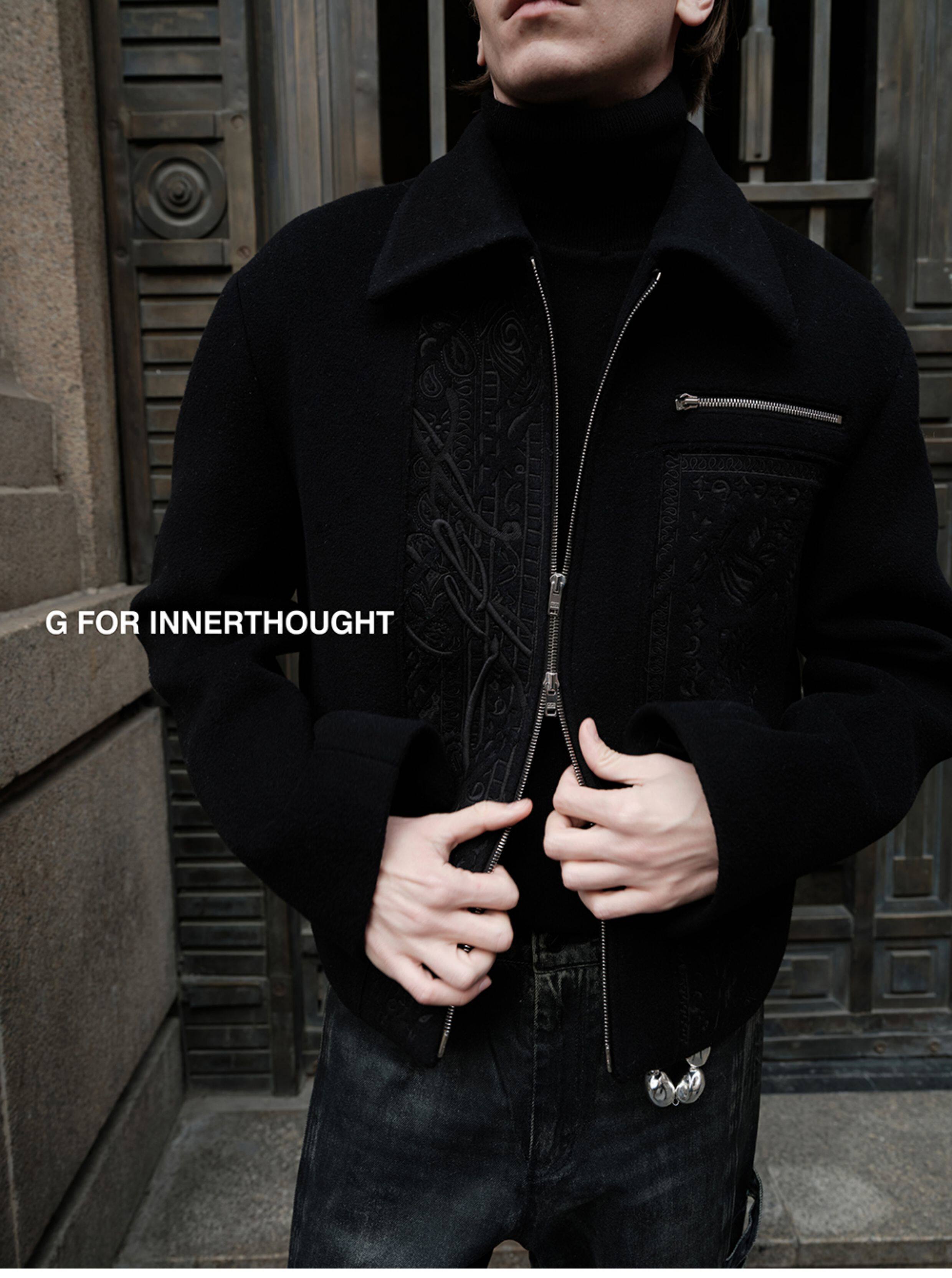 G for Innerthought Three-Dimensional Needlework Cashmere Wool Sheep Wool Lining Woolen Jacket Coat