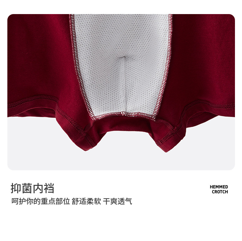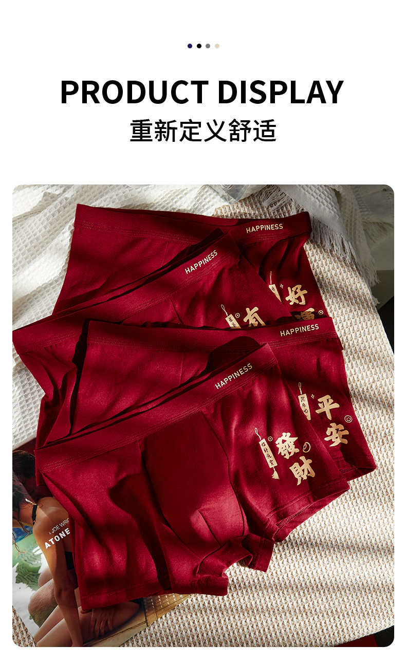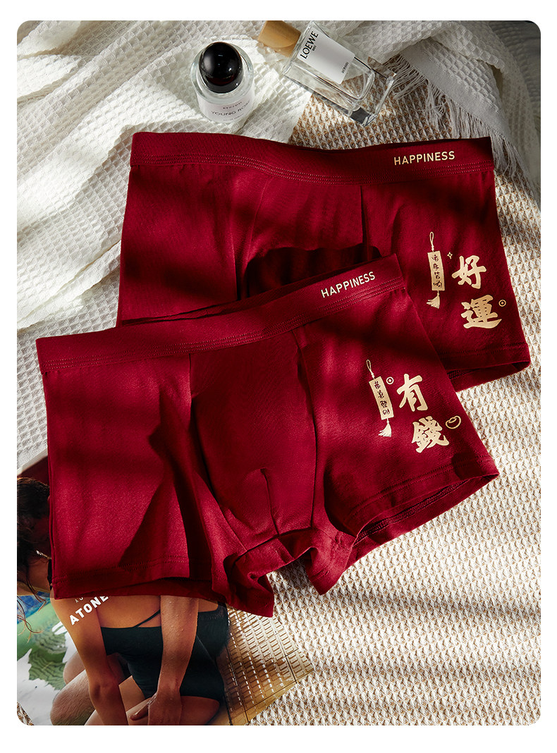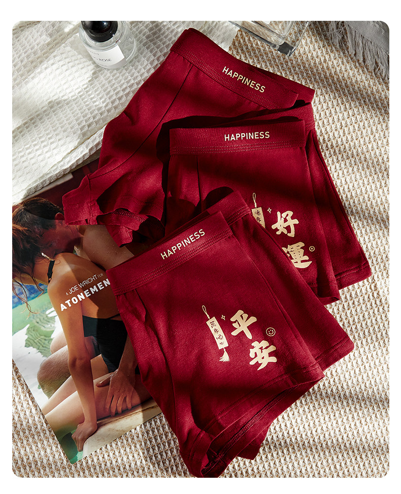 2026 Zodiac Year Men's Underwear Pure Cotton Breathable Boxer Briefs Youth Wedding Wine Red Festive Four-Corner Good Luck Shorts
