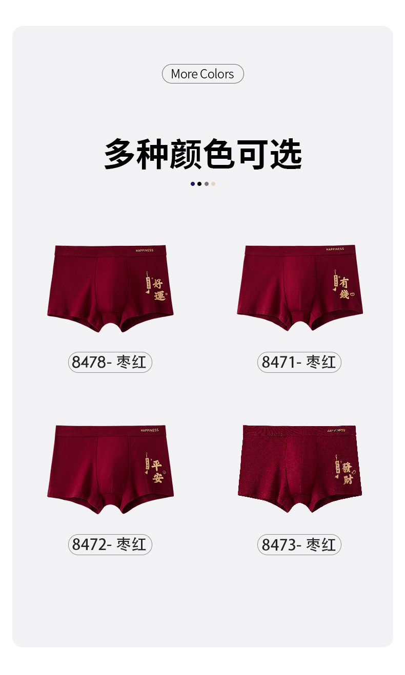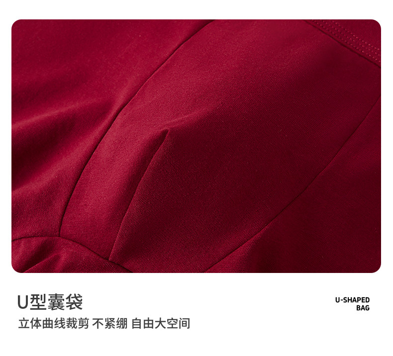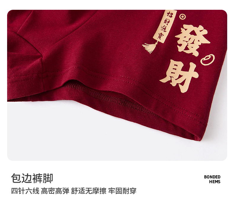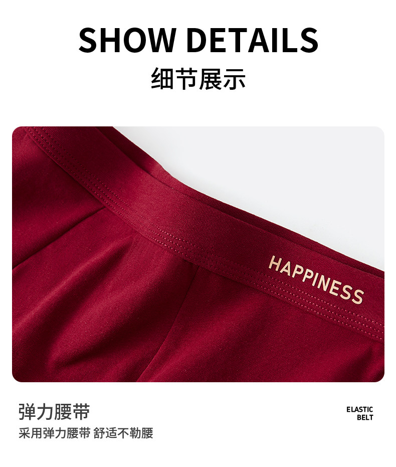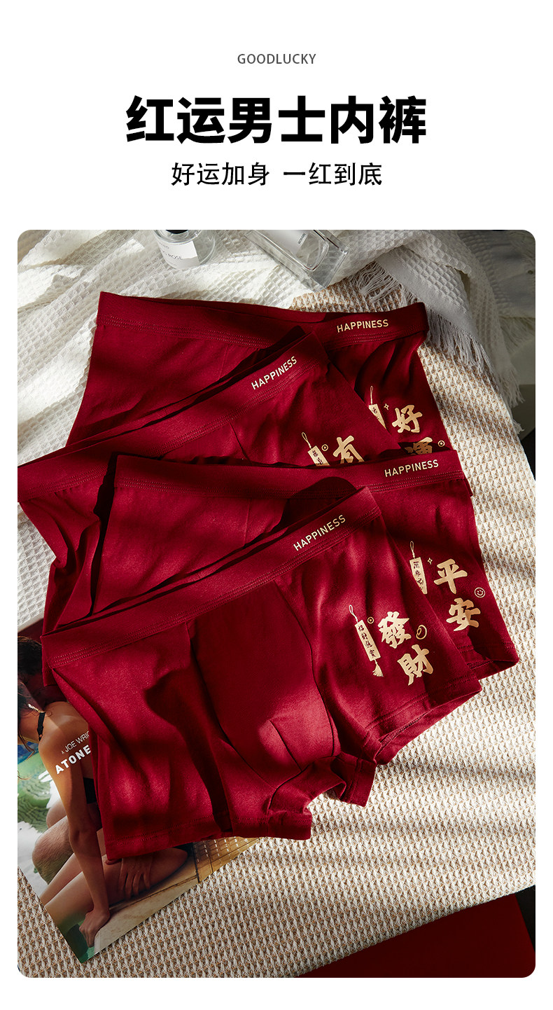 2026 Zodiac Year Men's Underwear Pure Cotton Breathable Boxer Briefs Youth Wedding Wine Red Festive Four-Corner Good Luck Shorts