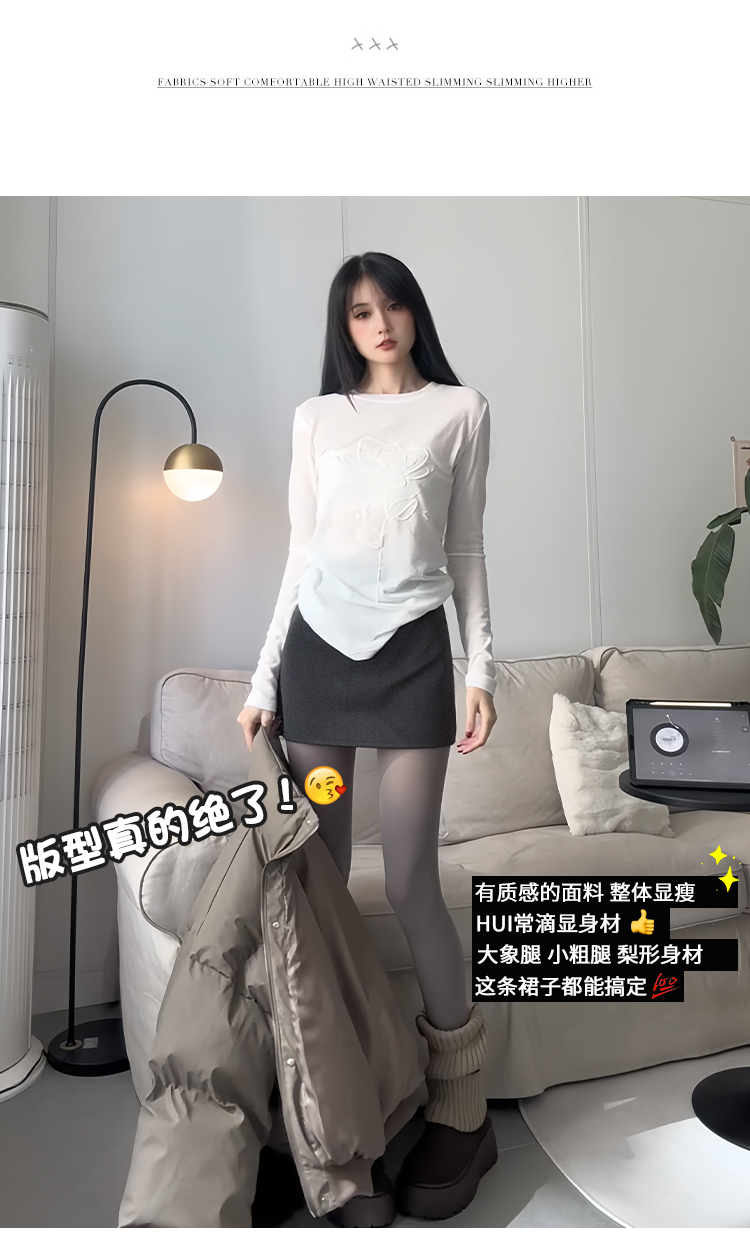 Grey woolen Skirt Women's Spring and Autumn 2025 New arrival high waist Slim Looking Small thickened a-shaped Hip Skirt