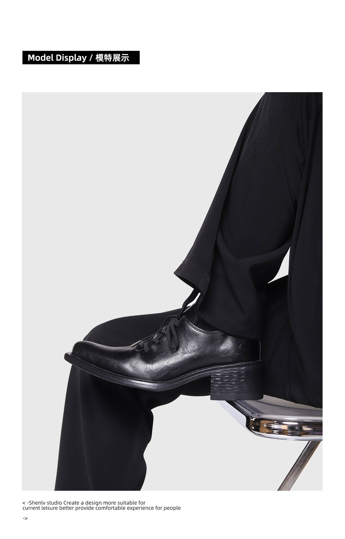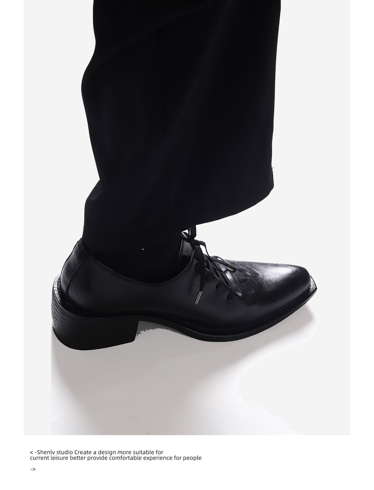Shenlv Studio Pointed-Toe High-Heeled Leather Shoes for Men, Designer Niche, Elegant and Retro, Height-Increasing Derby Shoes