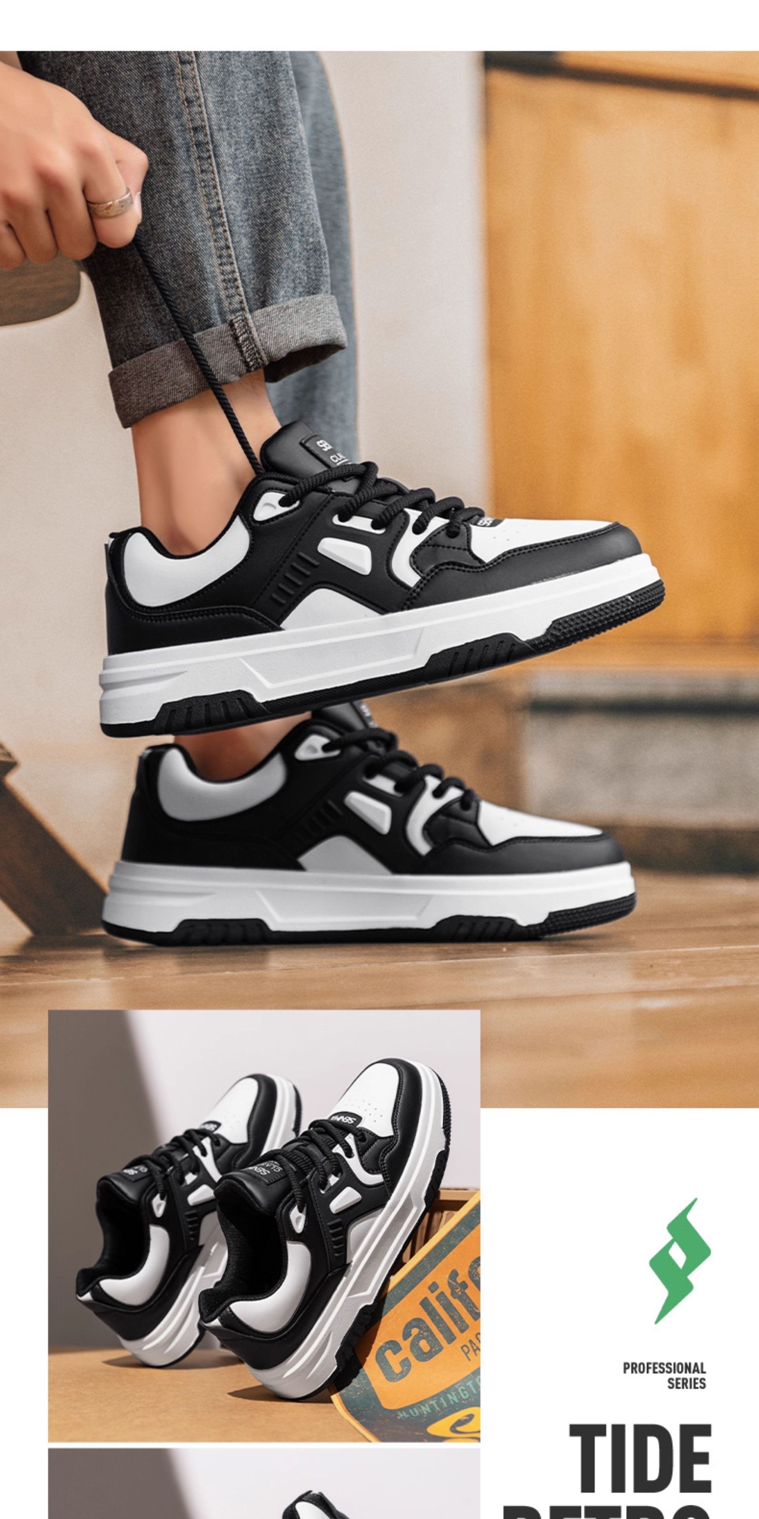 Semir Men's Shoes Winter Trendy Versatile Sports Casual Black and White Panda Sneakers Thick-Soled Height-Increasing White Trendy Shoes