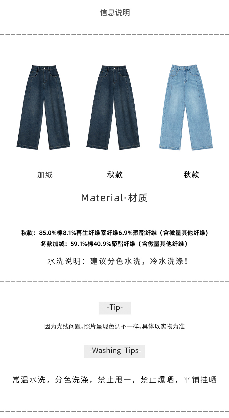 Faesslin【Original Long Legs】Fleece-Lined Straight-Leg Jeans for Women, Autumn and Winter, Thickened and Lengthened, Floor-Length Wide-Leg Pants