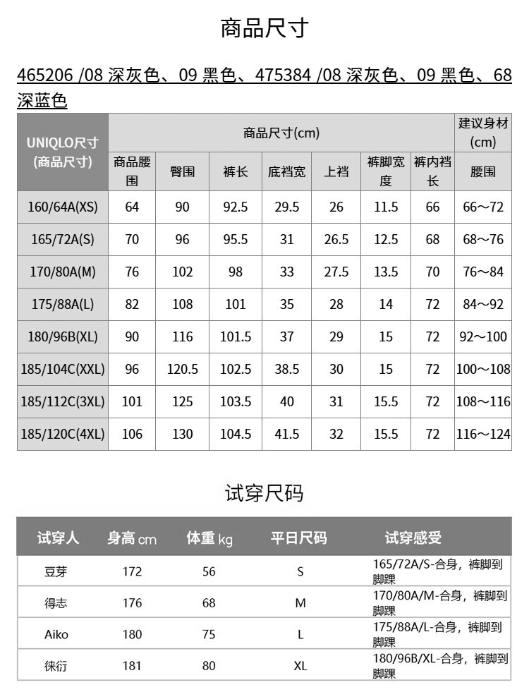Uniqlo Men's and Women's Dry-Ex Quick-Drying High-Elasticity Sports Pants with Cuffs Regular Style 475384 465206