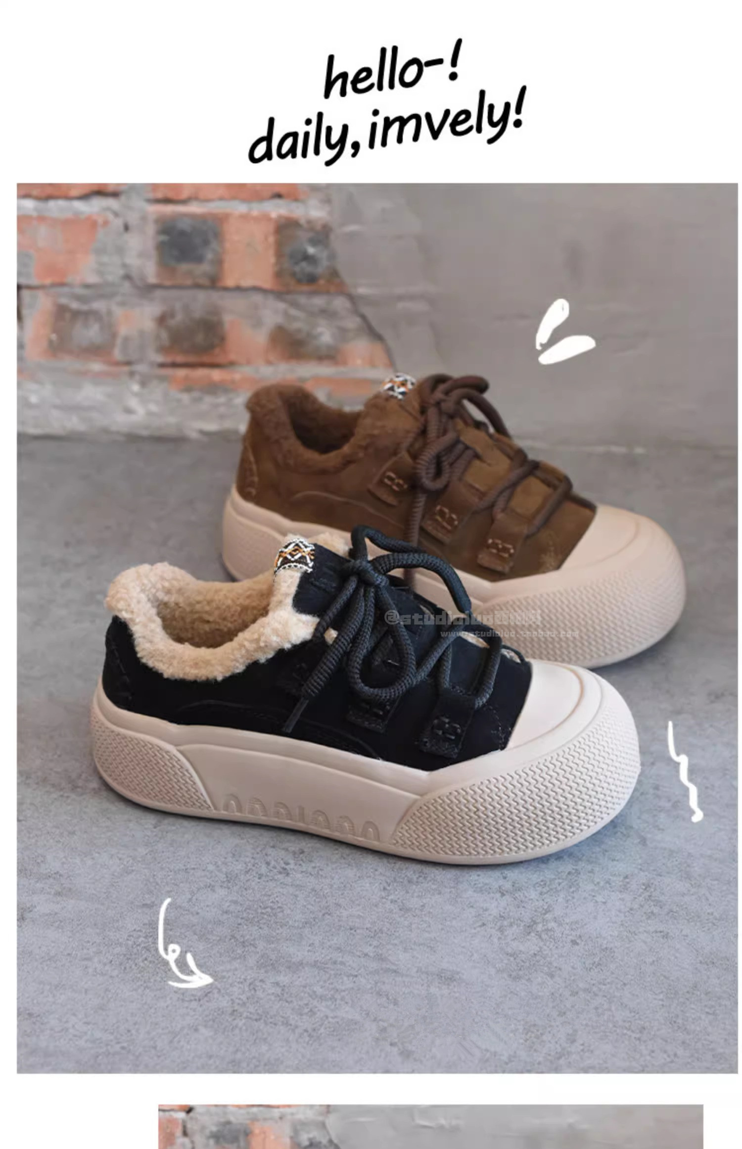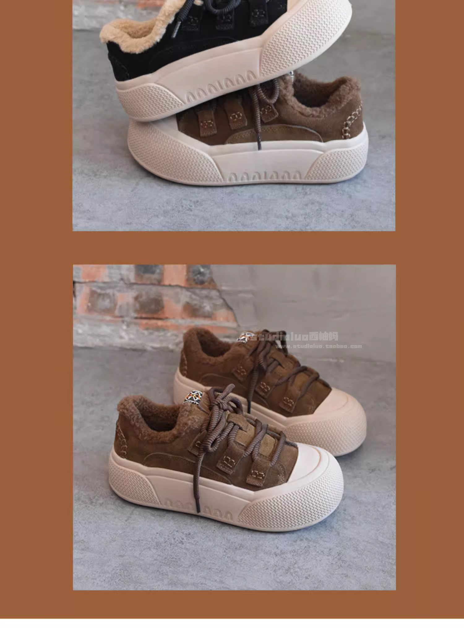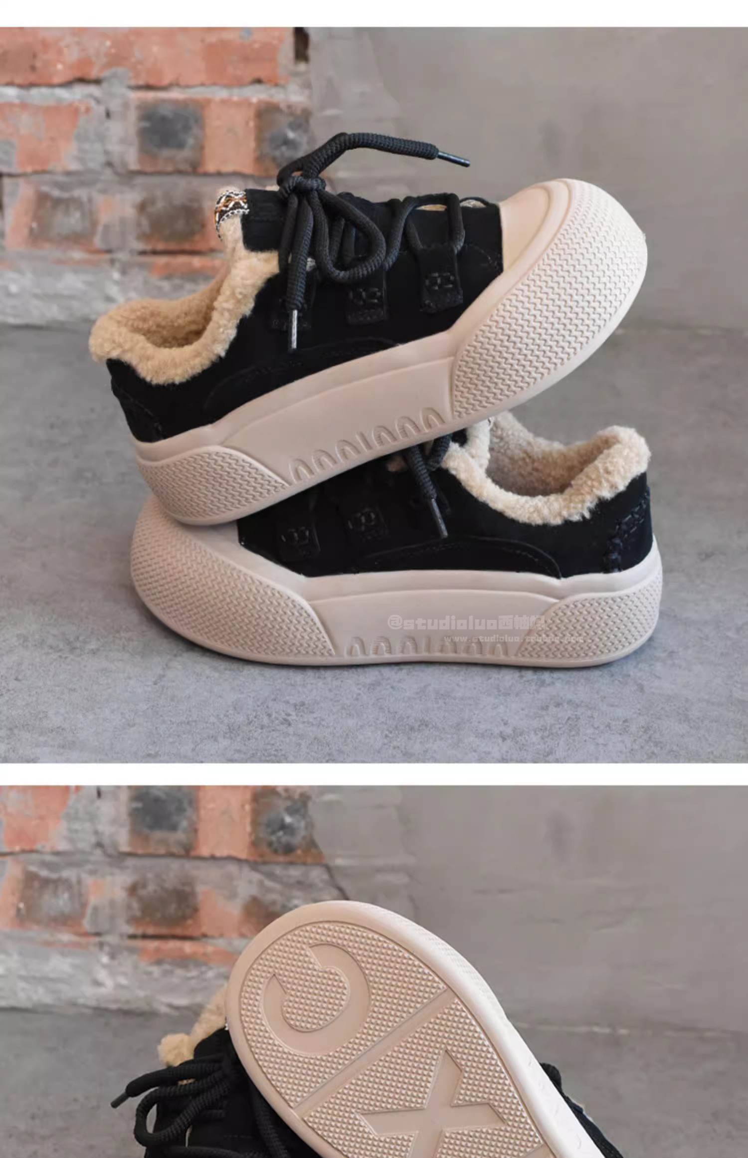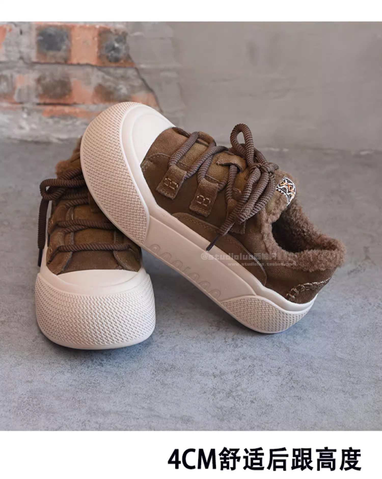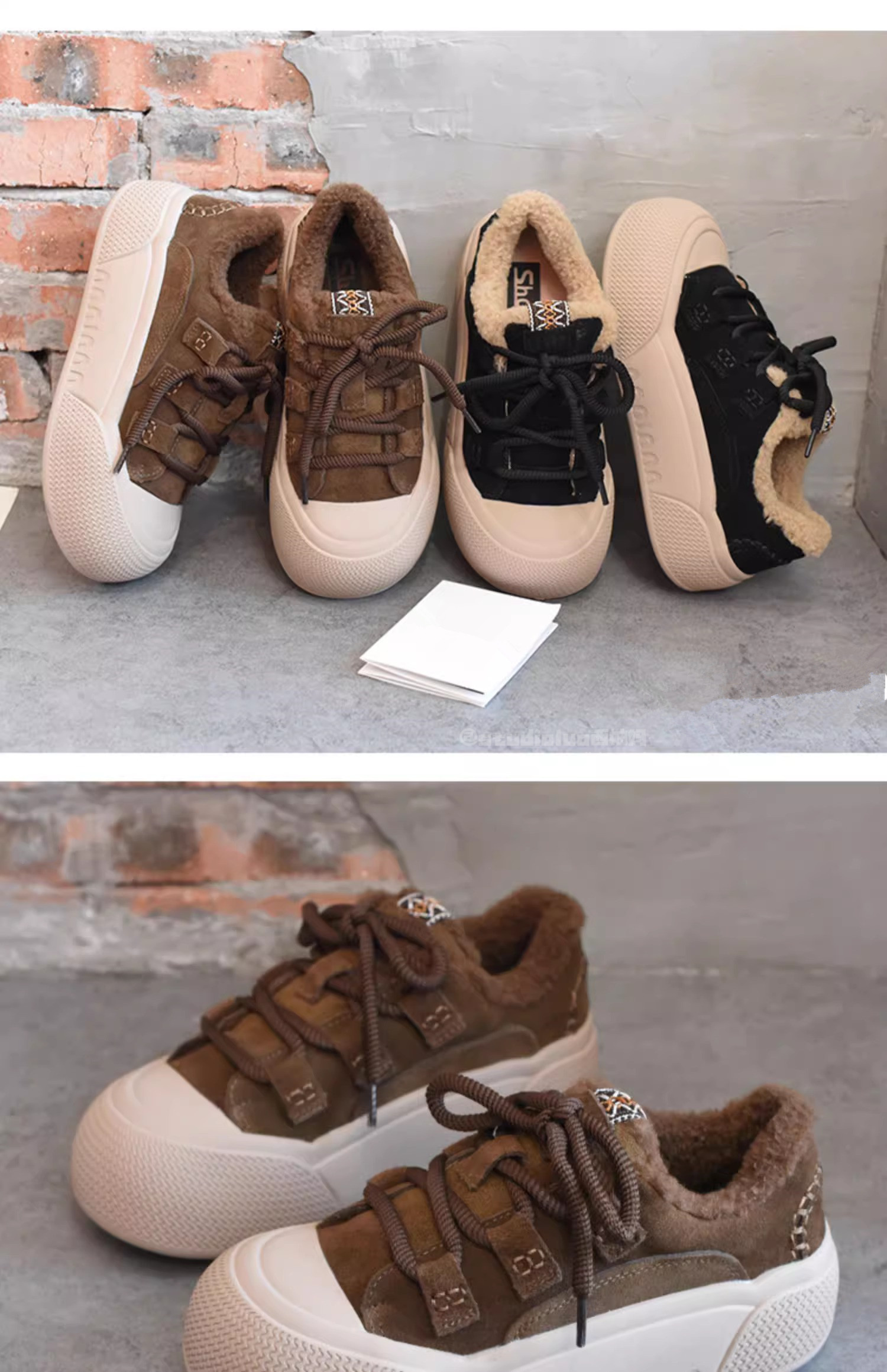 Hong Kong Style Cute Big-Head Loafers for Women, Fleece-Lined and Warm, 2025 Winter New Casual Soft-Soled Furry Sneakers