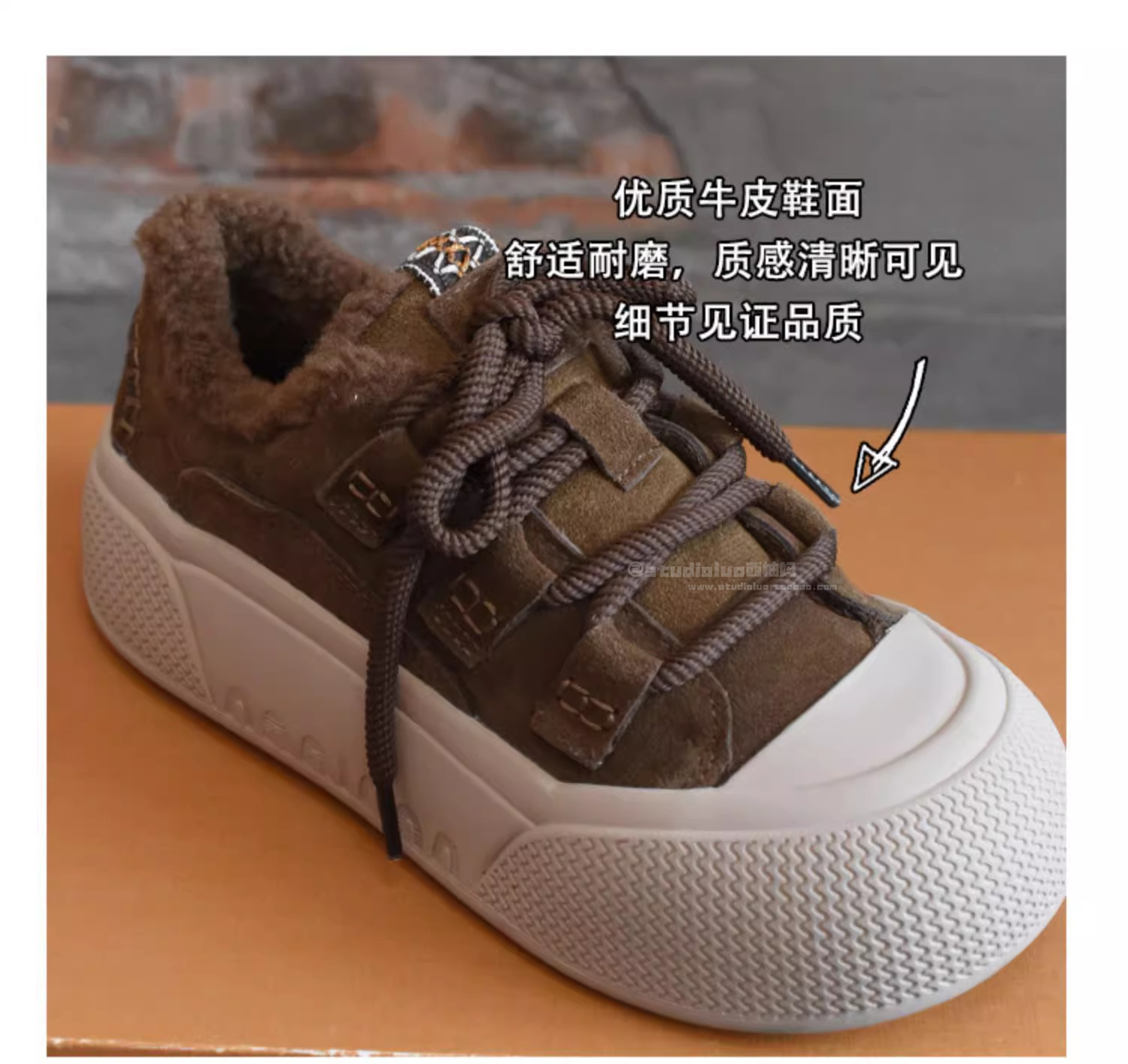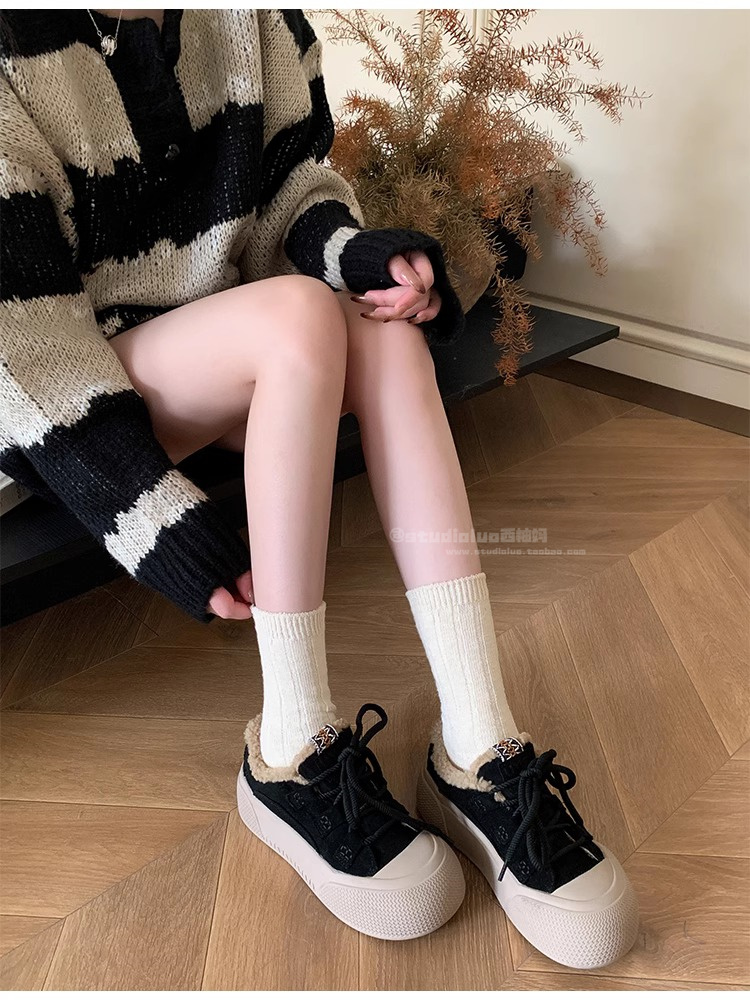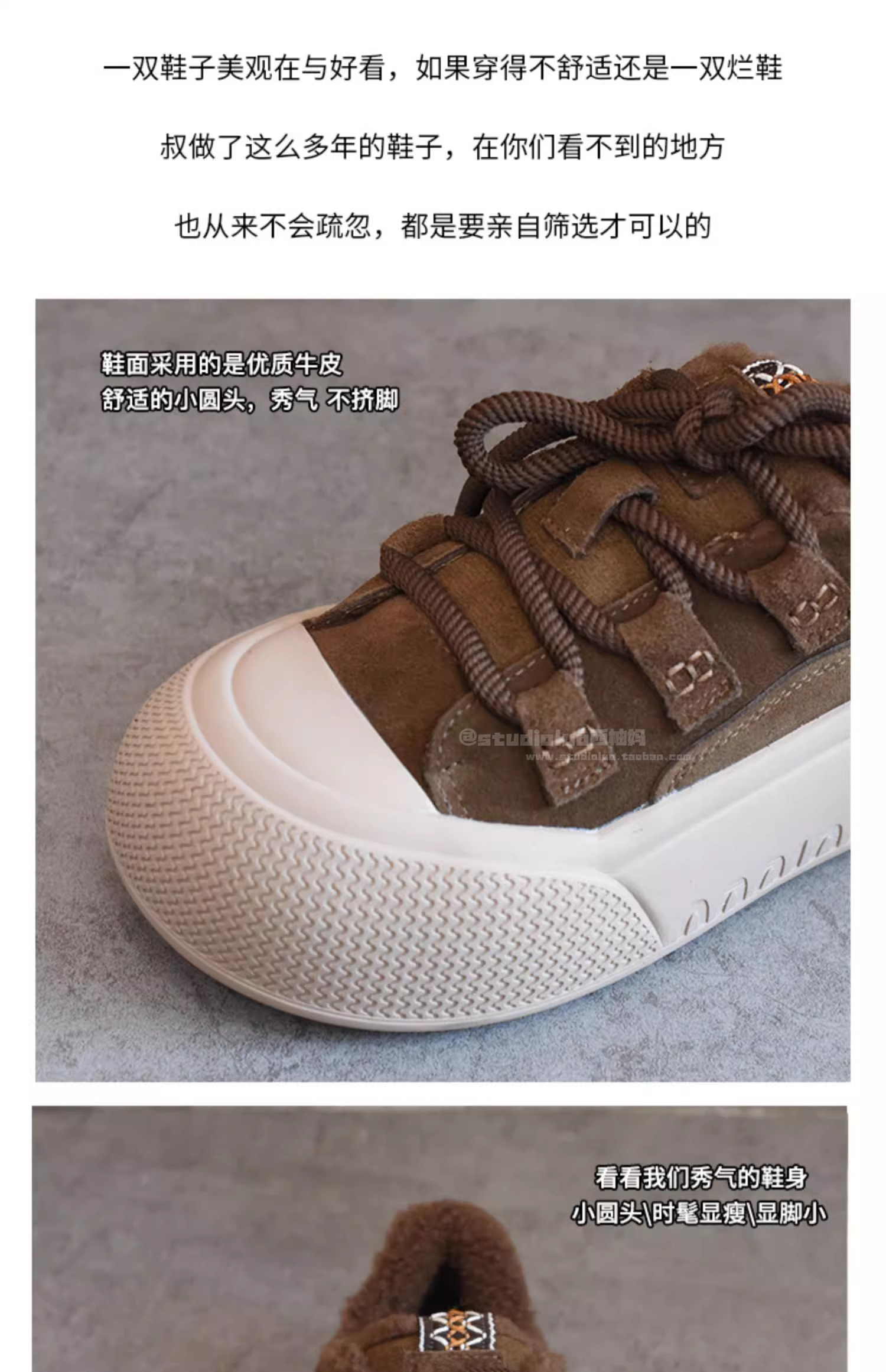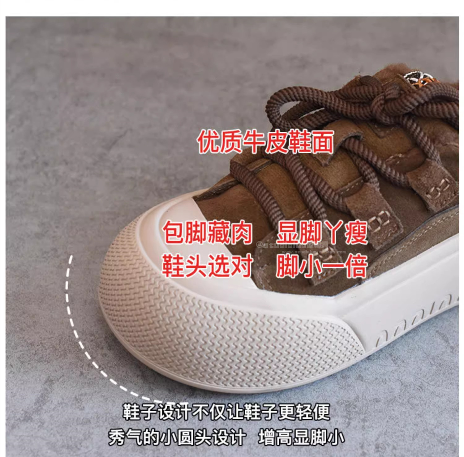Hong Kong Style Cute Big-Head Loafers for Women, Fleece-Lined and Warm, 2025 Winter New Casual Soft-Soled Furry Sneakers