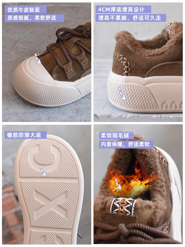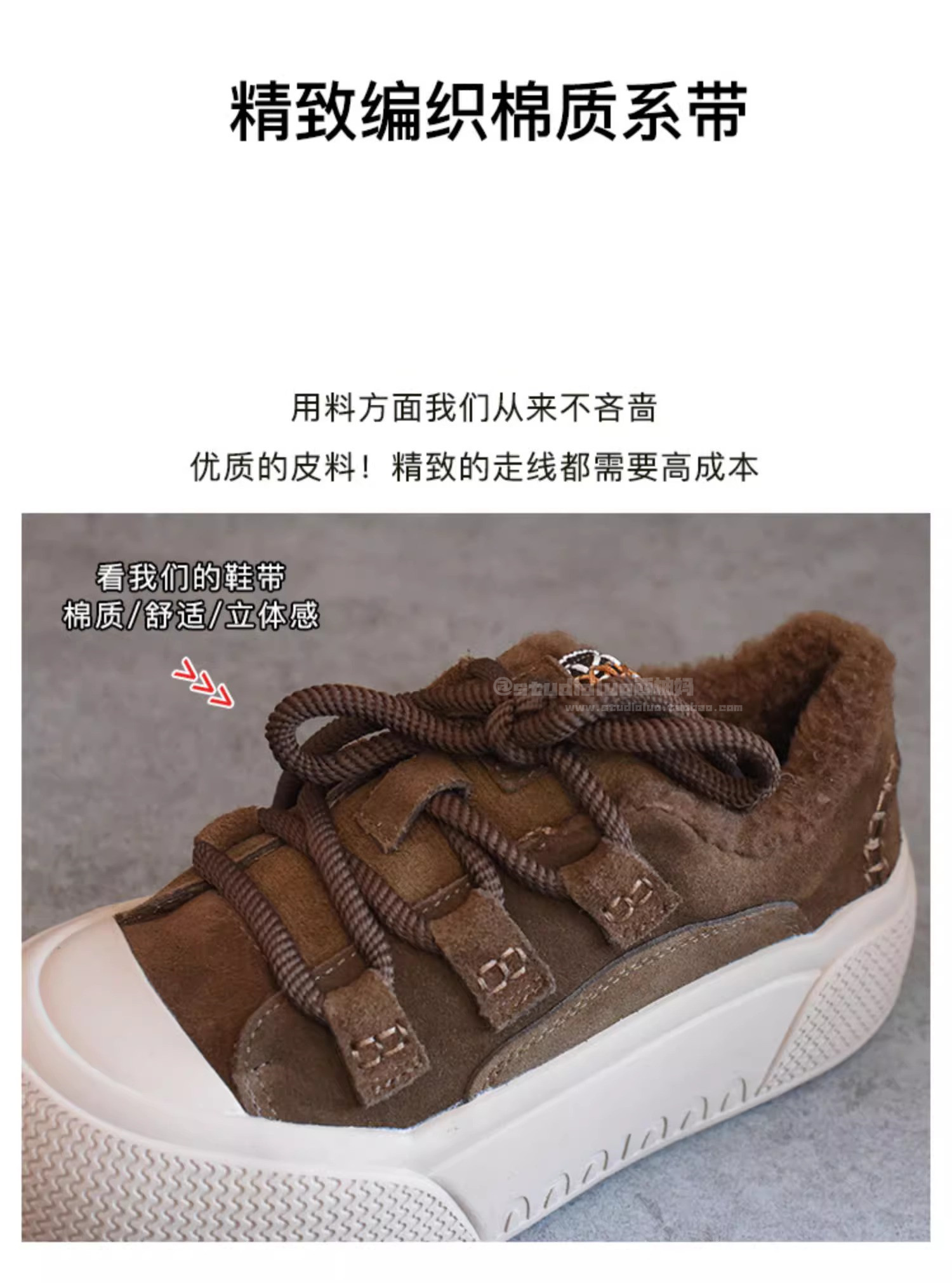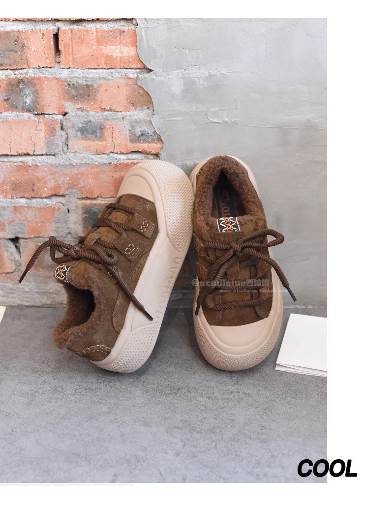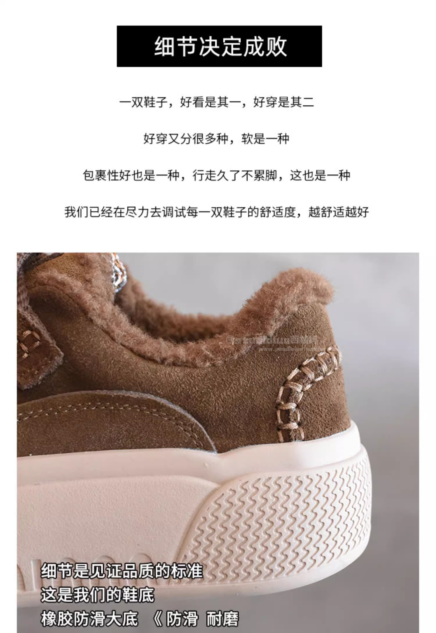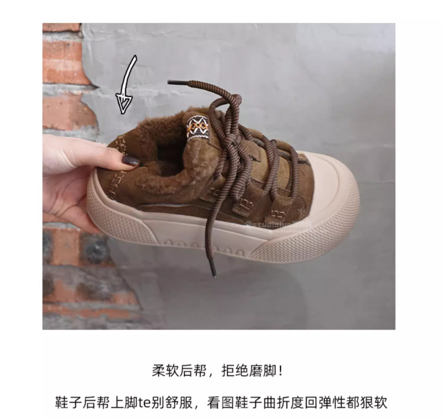 Hong Kong Style Cute Big-Head Loafers for Women, Fleece-Lined and Warm, 2025 Winter New Casual Soft-Soled Furry Sneakers