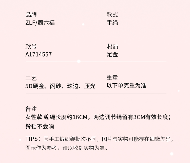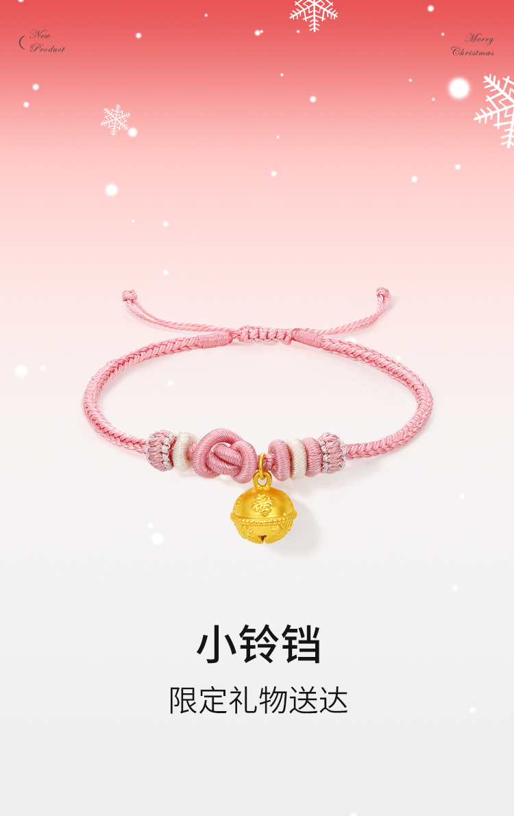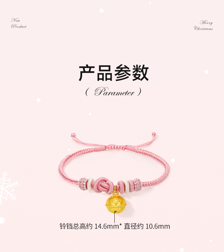 Zhou Liufu Gold Bell Hand Rope Women's 5d Hard Gold Pricing Snowflake Bracelet for Girlfriend Gift Official Flagship Store