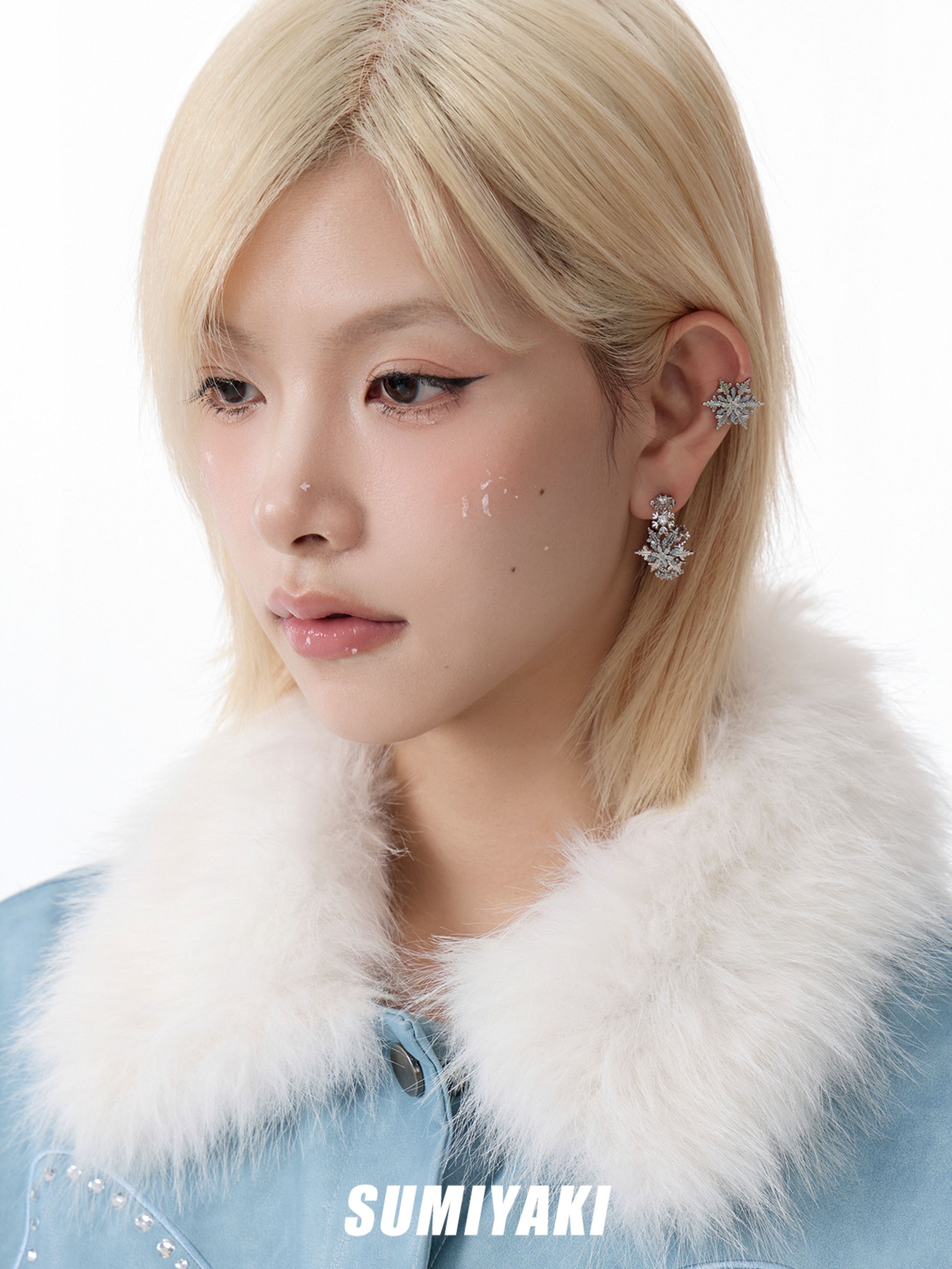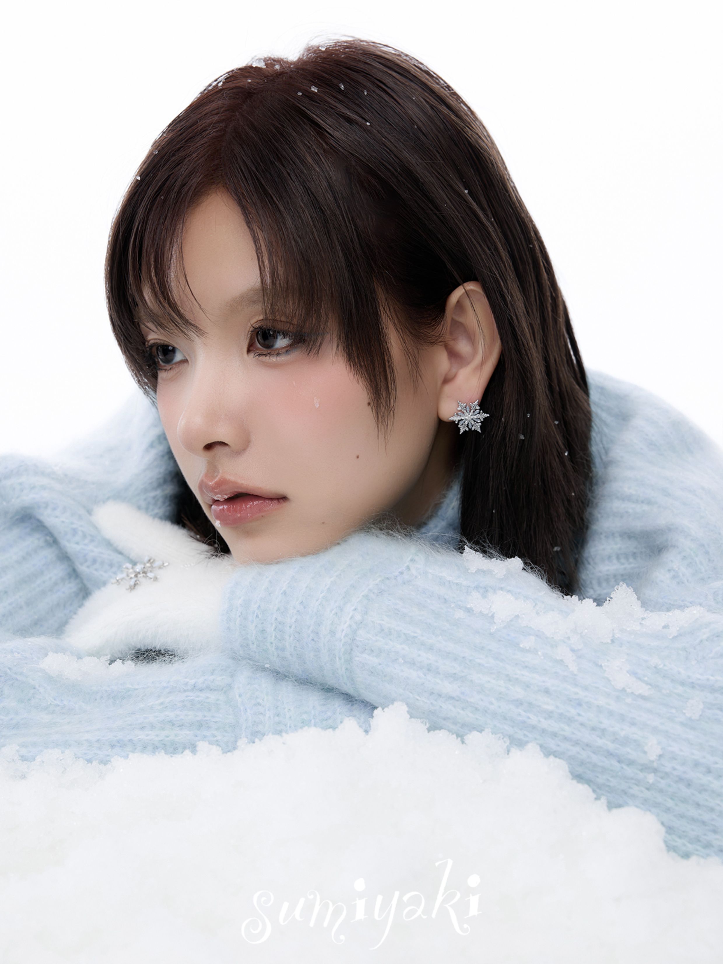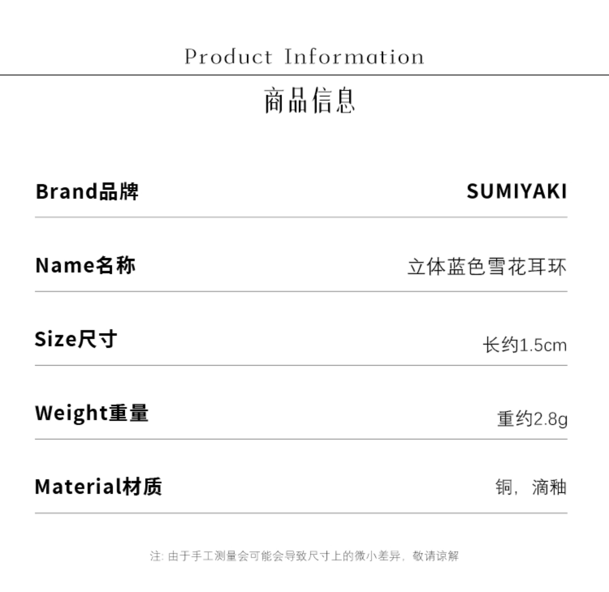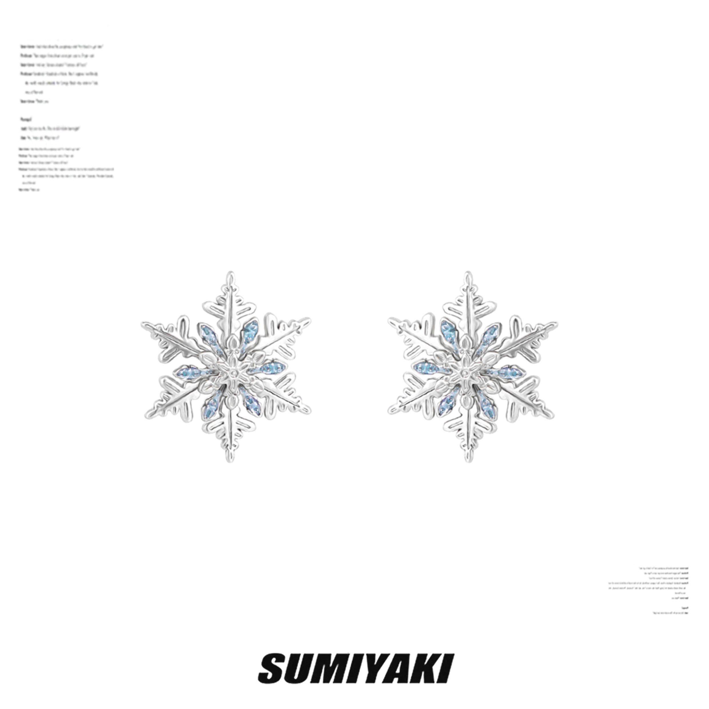 Sumiyaki Snowflake Small Earrings Cool down the Spring and Summer, Blue High-End New Year Snowflake Earrings and Ear Clips for Women