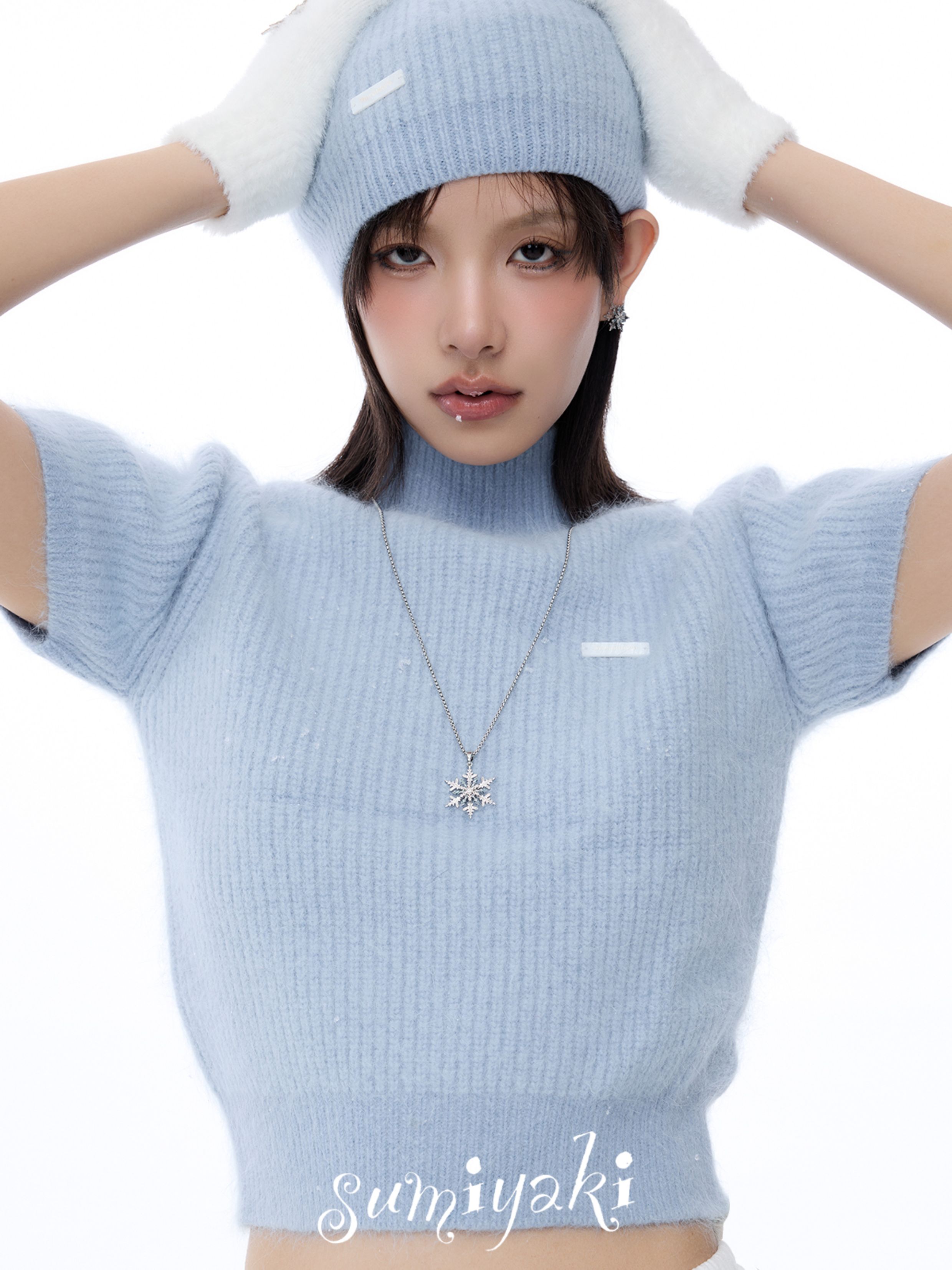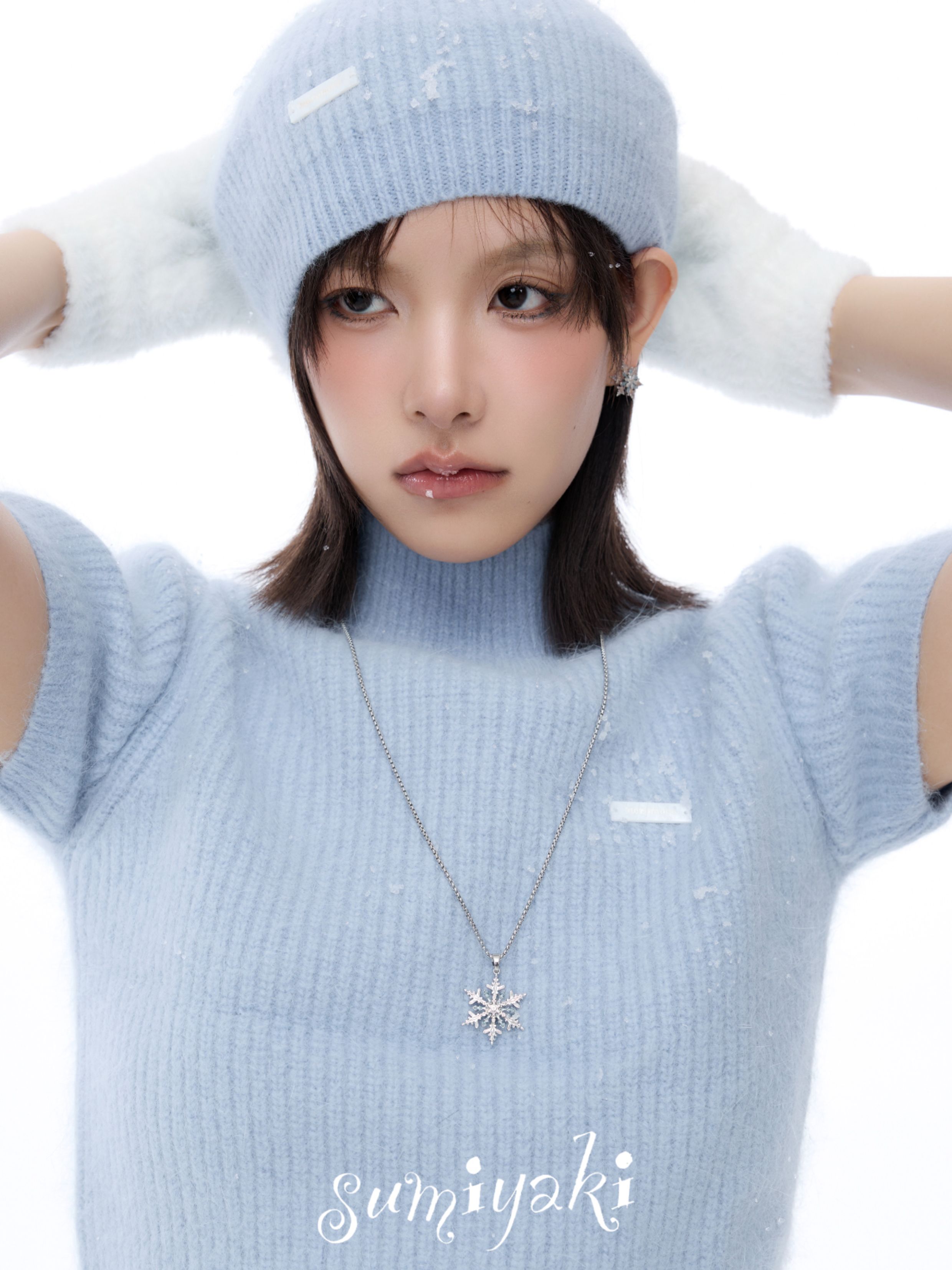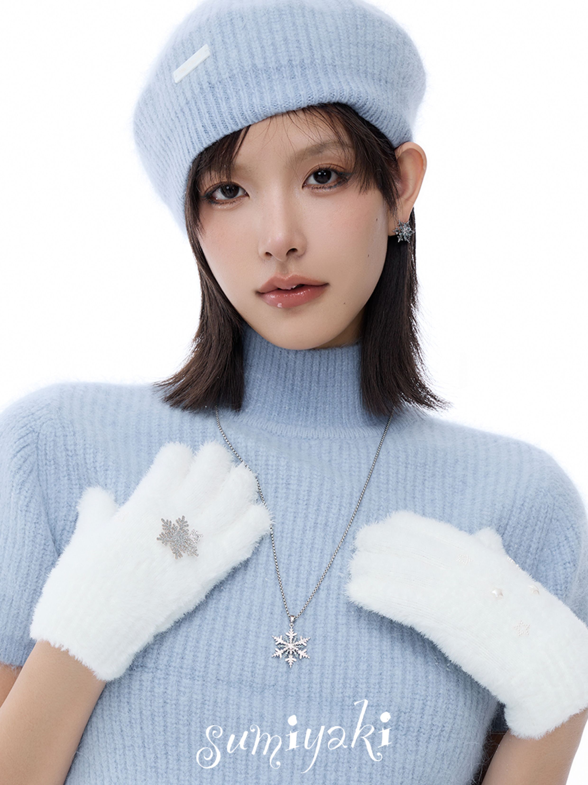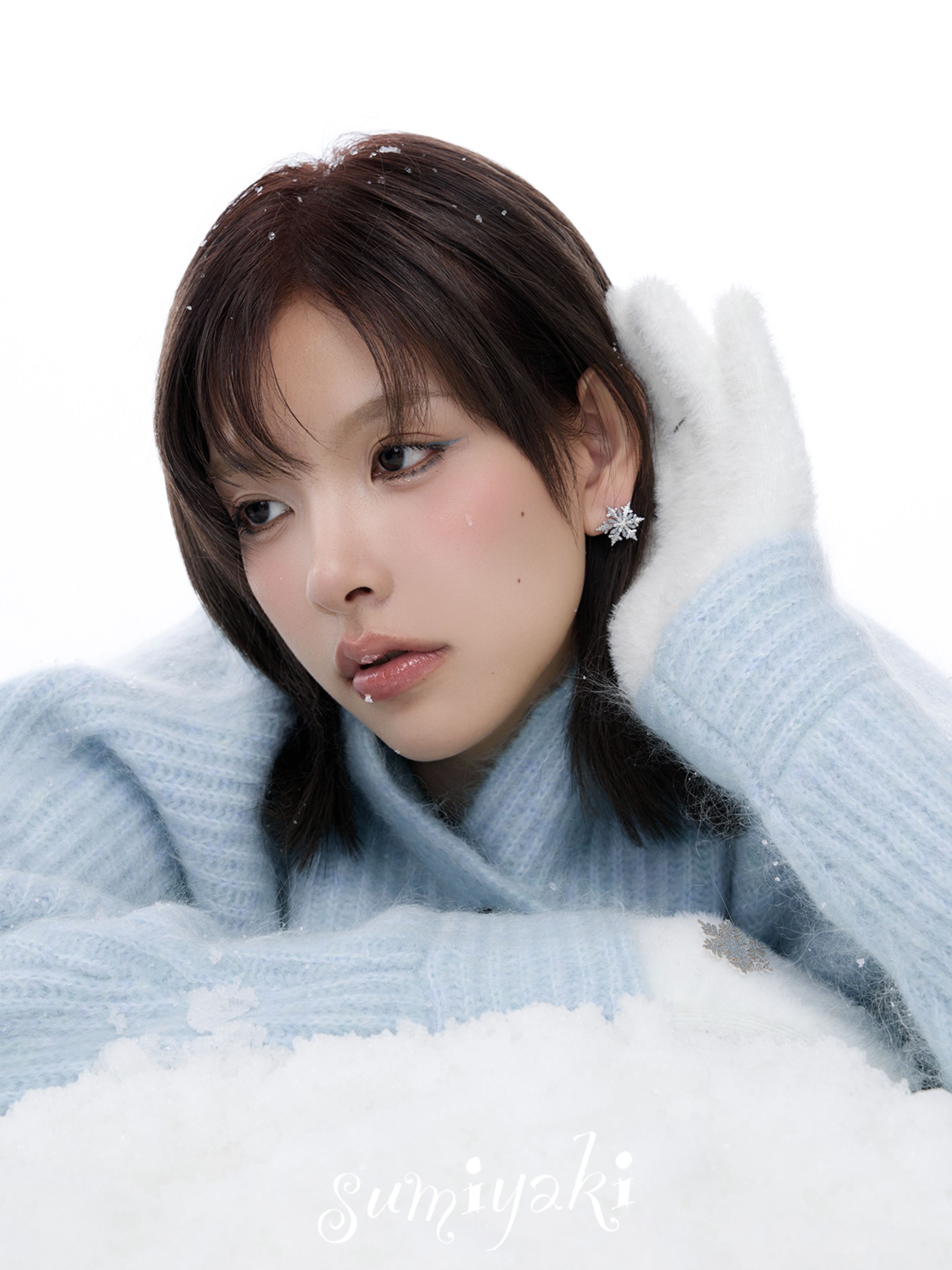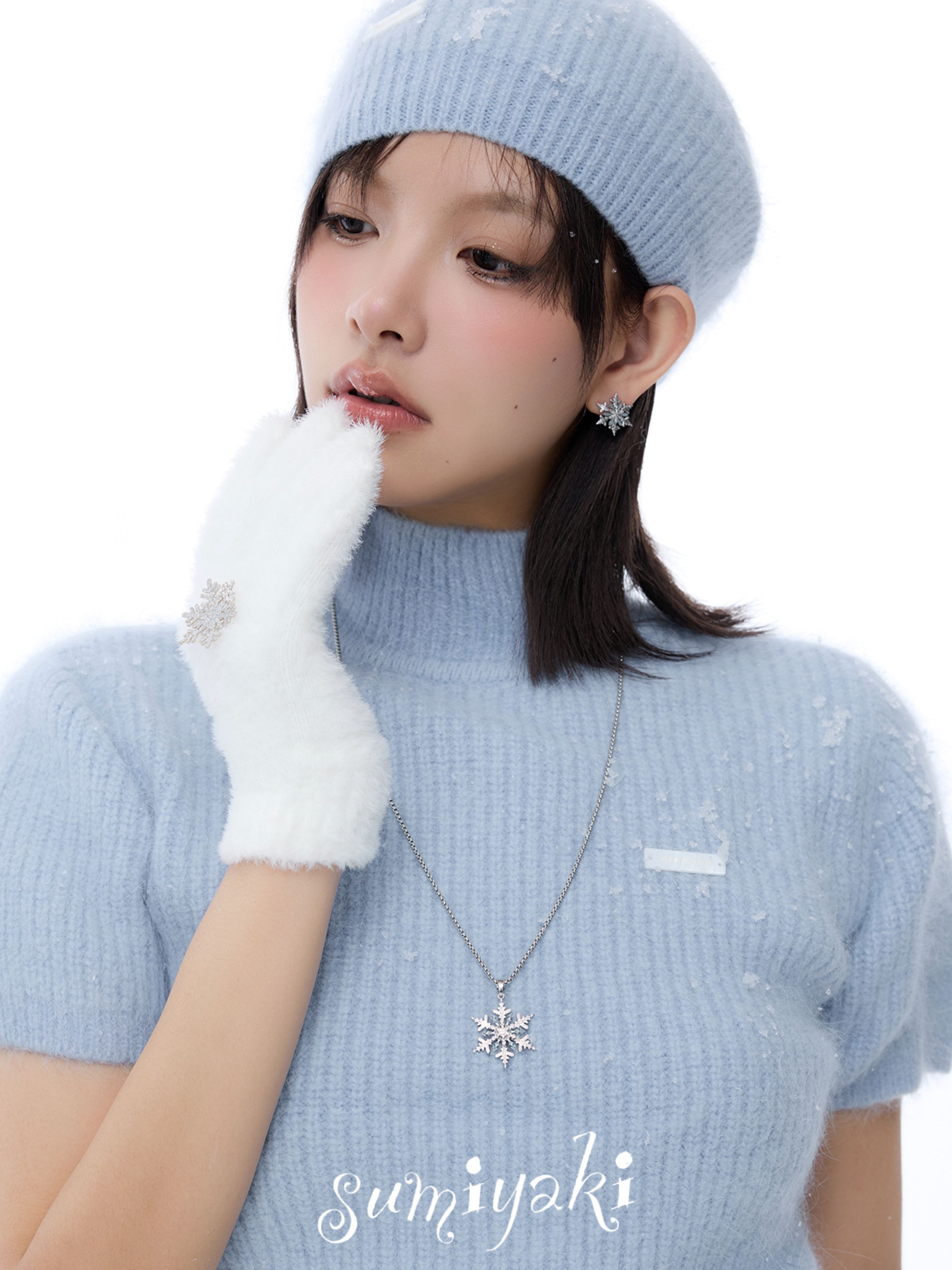 Sumiyaki Snowflake Small Earrings Cool down the Spring and Summer, Blue High-End New Year Snowflake Earrings and Ear Clips for Women